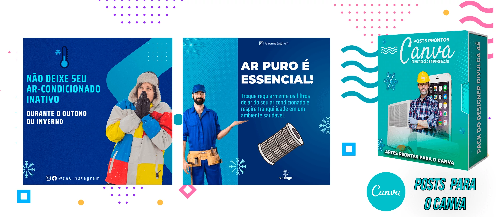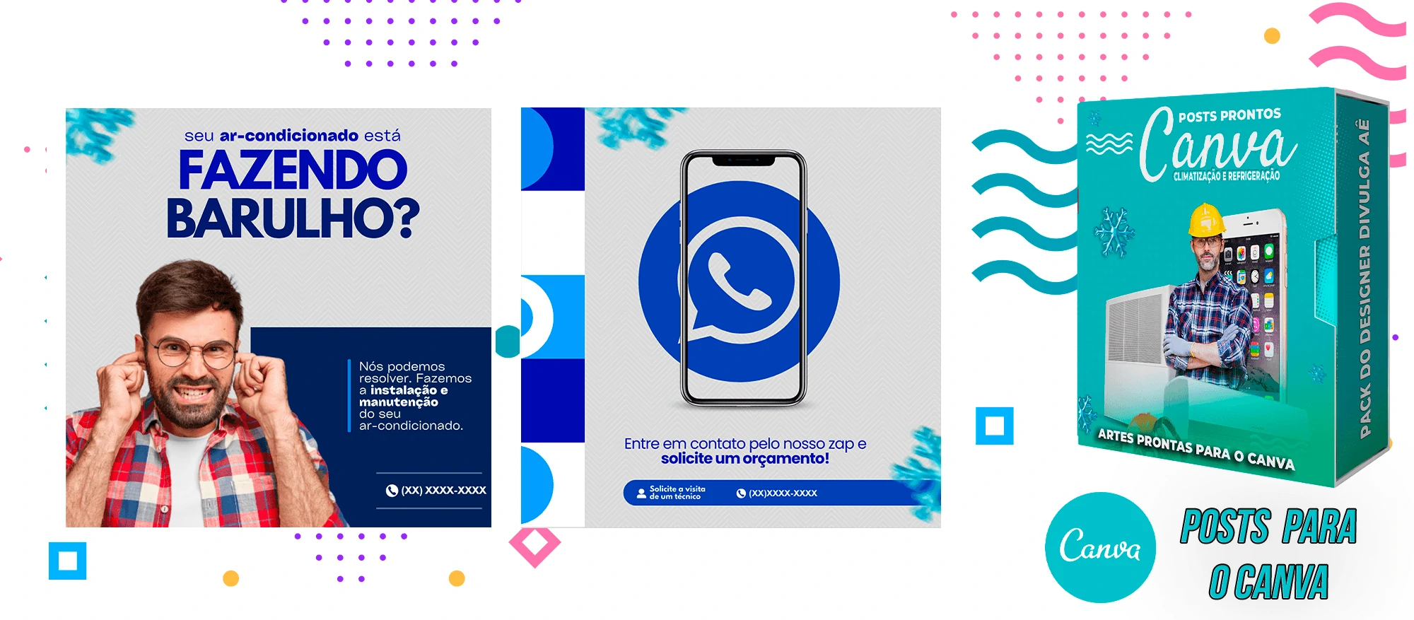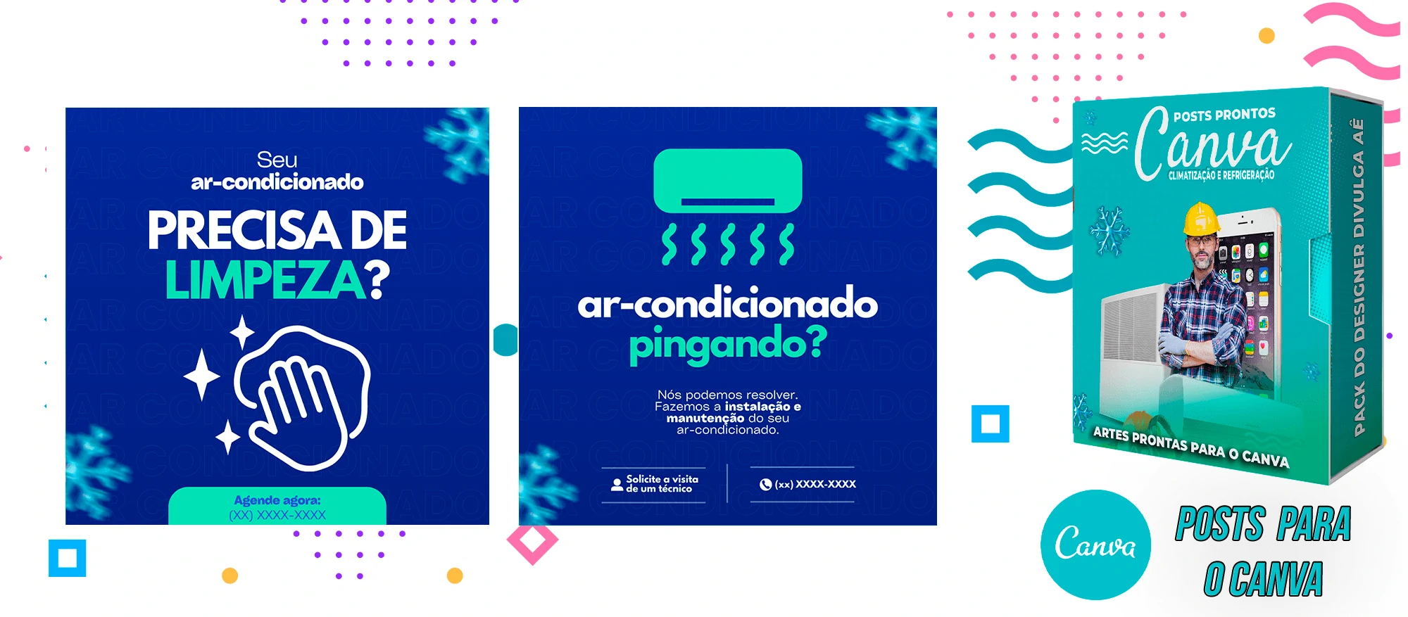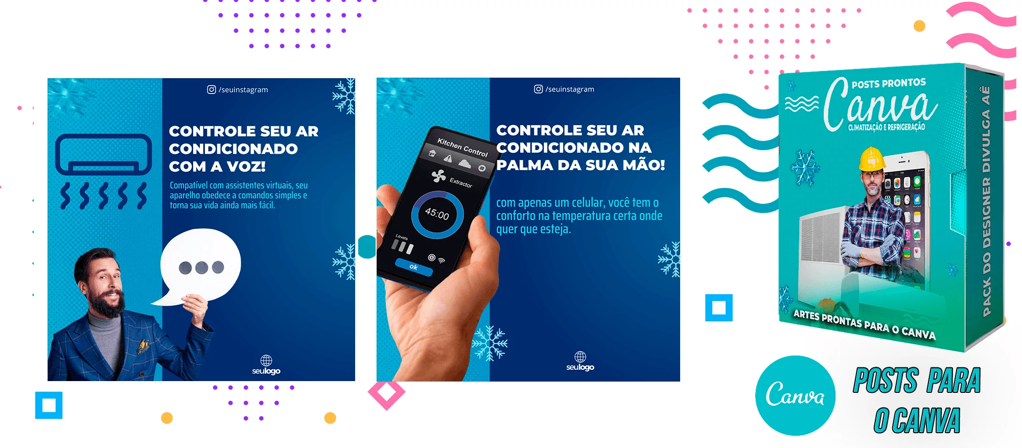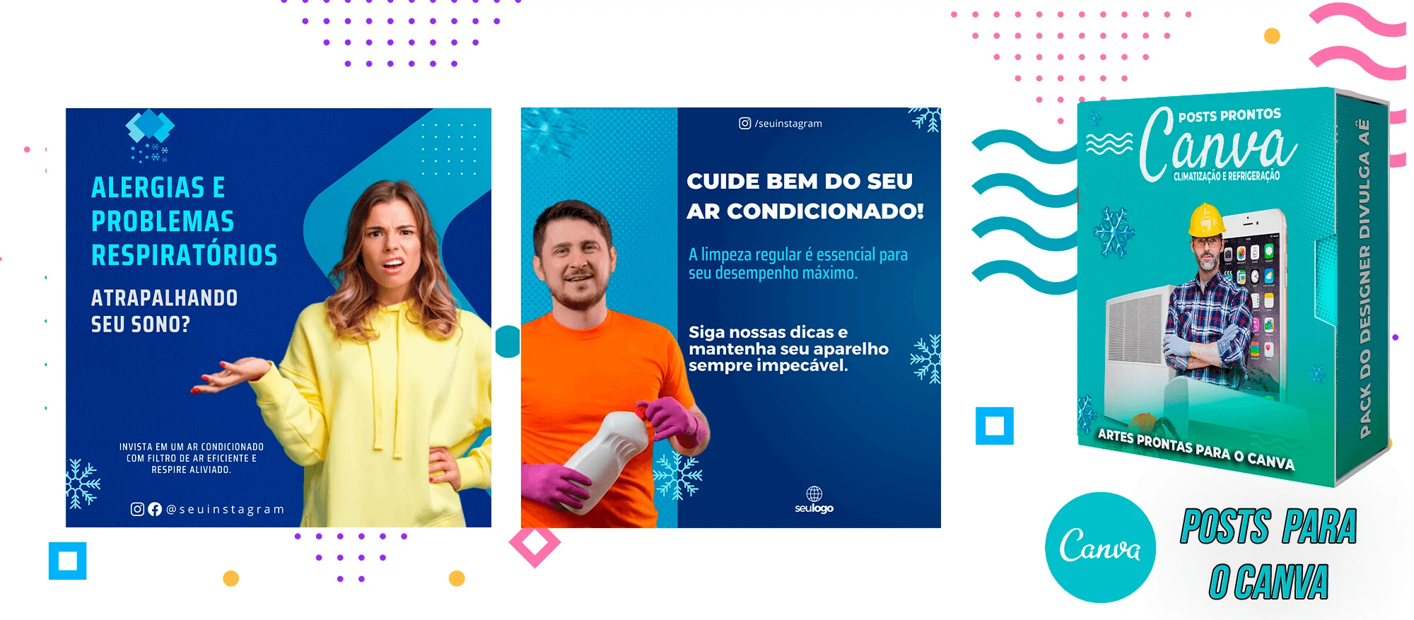 Pack de Posts Prontos para o Canva – Climatização e Refrigeração com Legendas