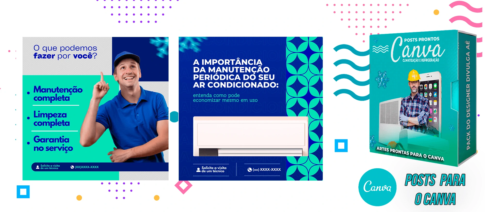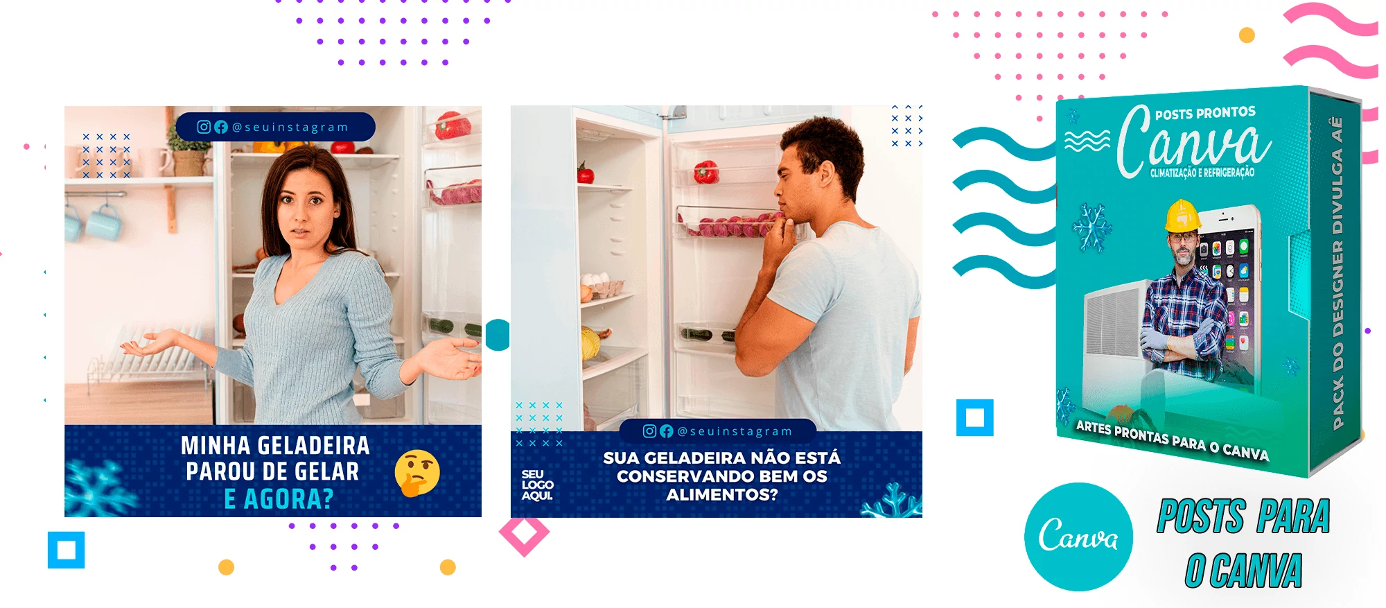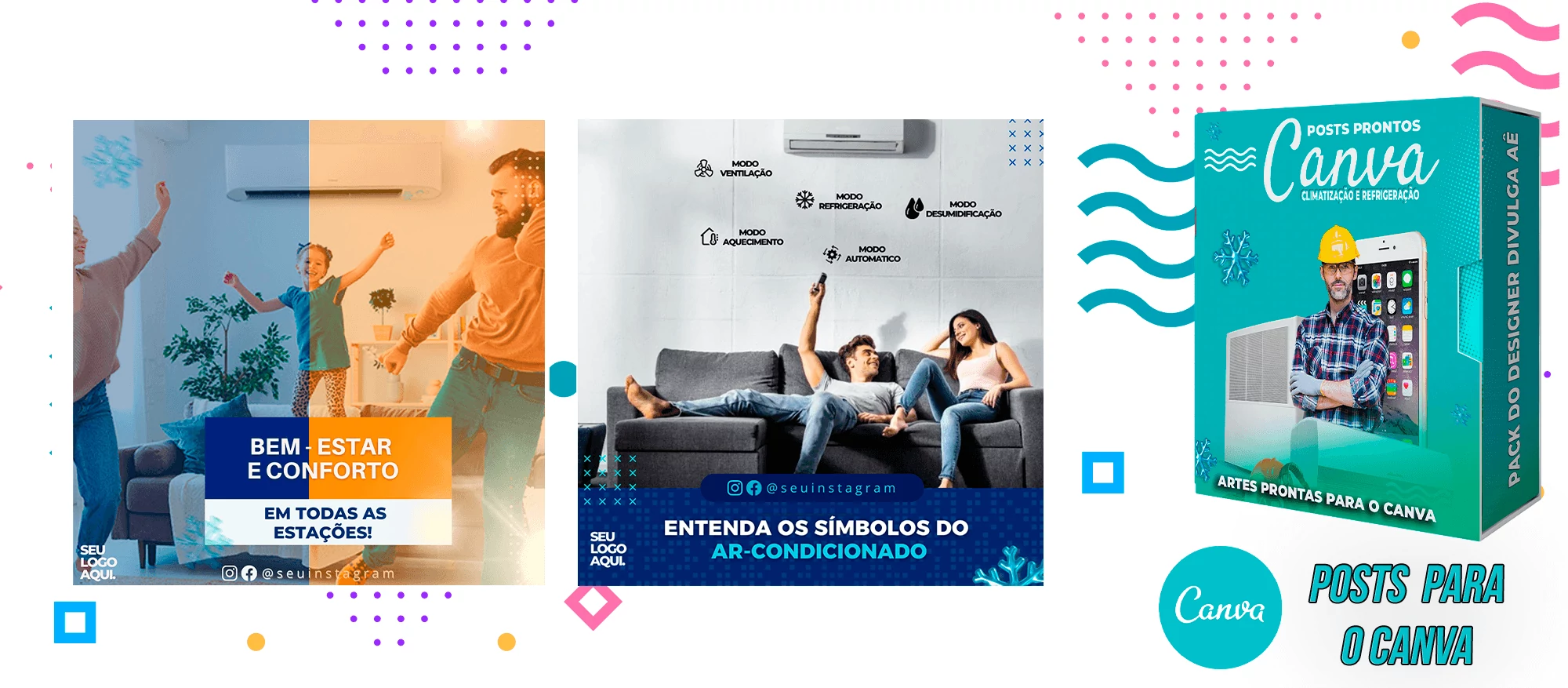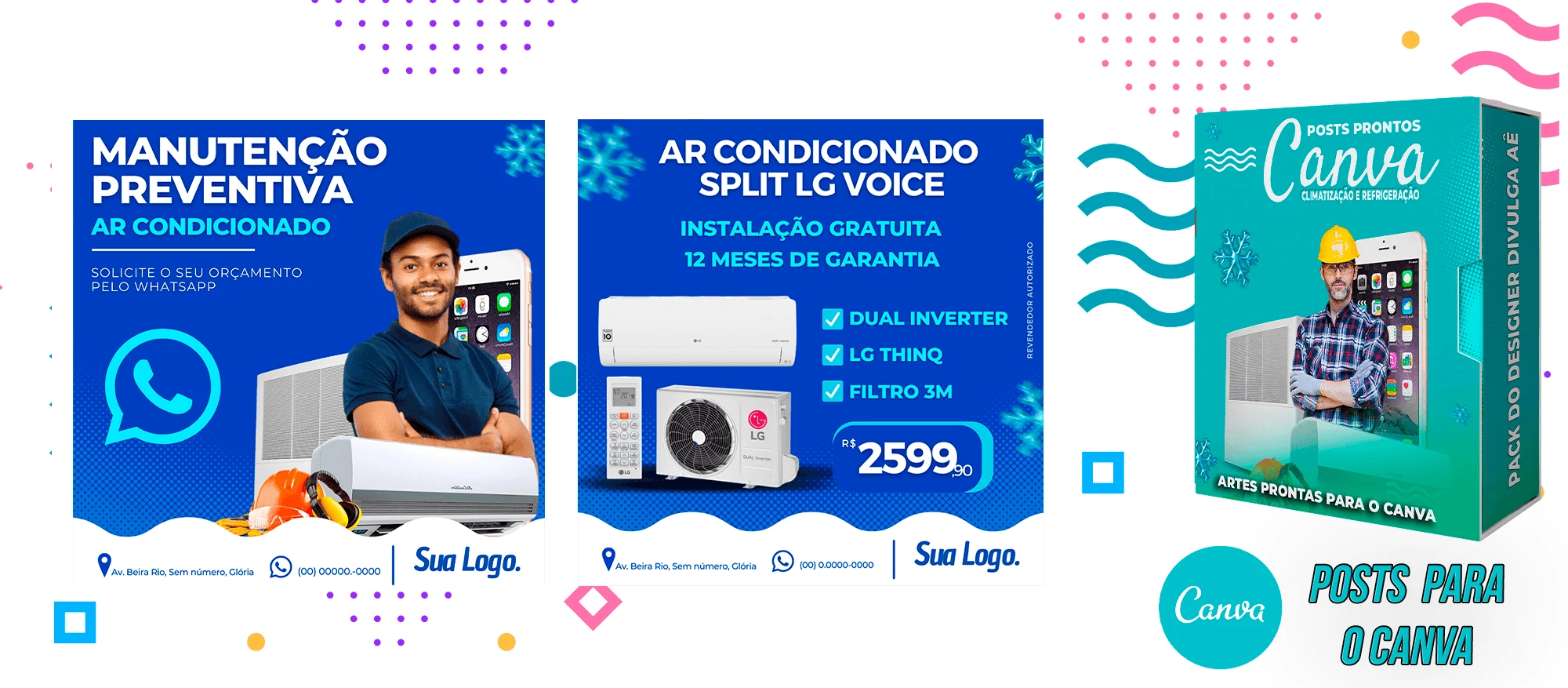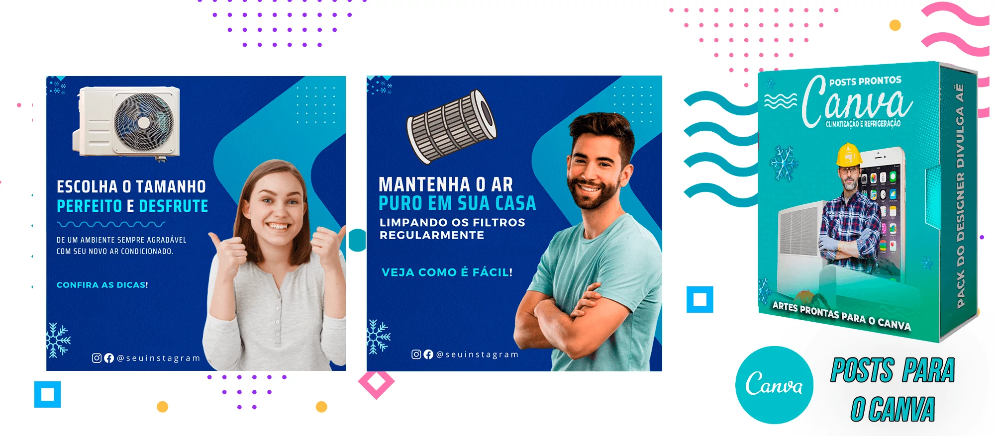 Pack de Posts Prontos para o Canva – Climatização e Refrigeração com Legendas