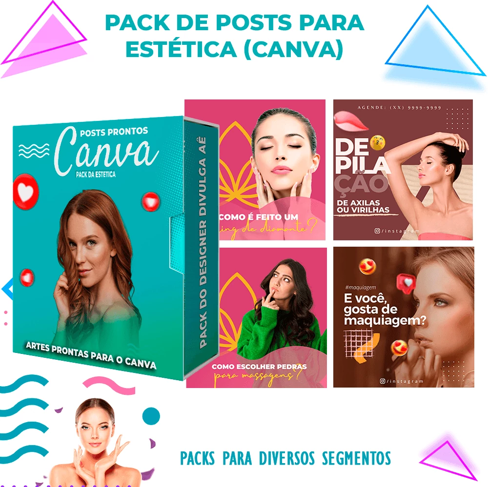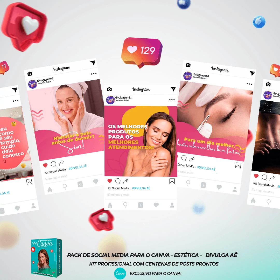 Pack elaborado sob demanda para  Clínica Estética  com mais de 300 Editáveis  incríveis.  Bastando apenas possuir uma conta Gratuita no Canva  para editar o Template, tudo em poucos segundos!