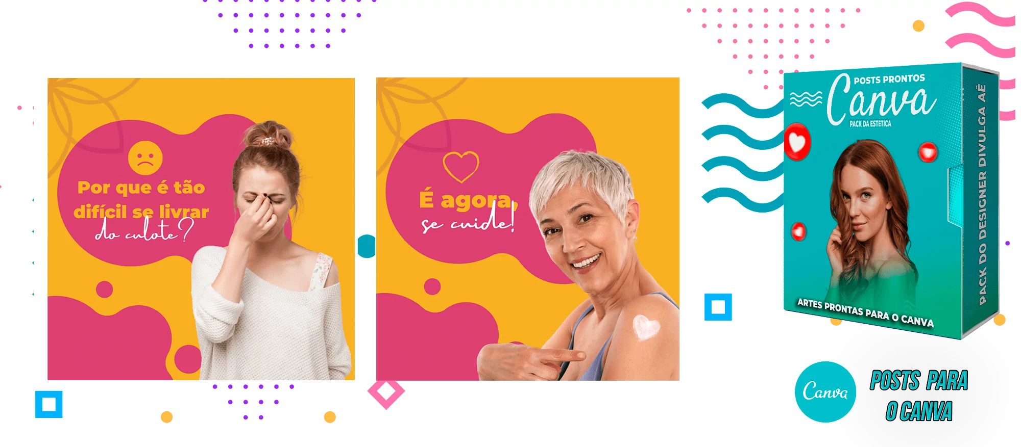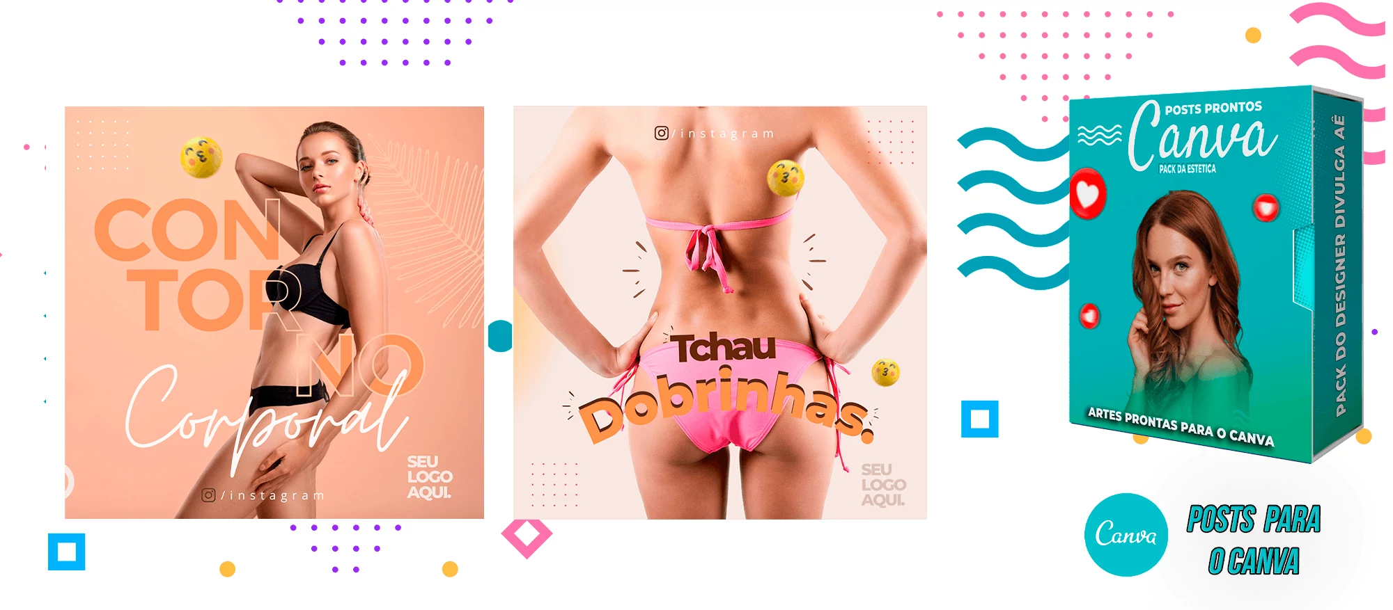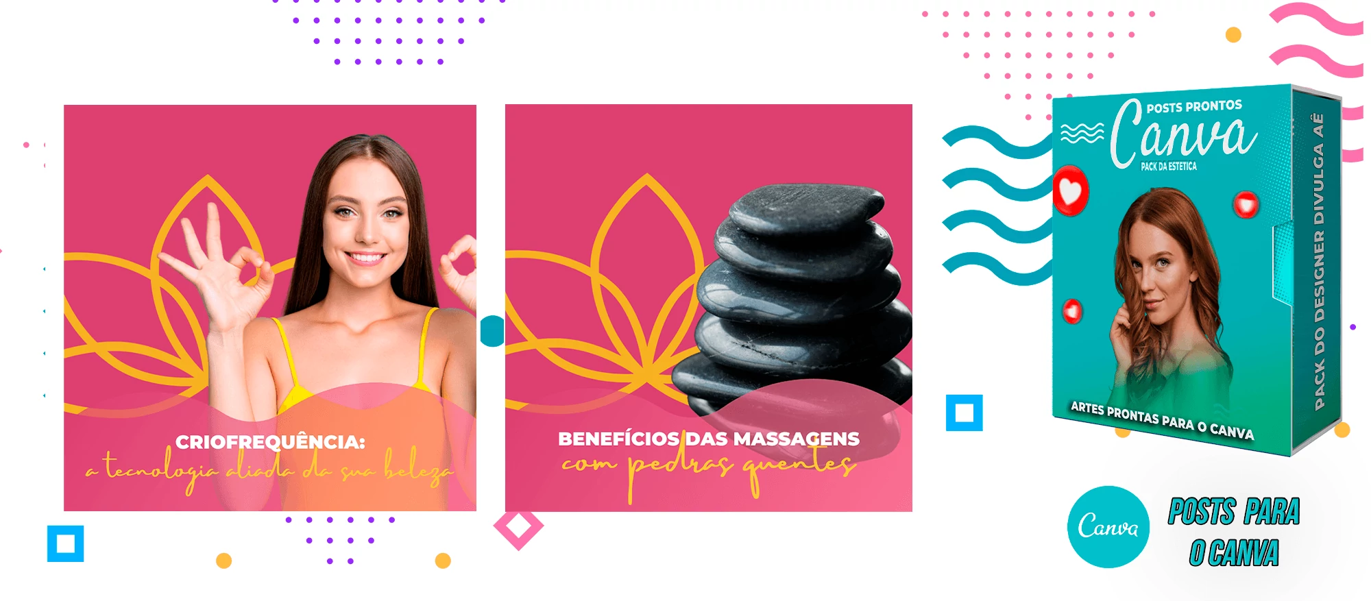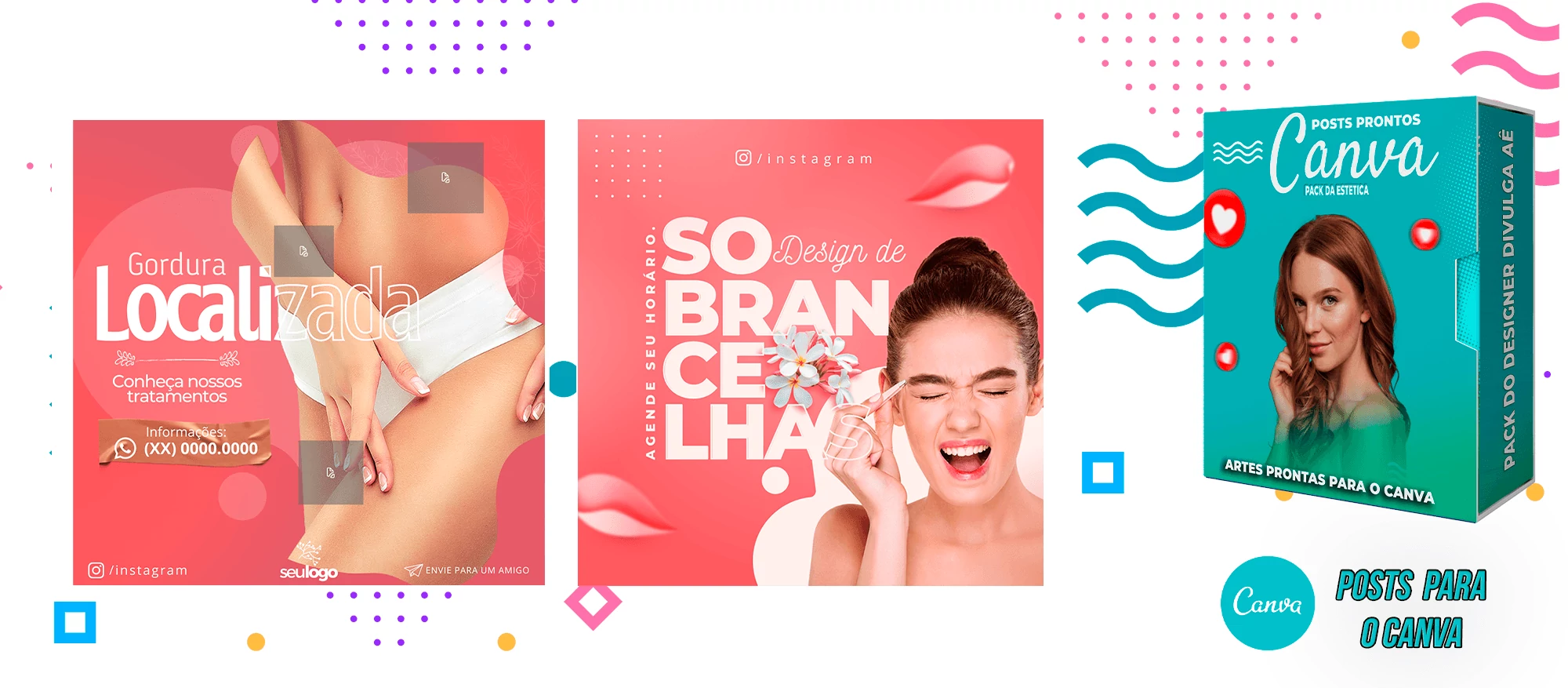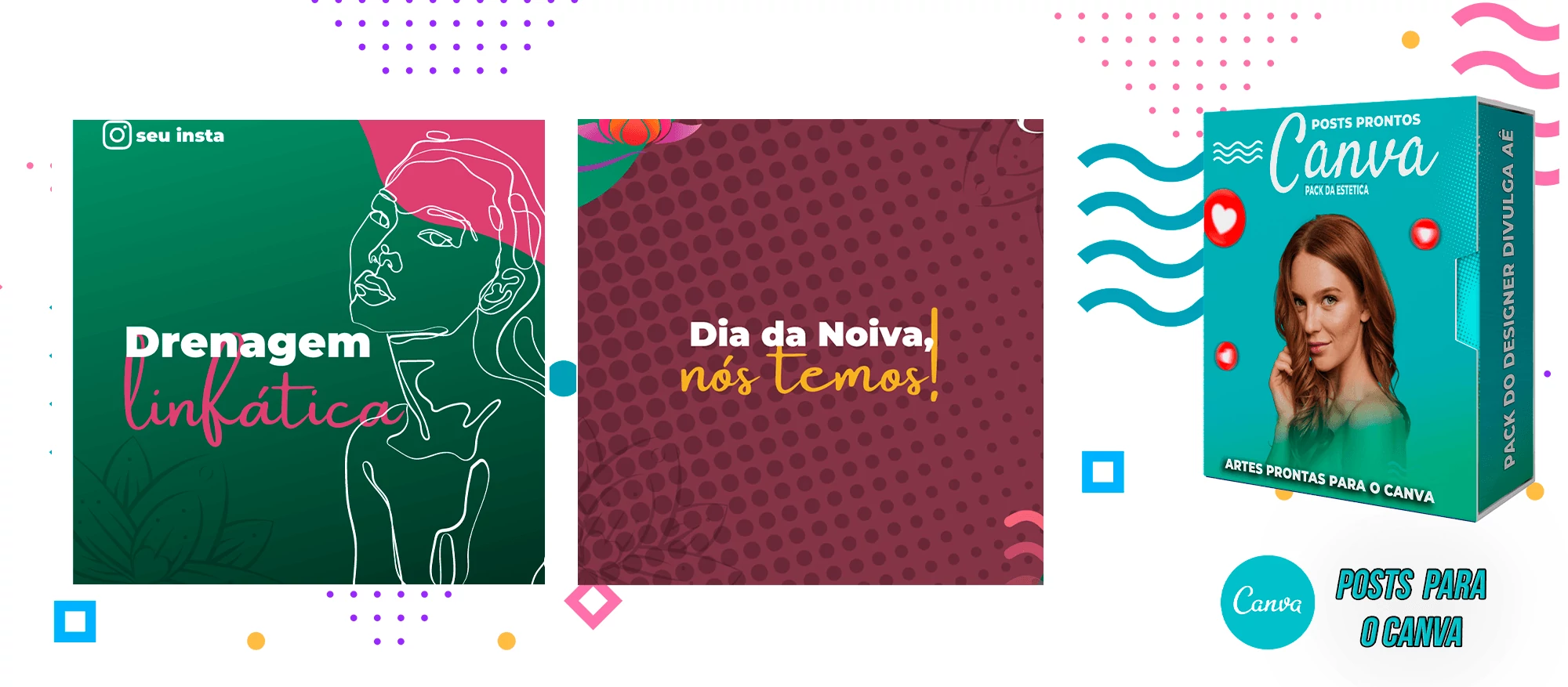O pacote inclui Artes para o Canva, com Layouts criativos e desses Templates você pode criar outros milhares de modelos a sua escolha.