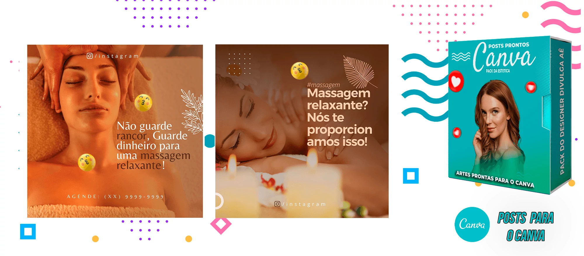 Pack de Posts Prontos com Legendas Prontas -  Massoterapia - Photoshop