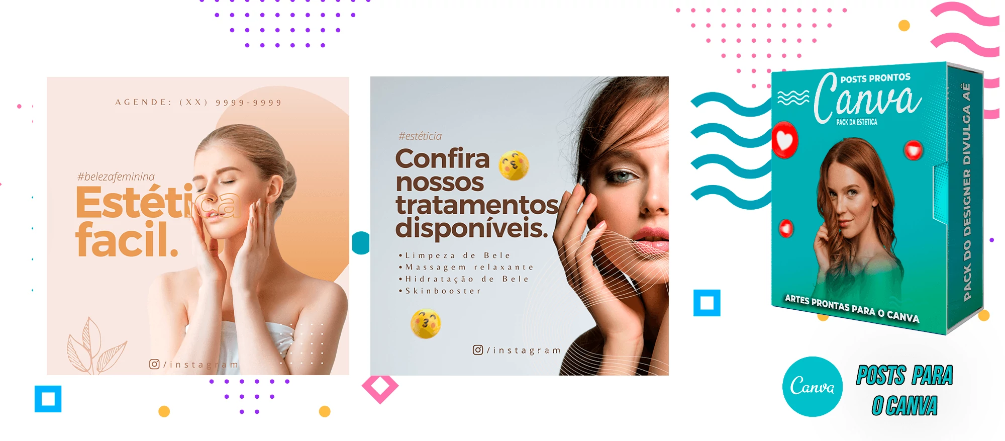 Pack de Posts Prontos para o Canva – Clínica Estética + Legendas Prontas