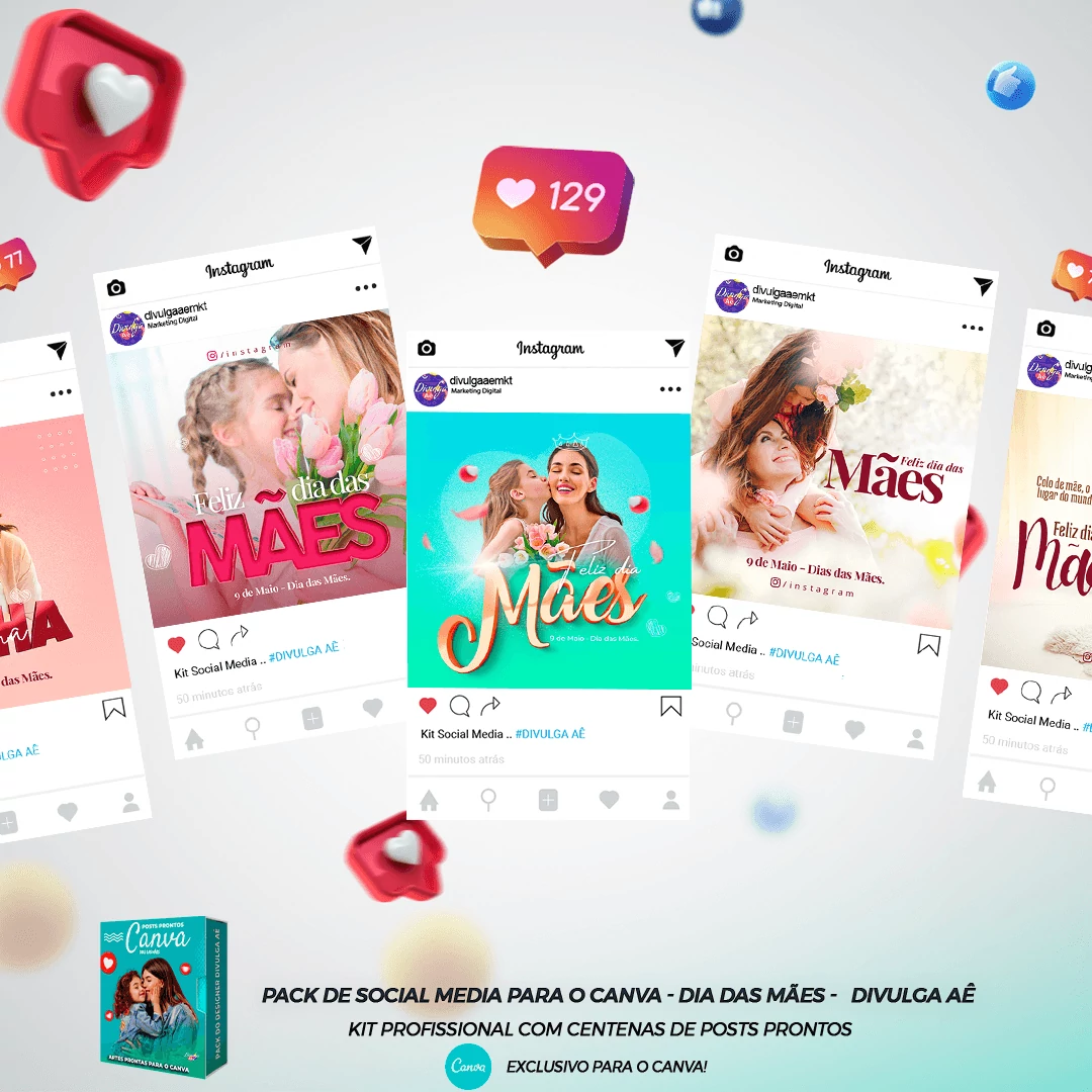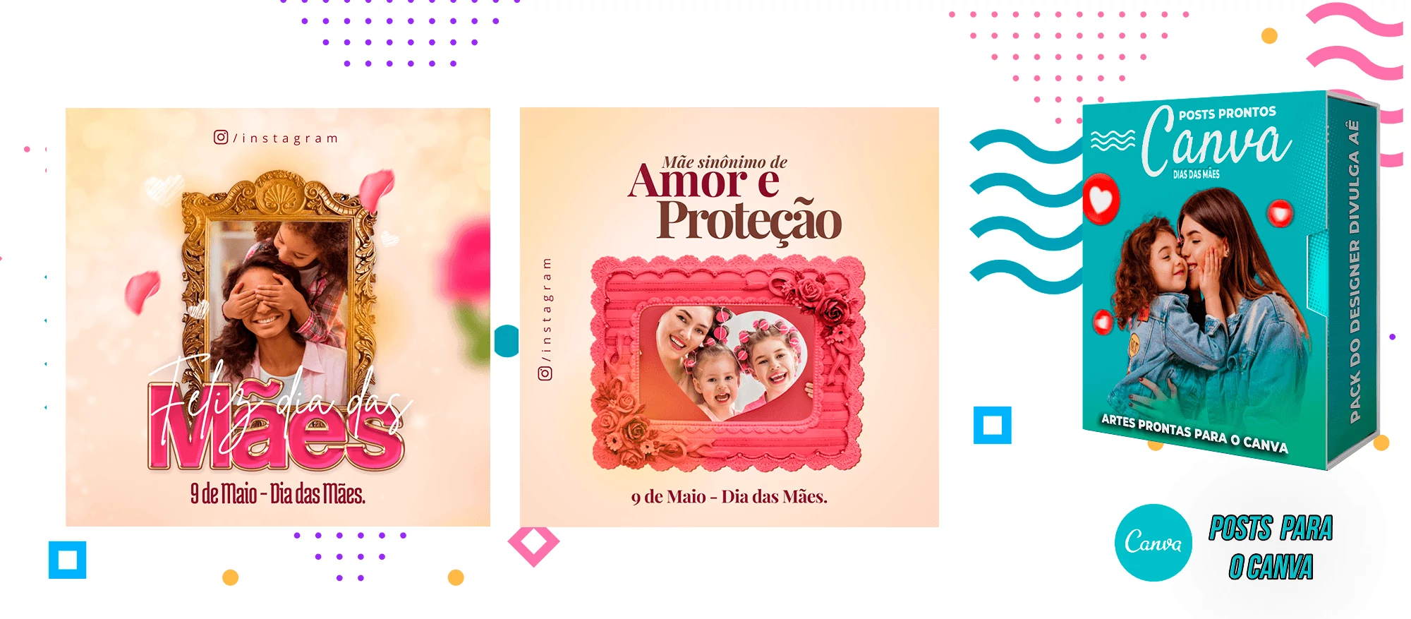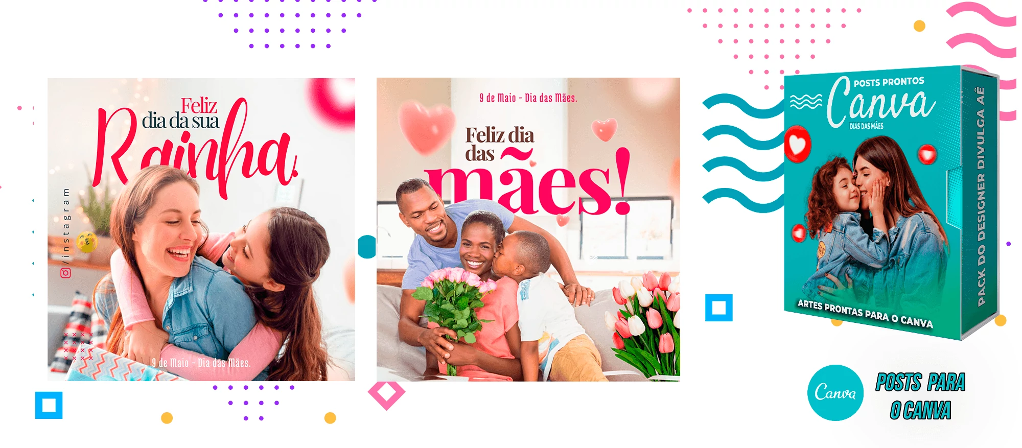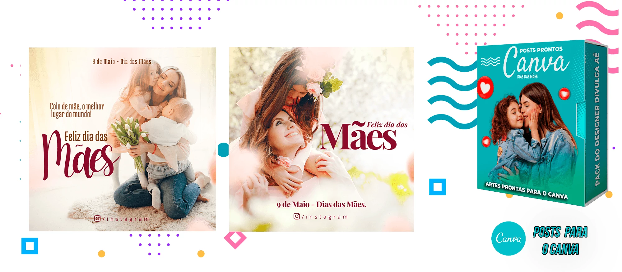 Pack de Posts Prontos para o Canva – Dia das Mães