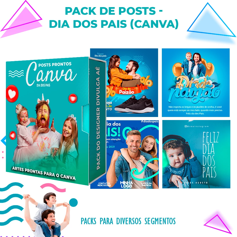Pack elaborado sob demanda com diversas artes para elaborar posts para o dia dos pais pode ser utilizado por qualquer segmento, para criar posts profissional sobre o dia dos pais e gerar mais engajamento na sua página de forma rápida e prática, bastando apenas possuir acesso ao canva editar o template, tudo em poucos segundos!