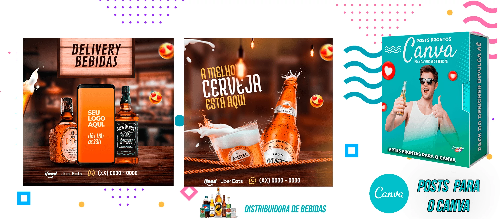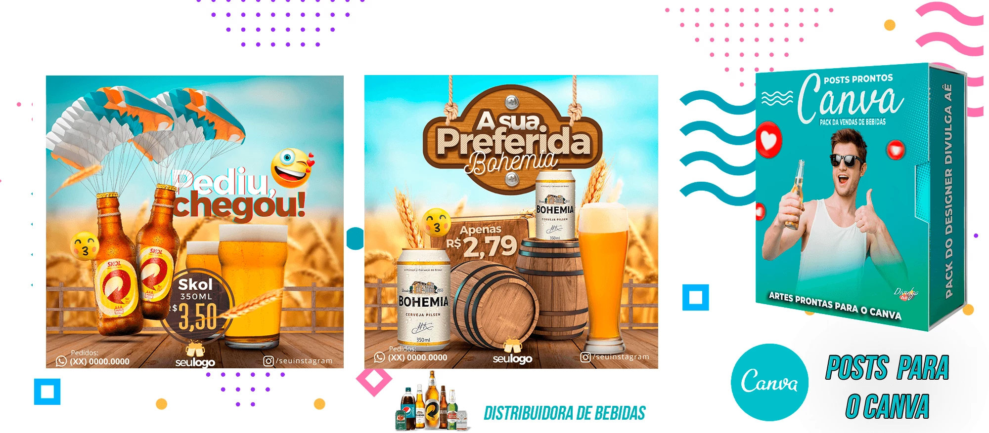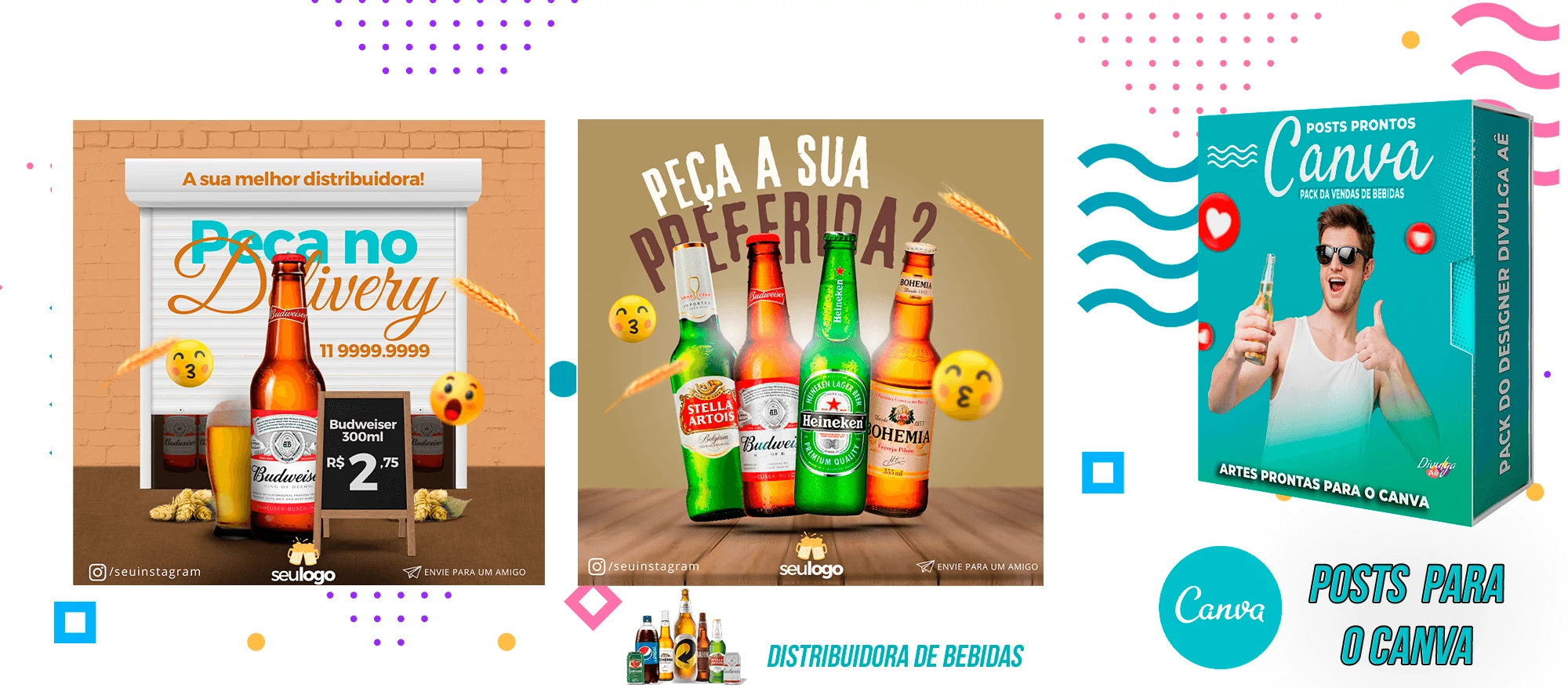 Pack de Posts Prontos para o Canva – Distribuidora de Bebidas