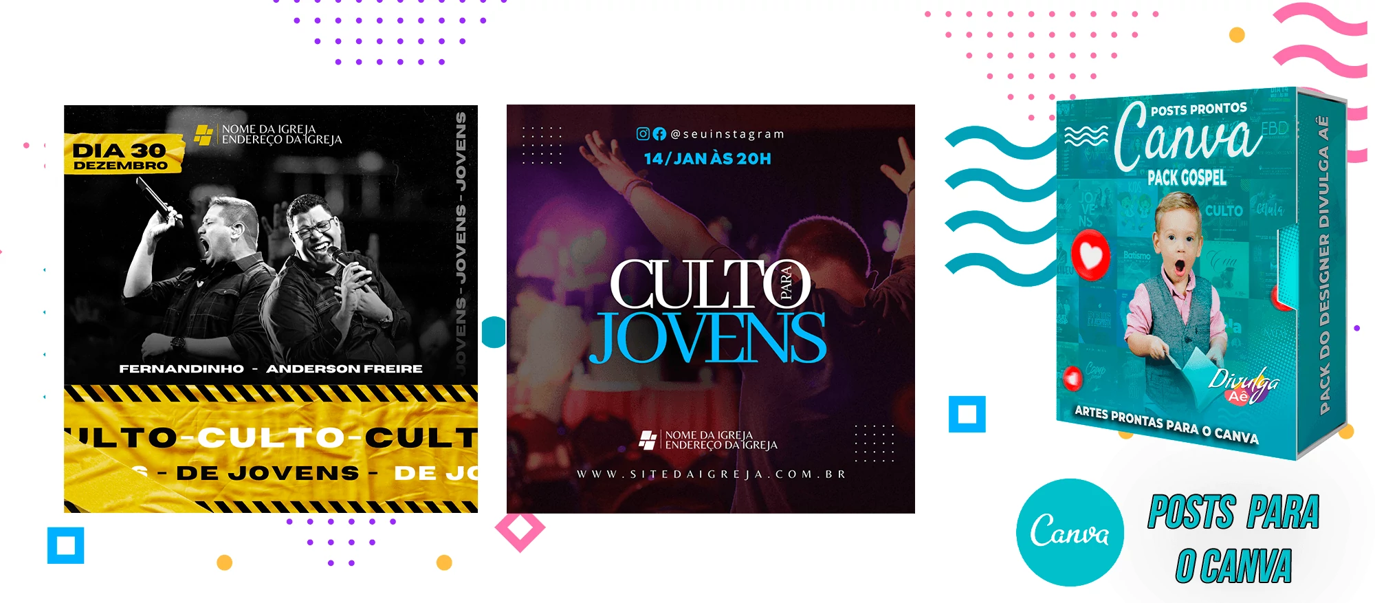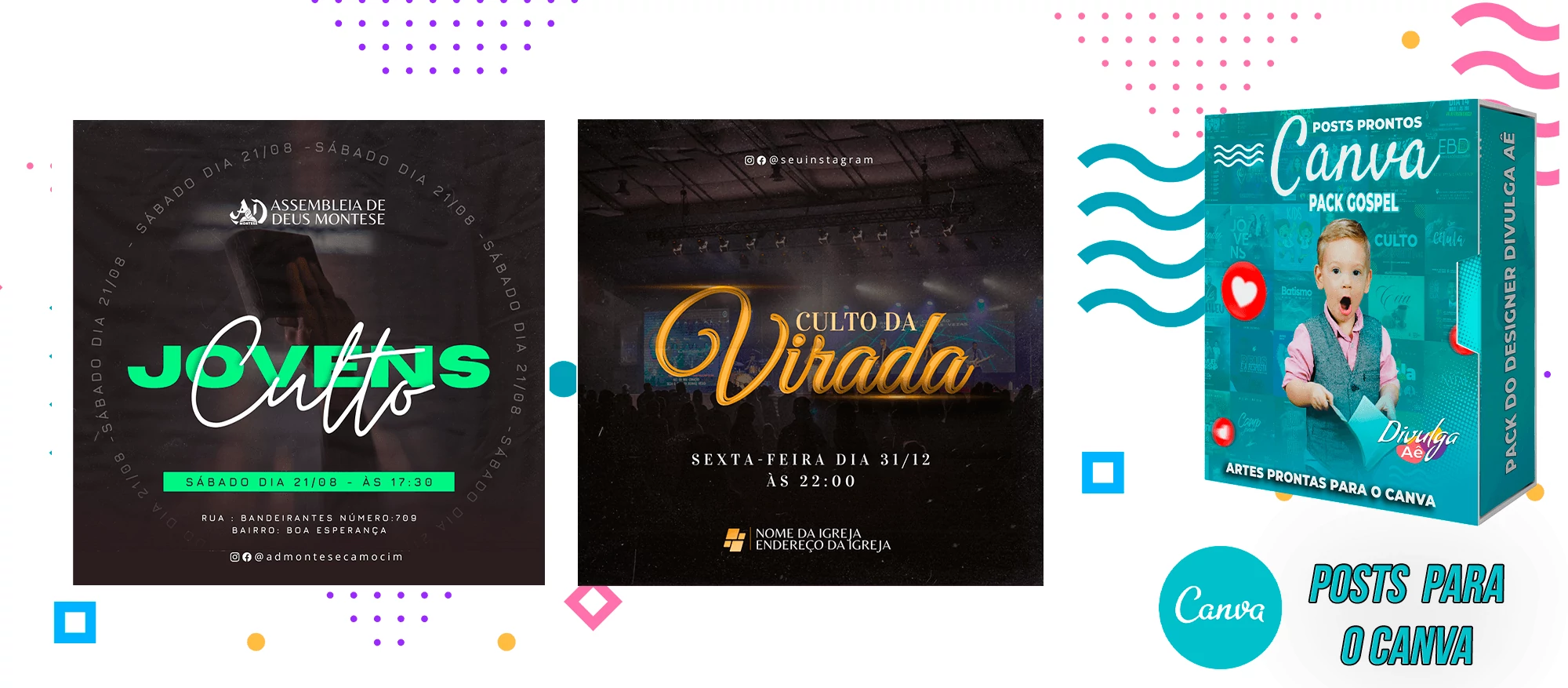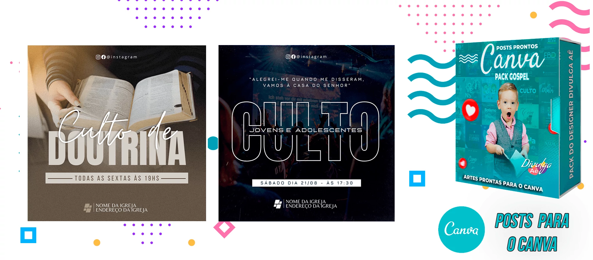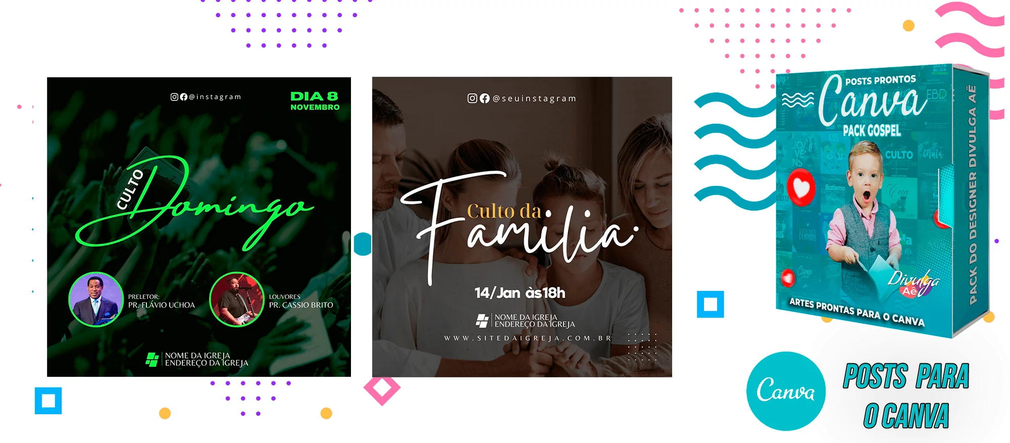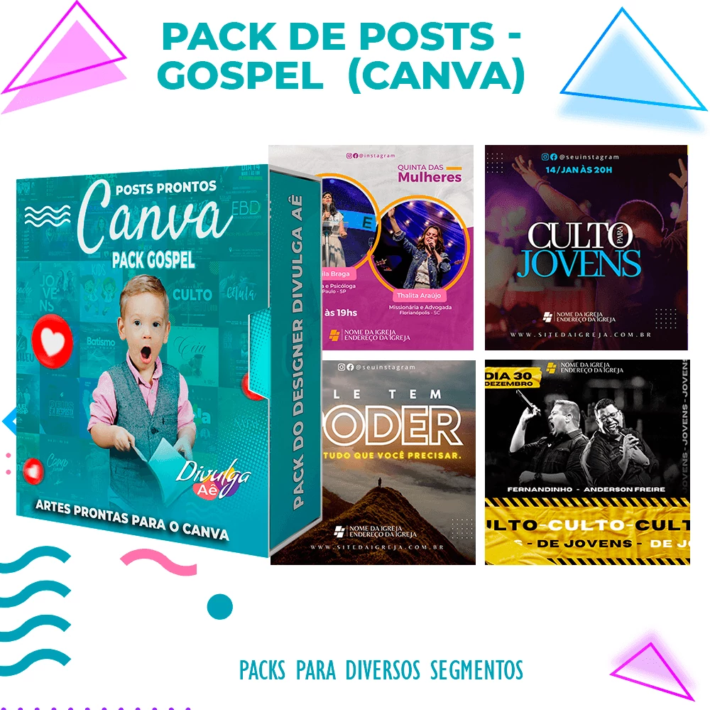 Pack de Posts Prontos para o Canva – Gospel – Igrejas Evangelicas + 2000 Artes Editaveis no Photoshop