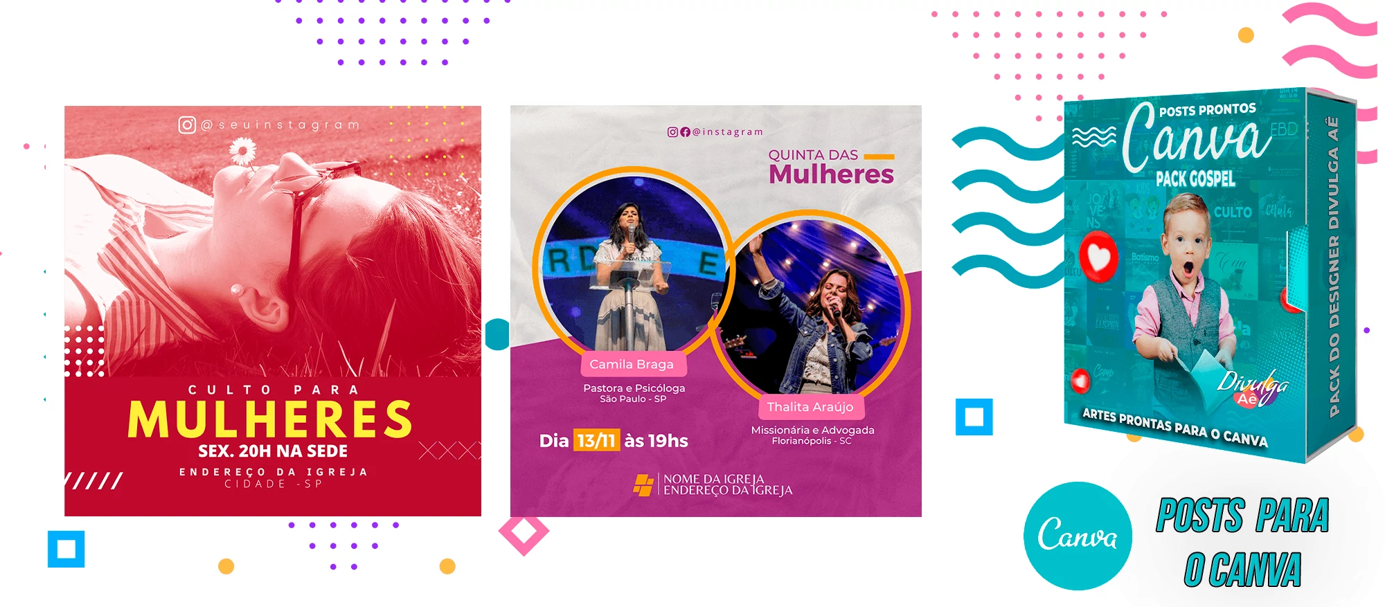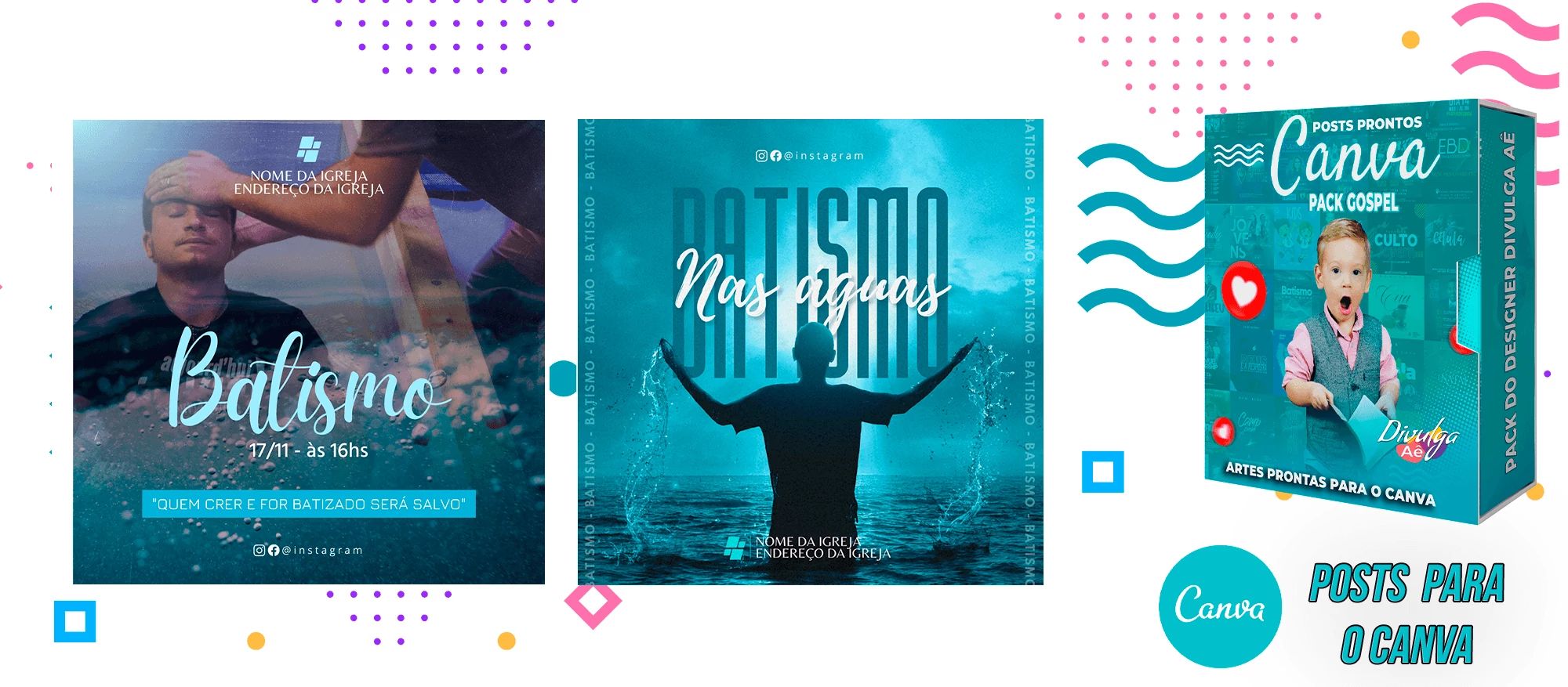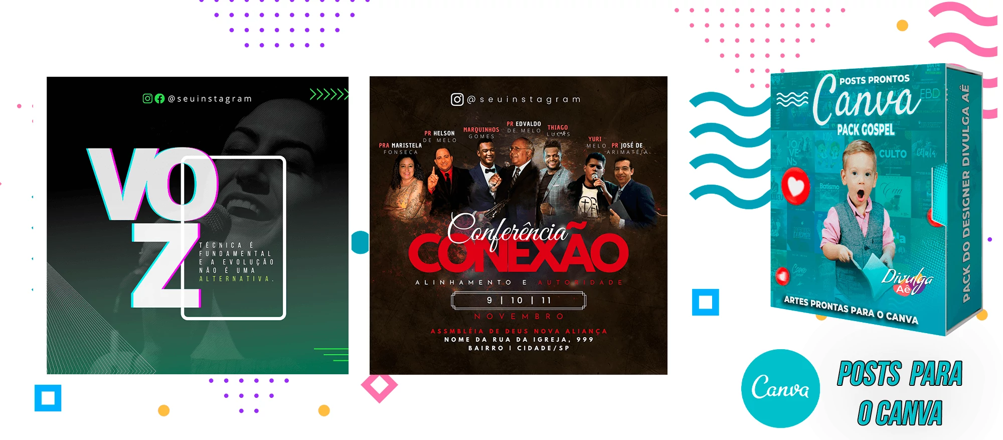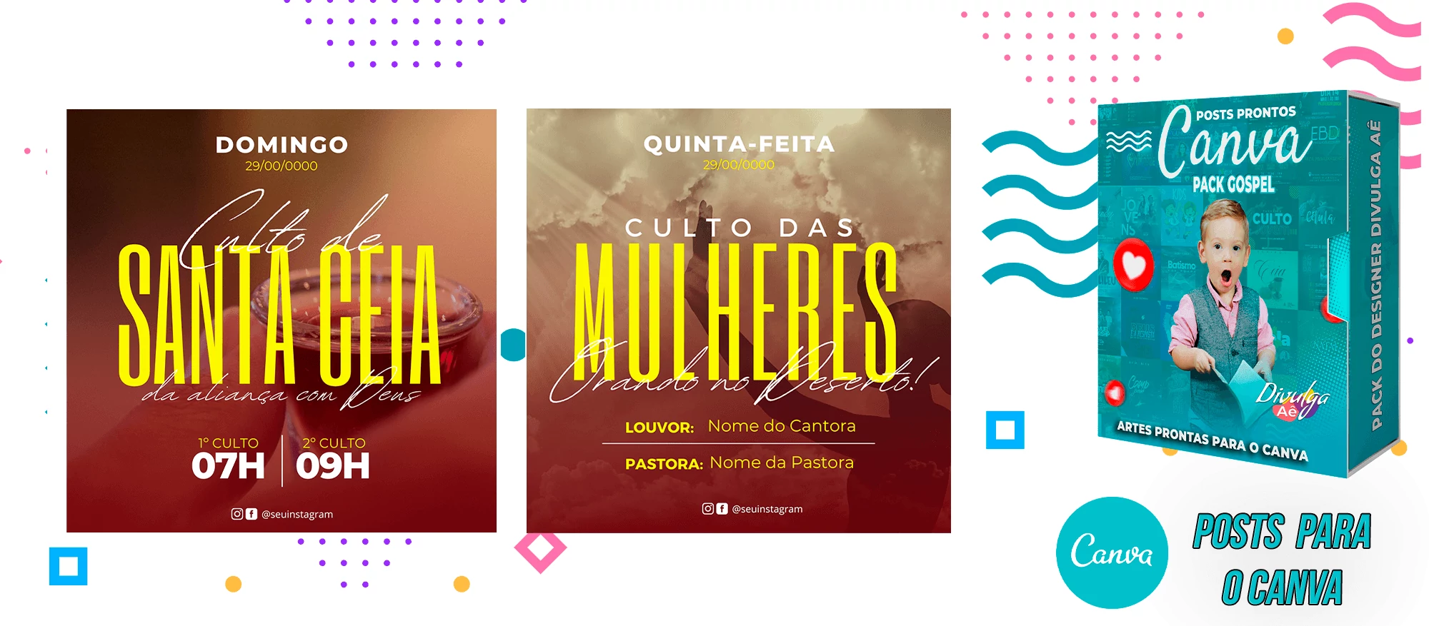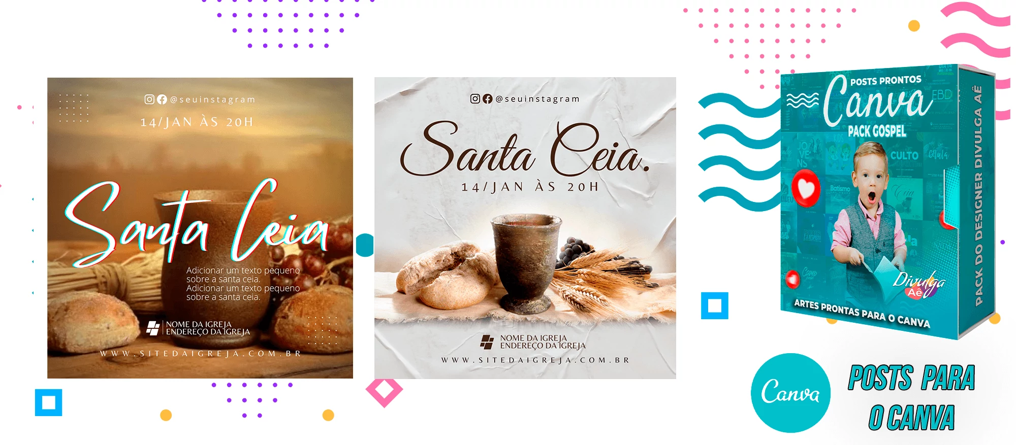 Pack de Posts Prontos para o Canva – Gospel – Igrejas Evangelicas + 2000 Artes Editaveis no Photoshop