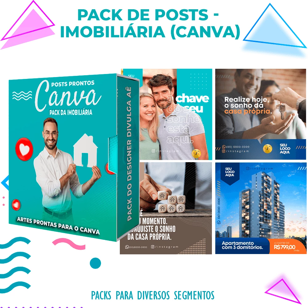Pack de Posts Prontos para o Canva – Imobiliária – Corretora de Imóveis + Legendas Prontas