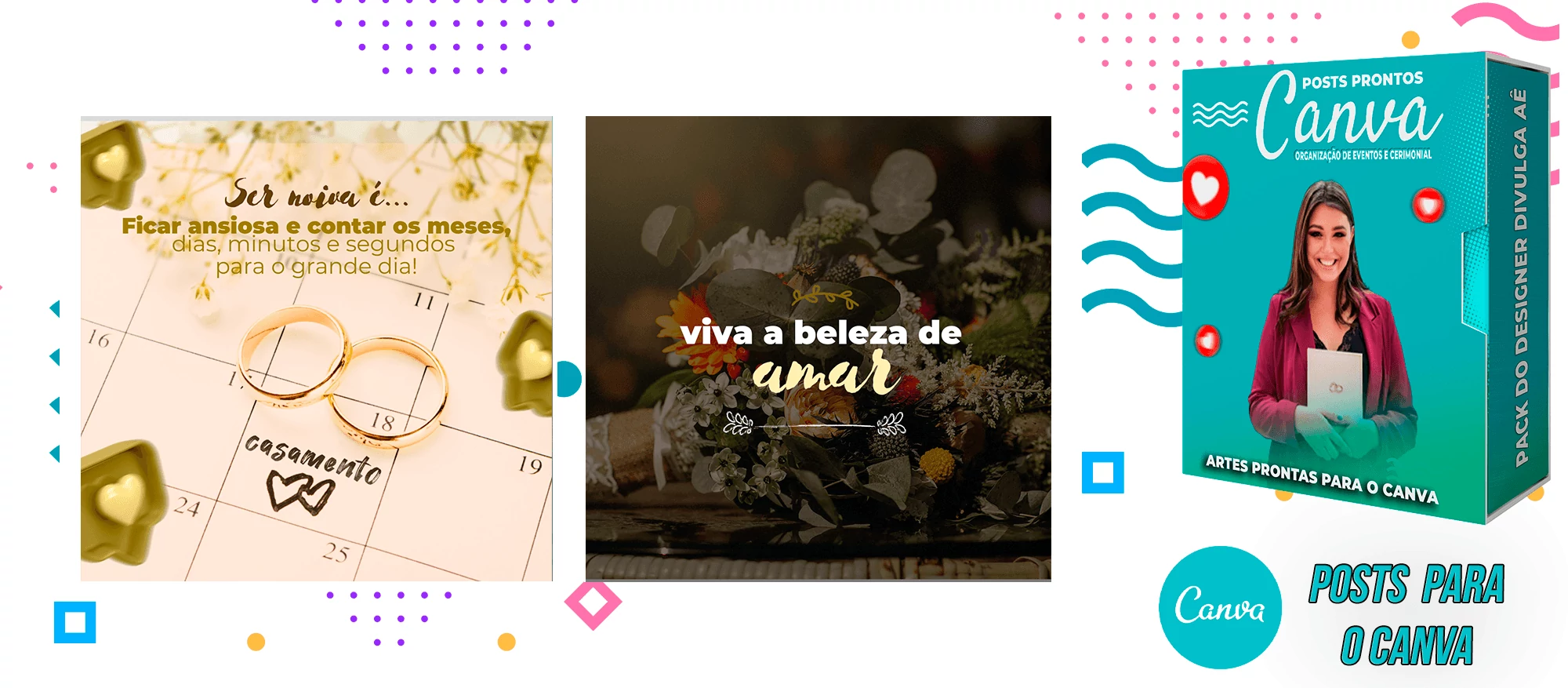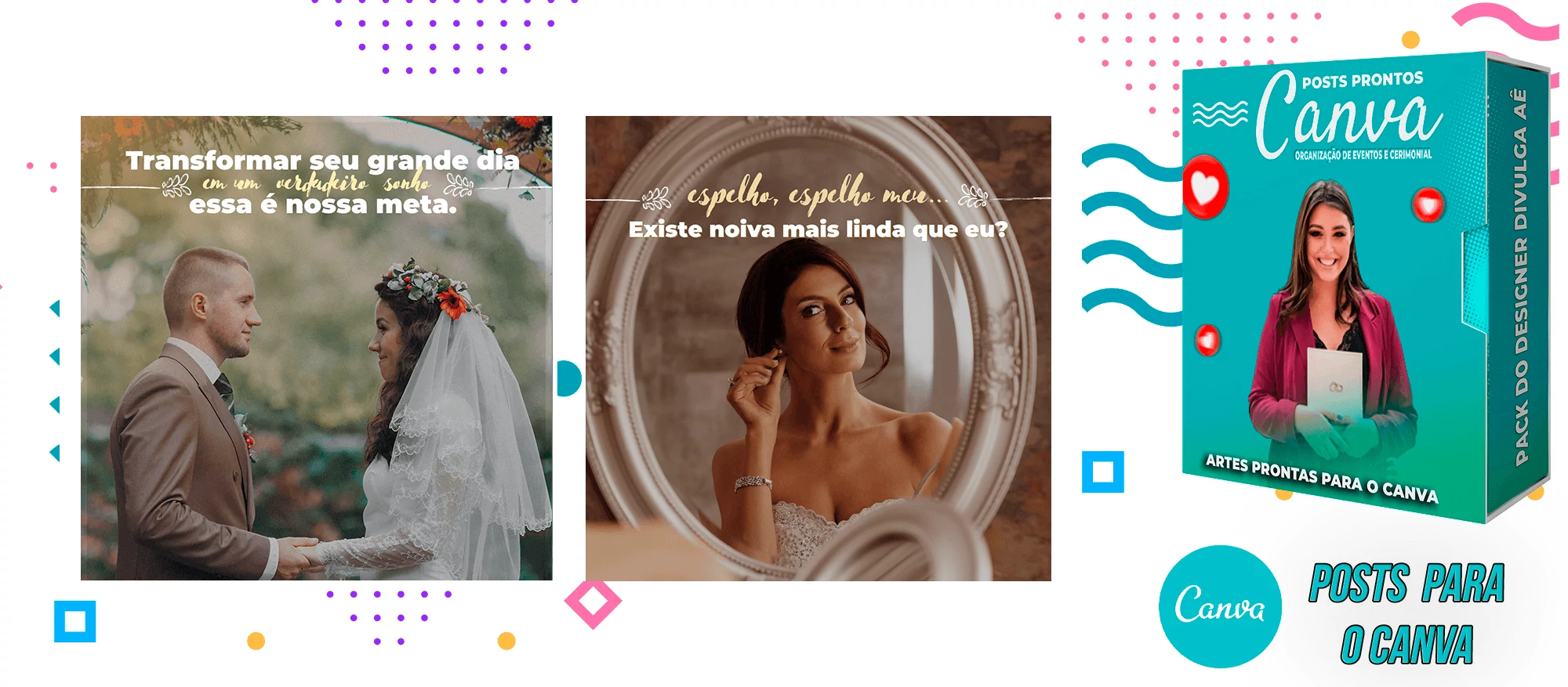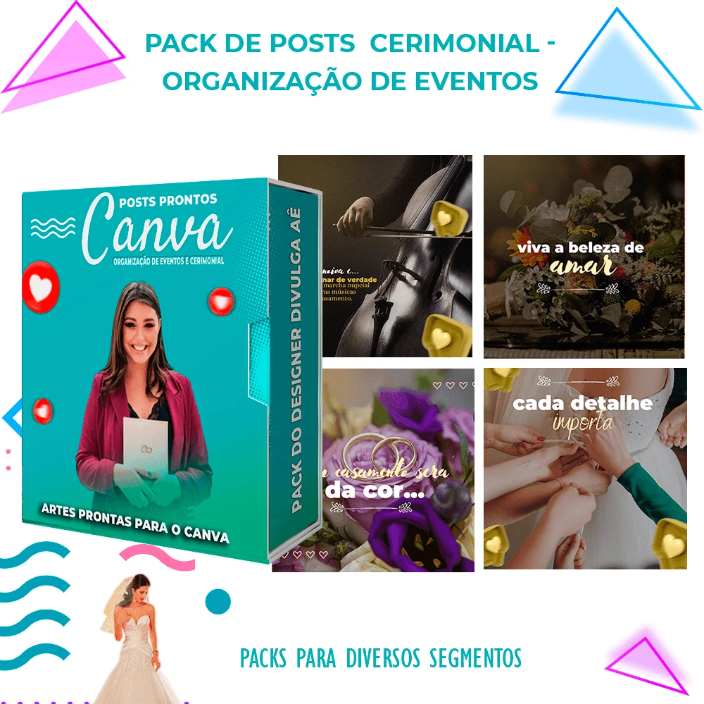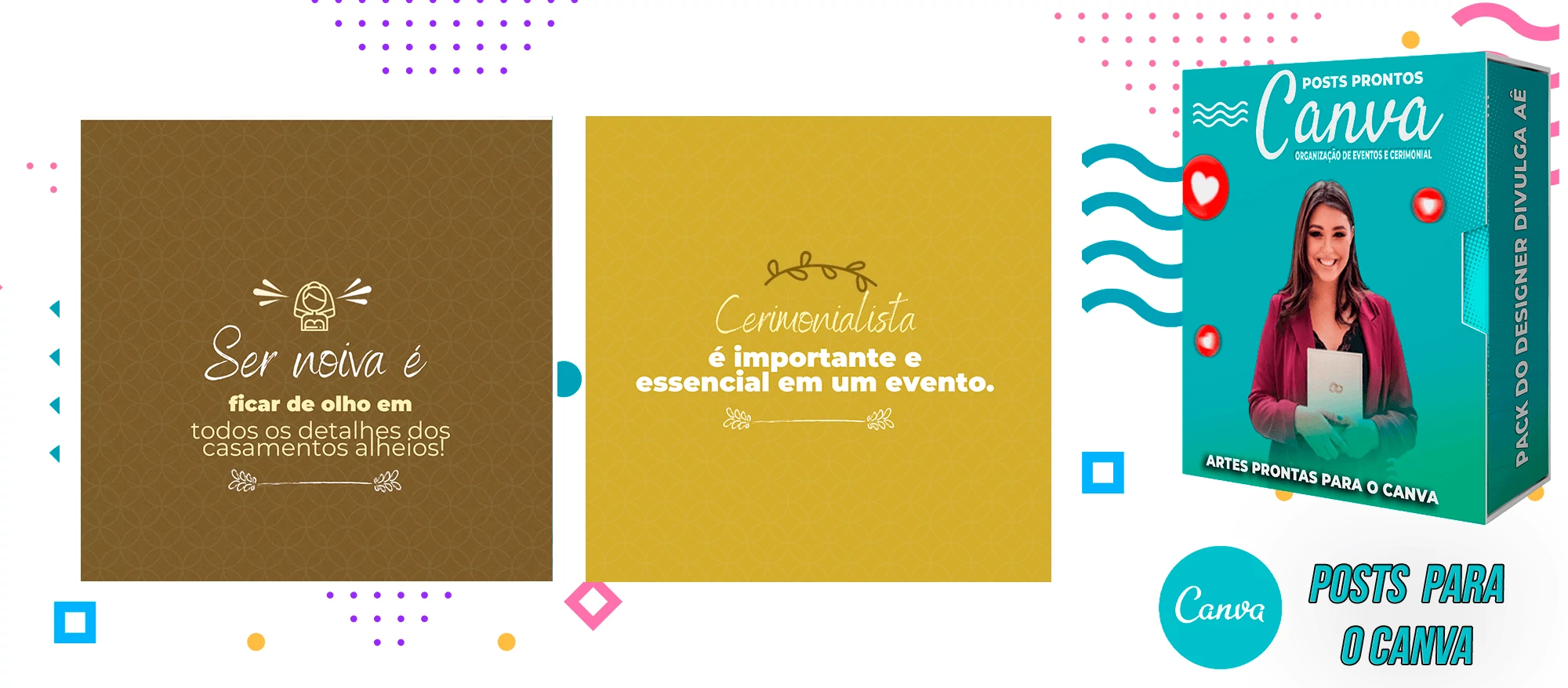 Pack elaborado sob demanda com mais de 130 artes, para Cerimonial – Organização de eventos para o Canva, indicado para cerimonialista que precisa elaborar posts de forma rápida e prática, bastando apenas possuir acesso ao Canva e editar o Template, tudo em poucos segundos!