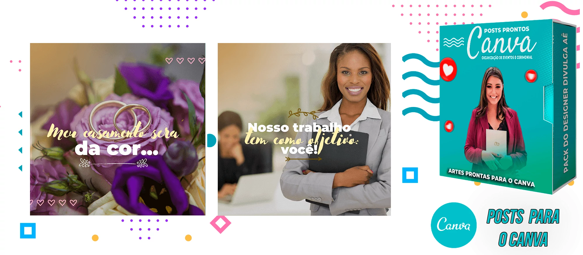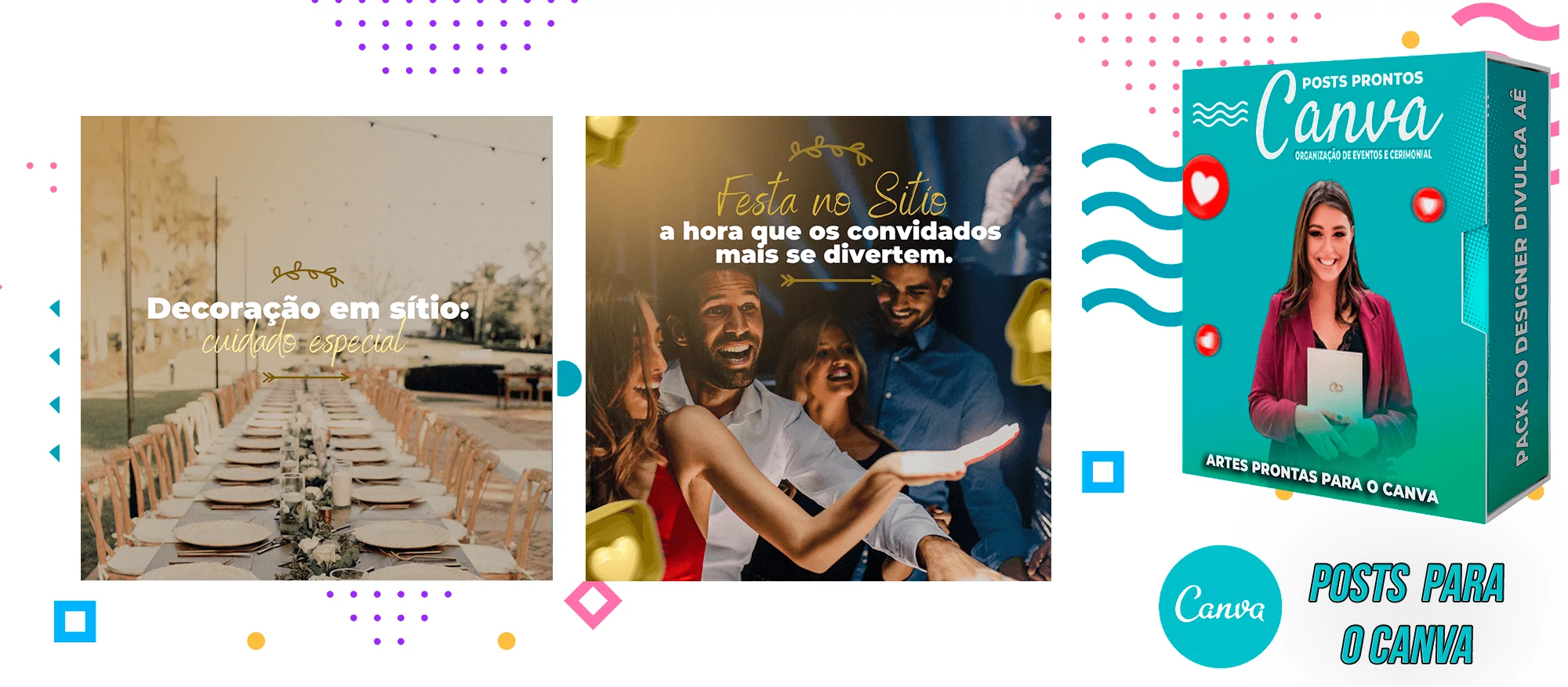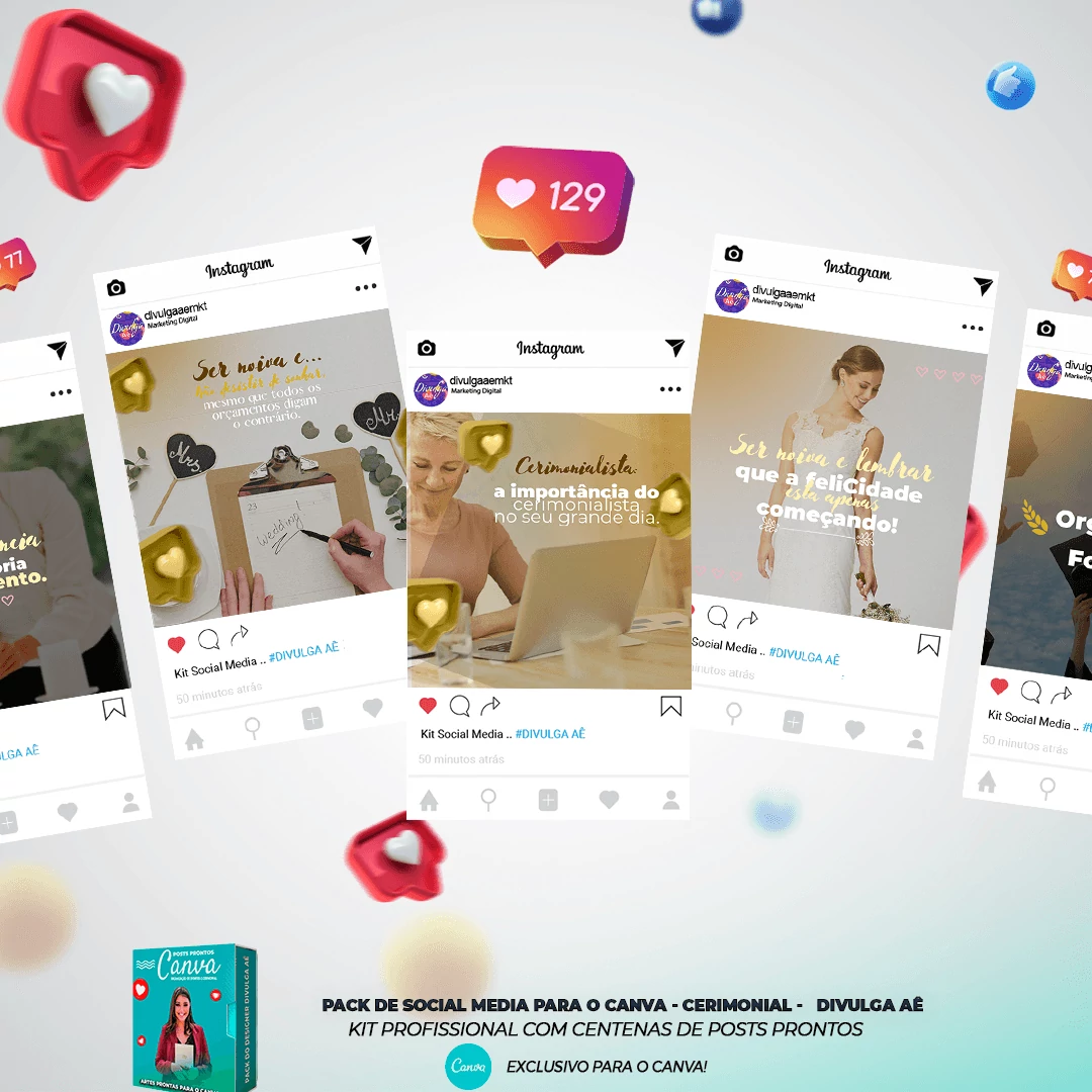 Pack elaborado sob demanda com mais de 130 artes, para Cerimonial – Organização de eventos para o Canva, indicado para cerimonialista que precisa elaborar posts de forma rápida e prática, bastando apenas possuir acesso ao Canva e editar o Template, tudo em poucos segundos!