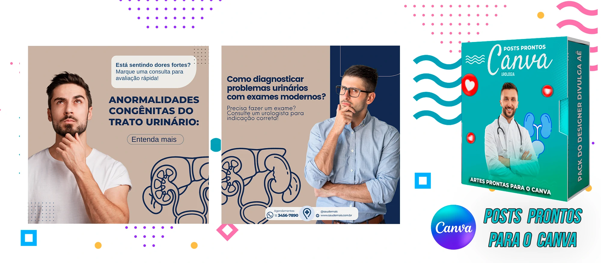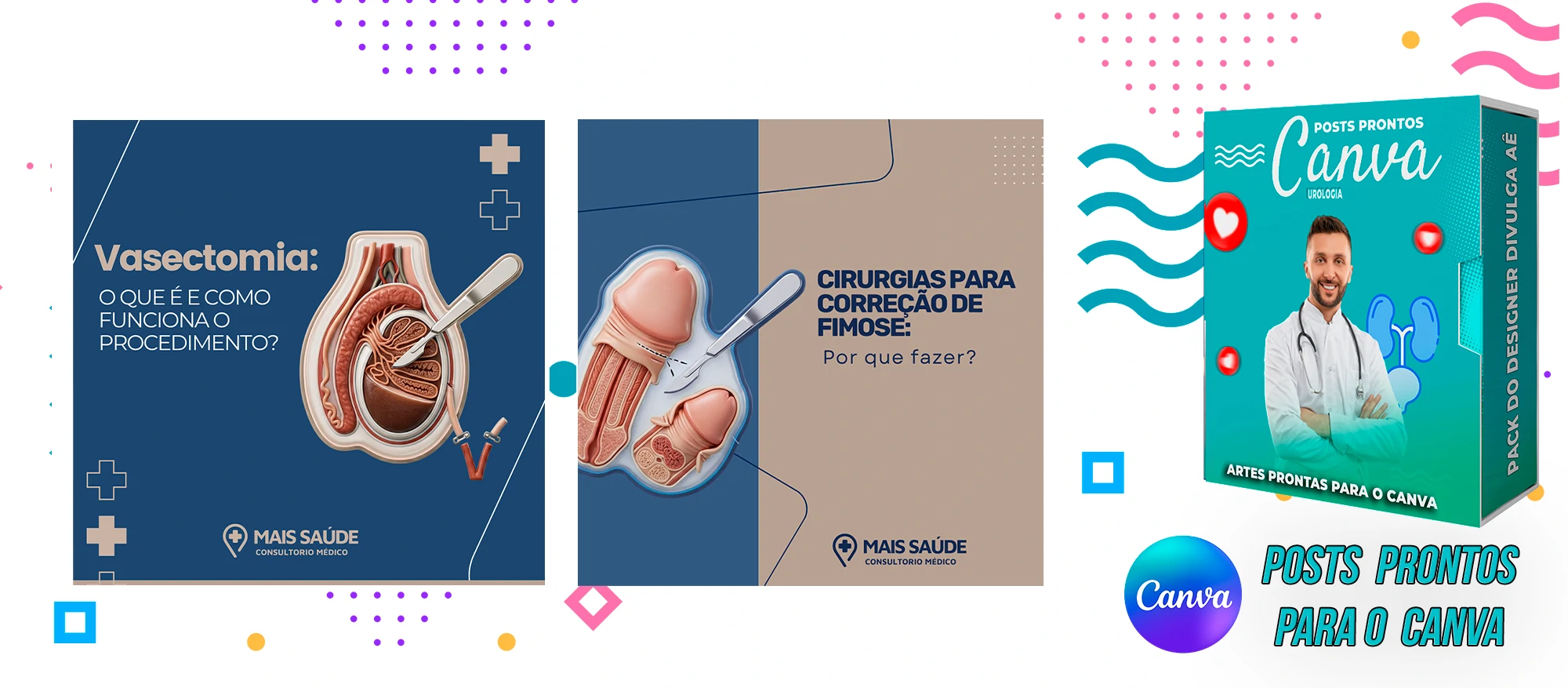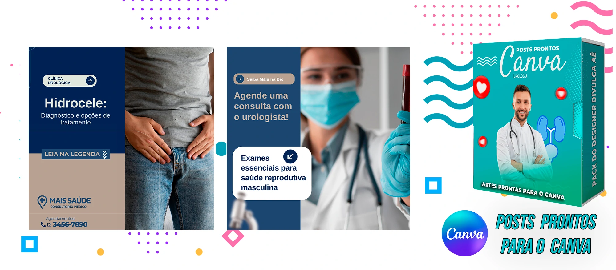 Encante seus pacientes com conteúdos profissionais e informativos, destacando a qualidade e a abrangência dos serviços médicos oferecidos. Essa ampla coleção de artes garantirá uma presença digital marcante e relevante na área da saúde. Não perca essa oportunidade! Eleve sua presença online, alcance mais pacientes da clínica médica ou consultório de urologia 🚀🏥👨⚕️