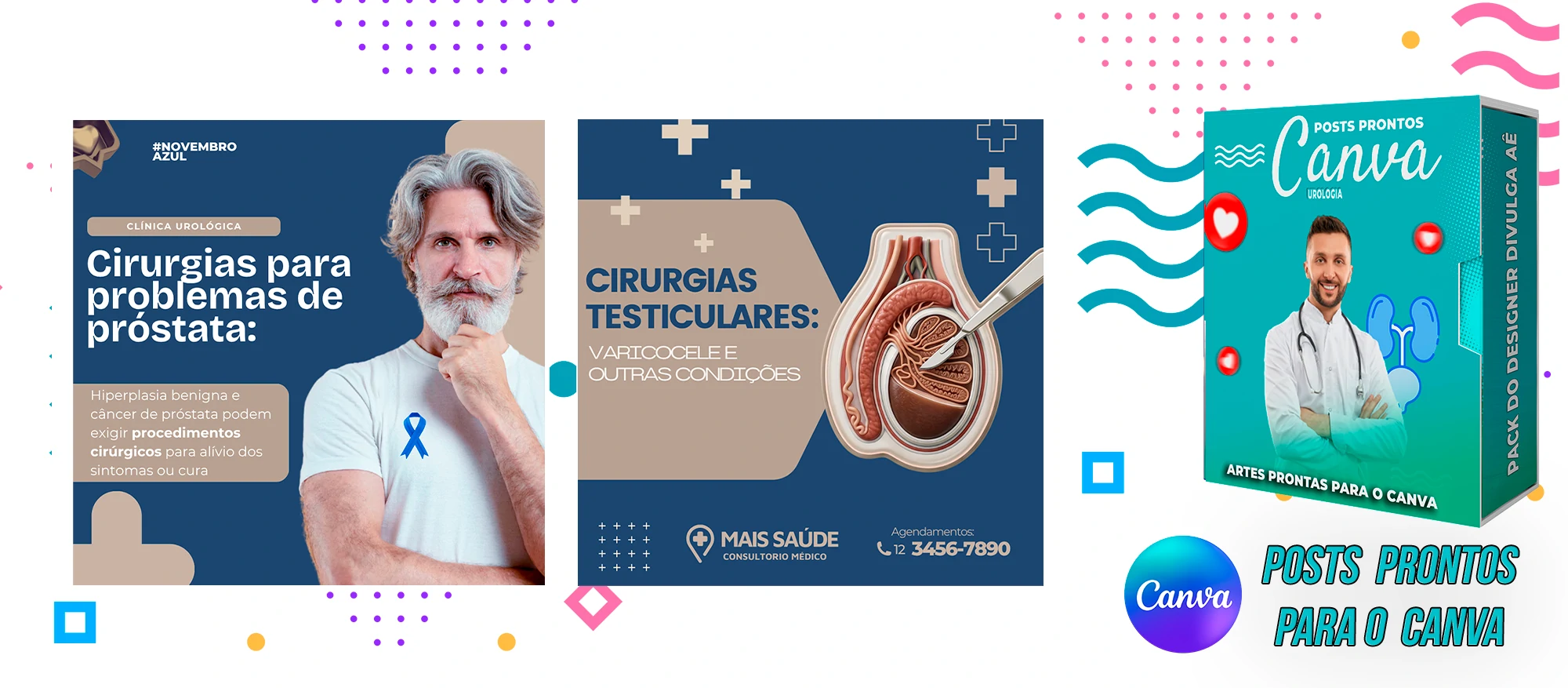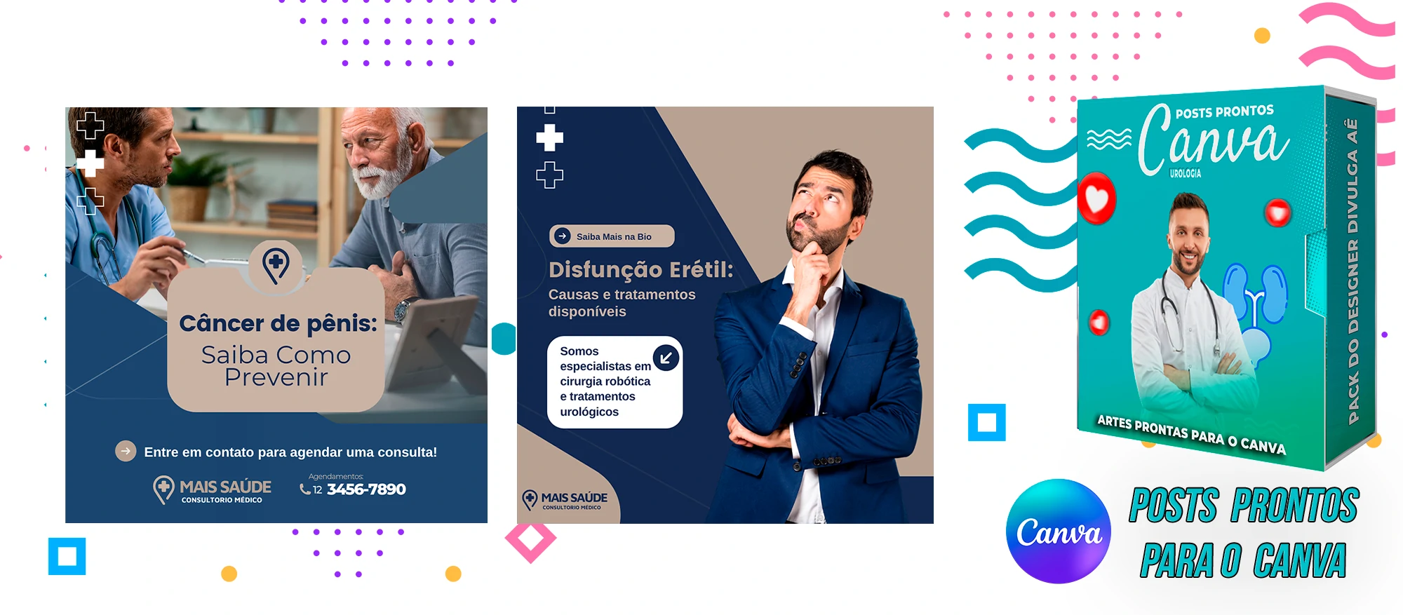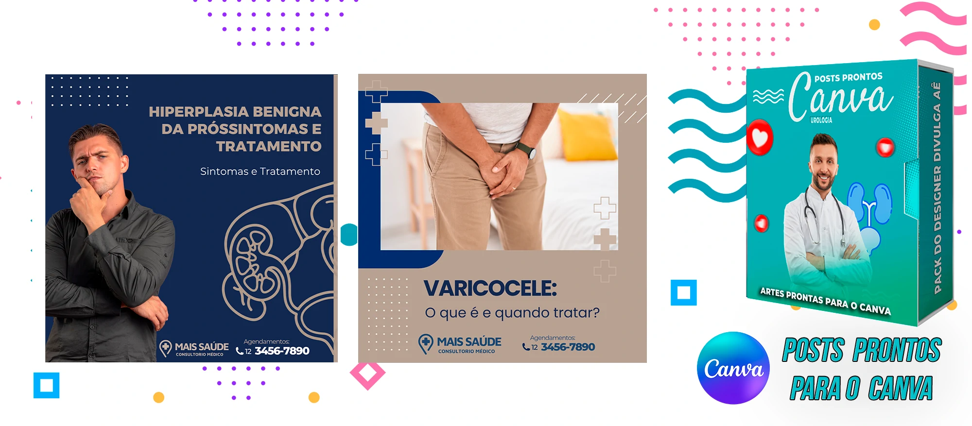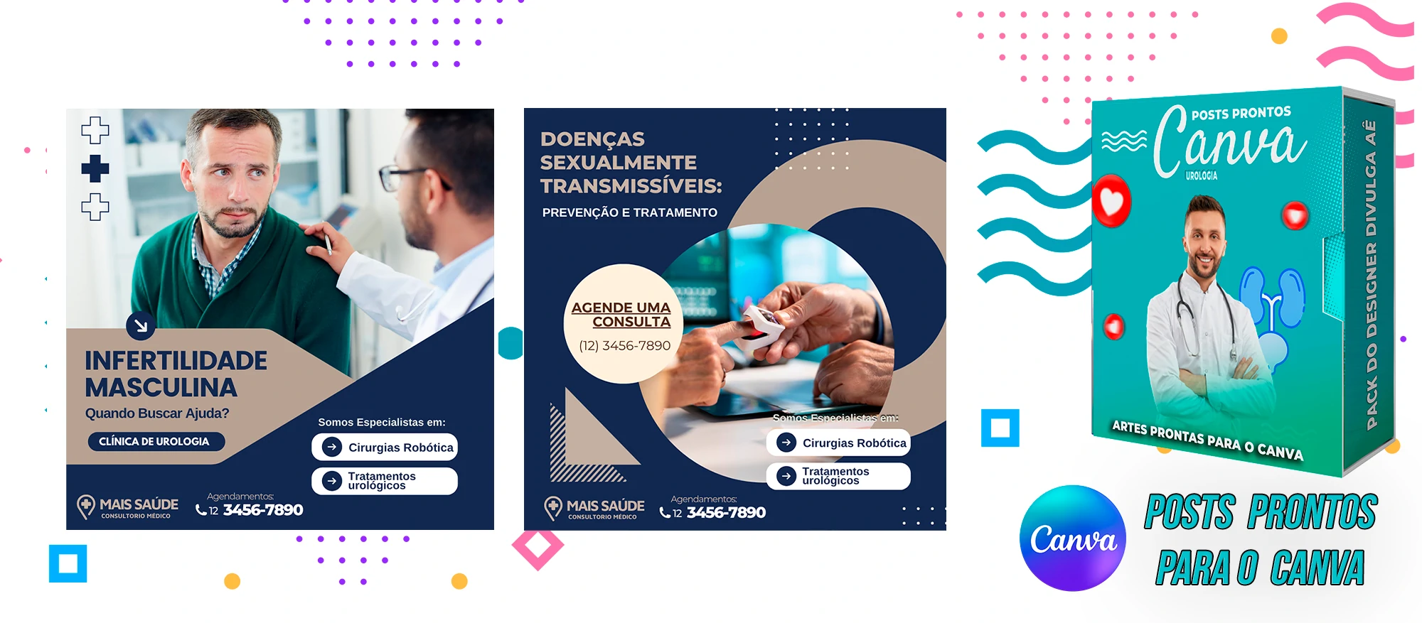 Encante seus pacientes com conteúdos profissionais e informativos, destacando a qualidade e a abrangência dos serviços médicos oferecidos. Essa ampla coleção de artes garantirá uma presença digital marcante e relevante na área da saúde. Não perca essa oportunidade! Eleve sua presença online, alcance mais pacientes da clínica médica ou consultório de urologia 🚀🏥👨⚕️