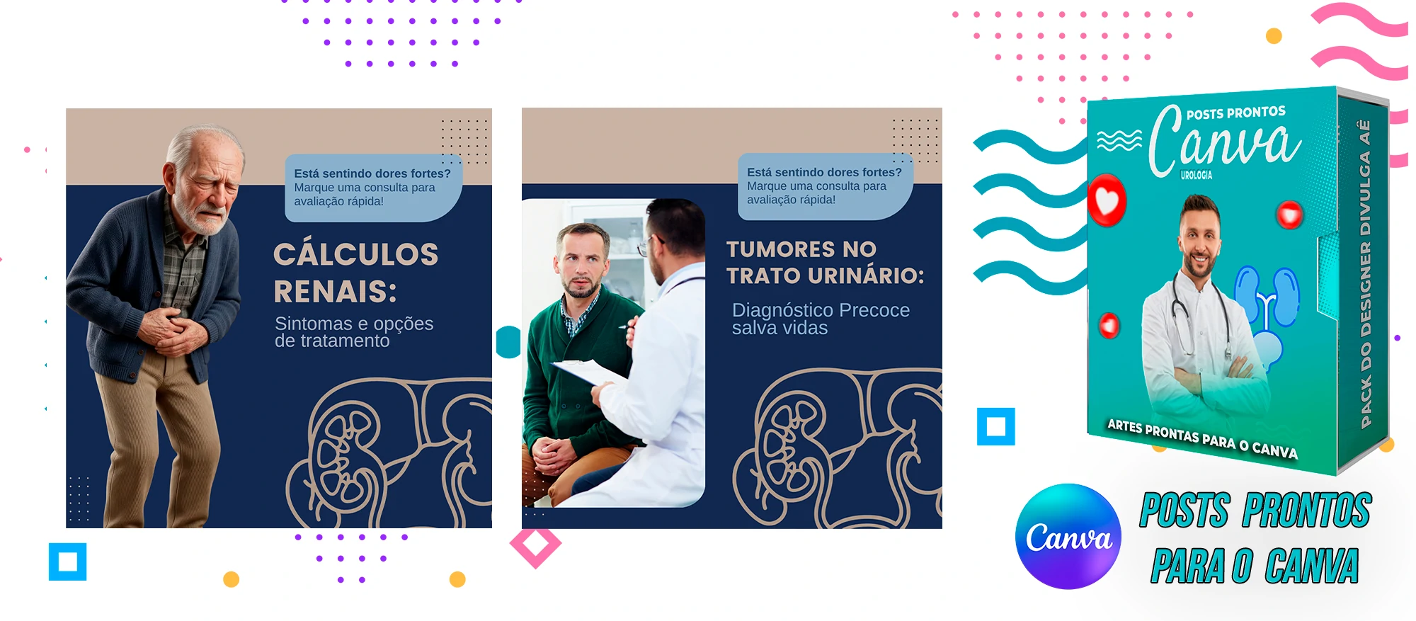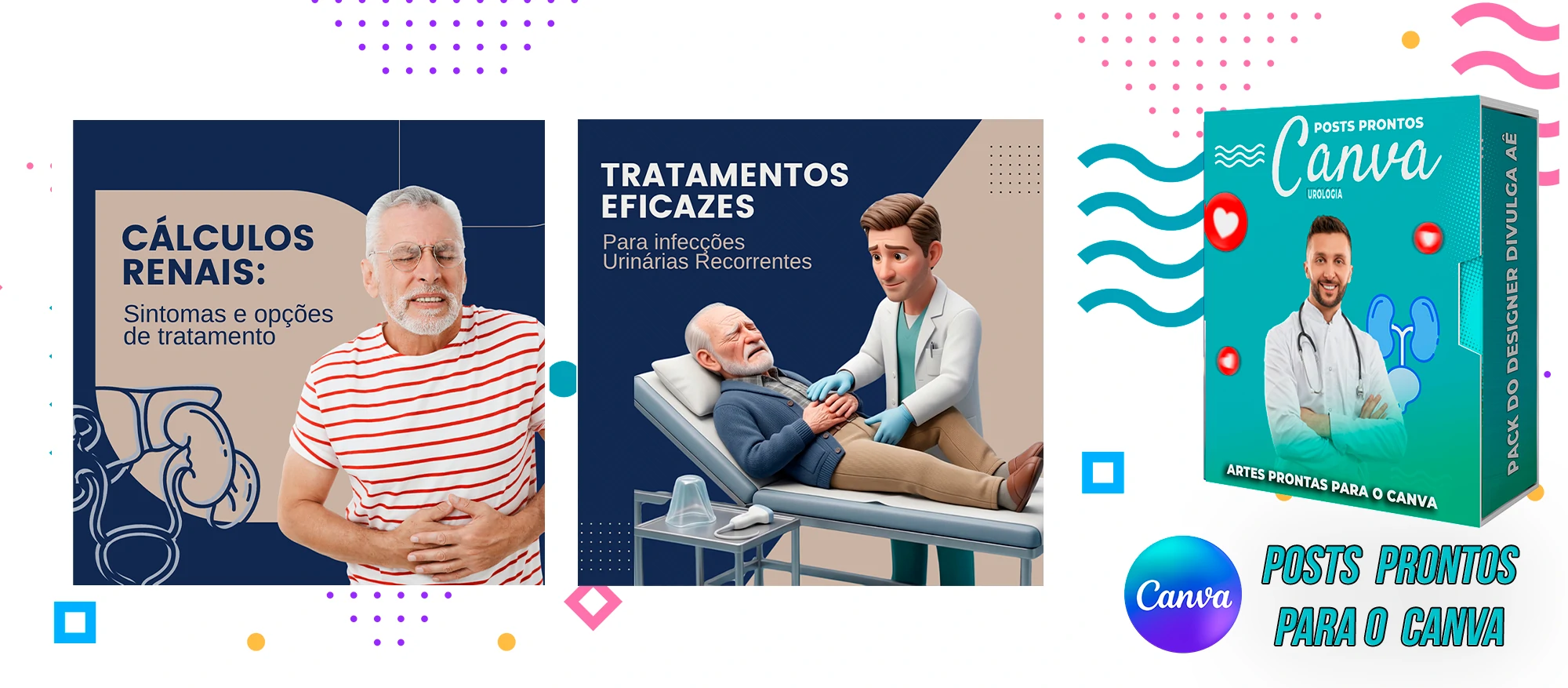 Pack de Posts Prontos para o canva + Legendas Prontas para Urologistas – Nefrologia e Clínica Médica