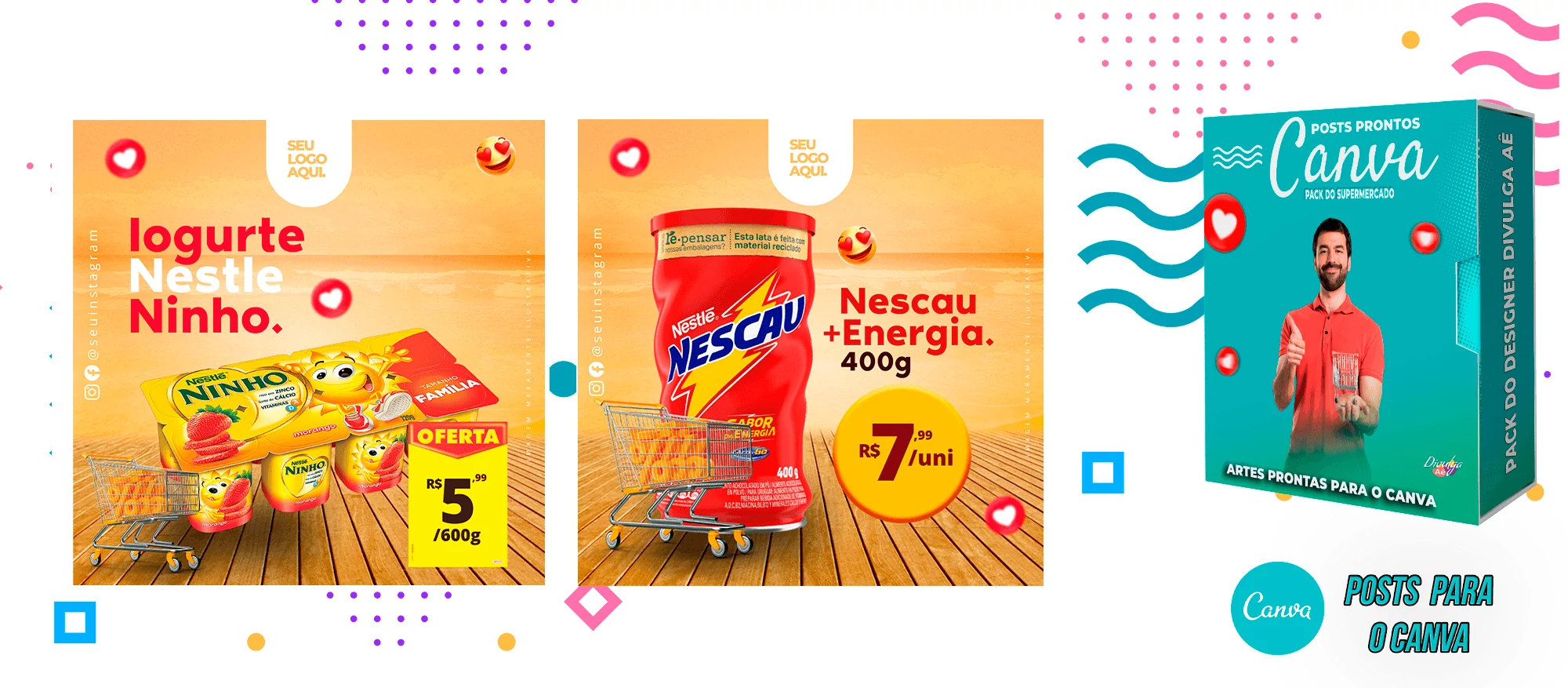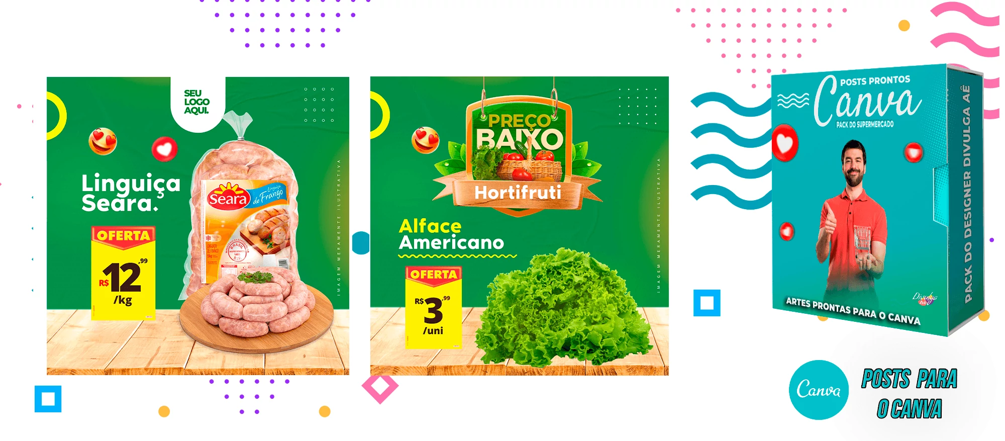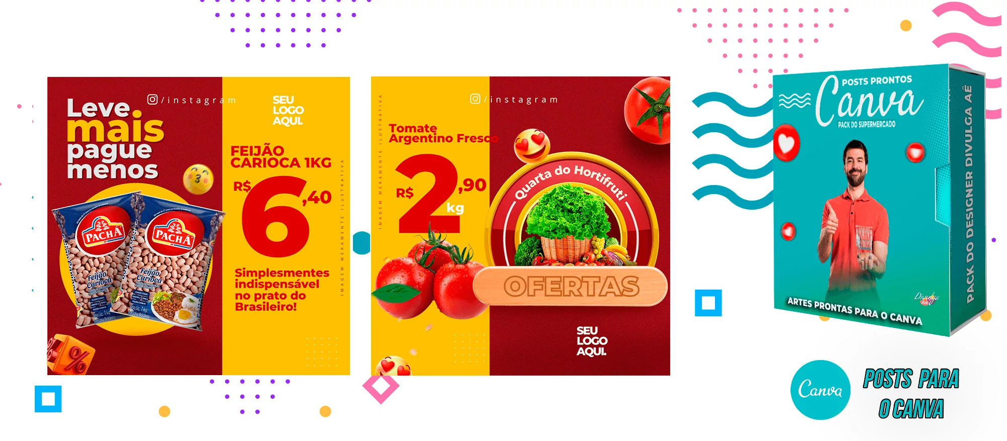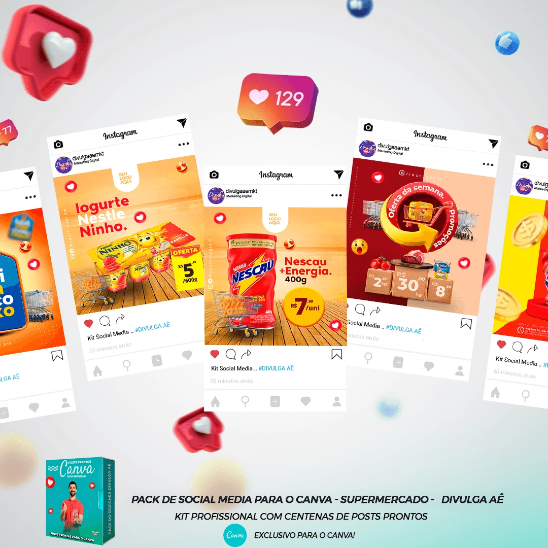 Pack de Posts Prontos para o Canva - Supermercado + Legendas Prontas