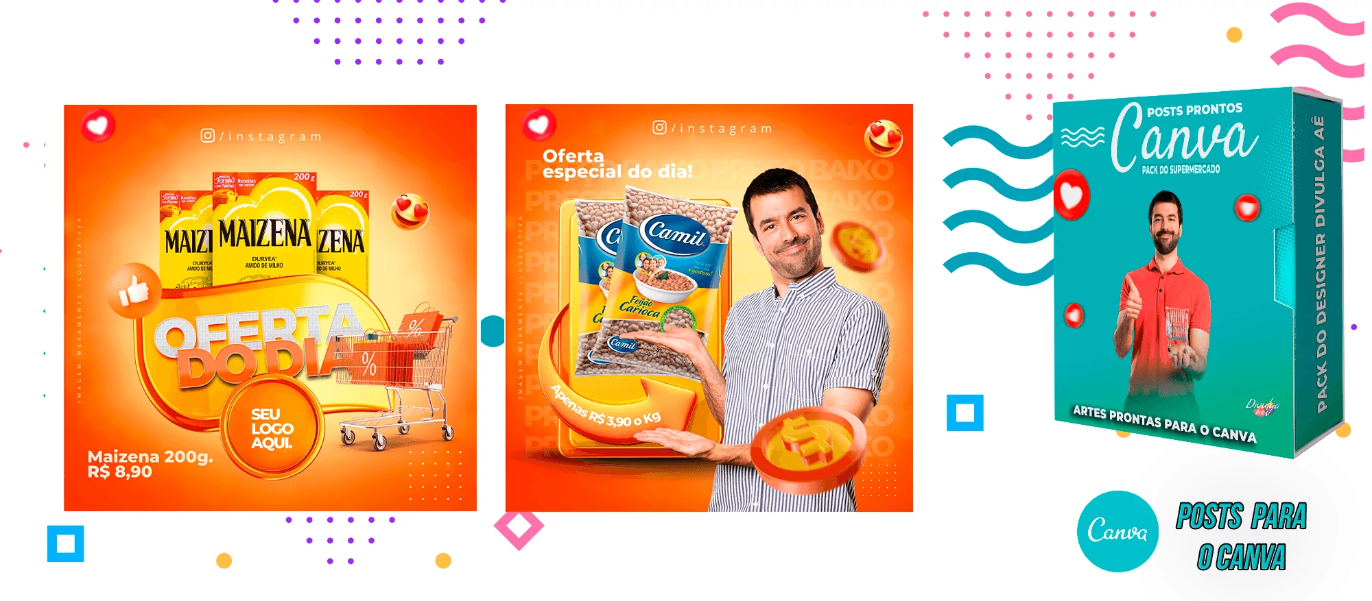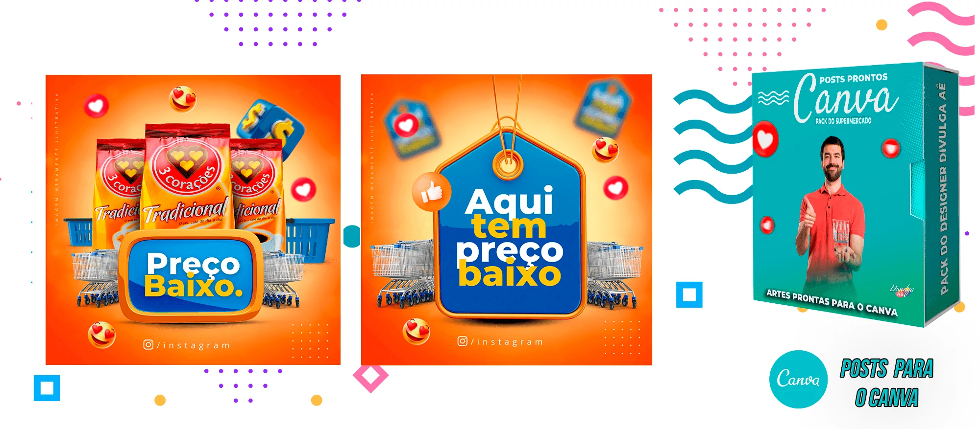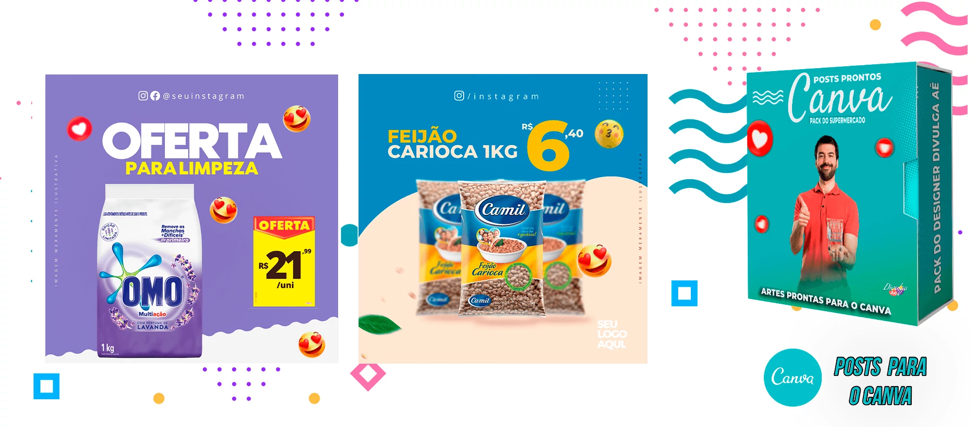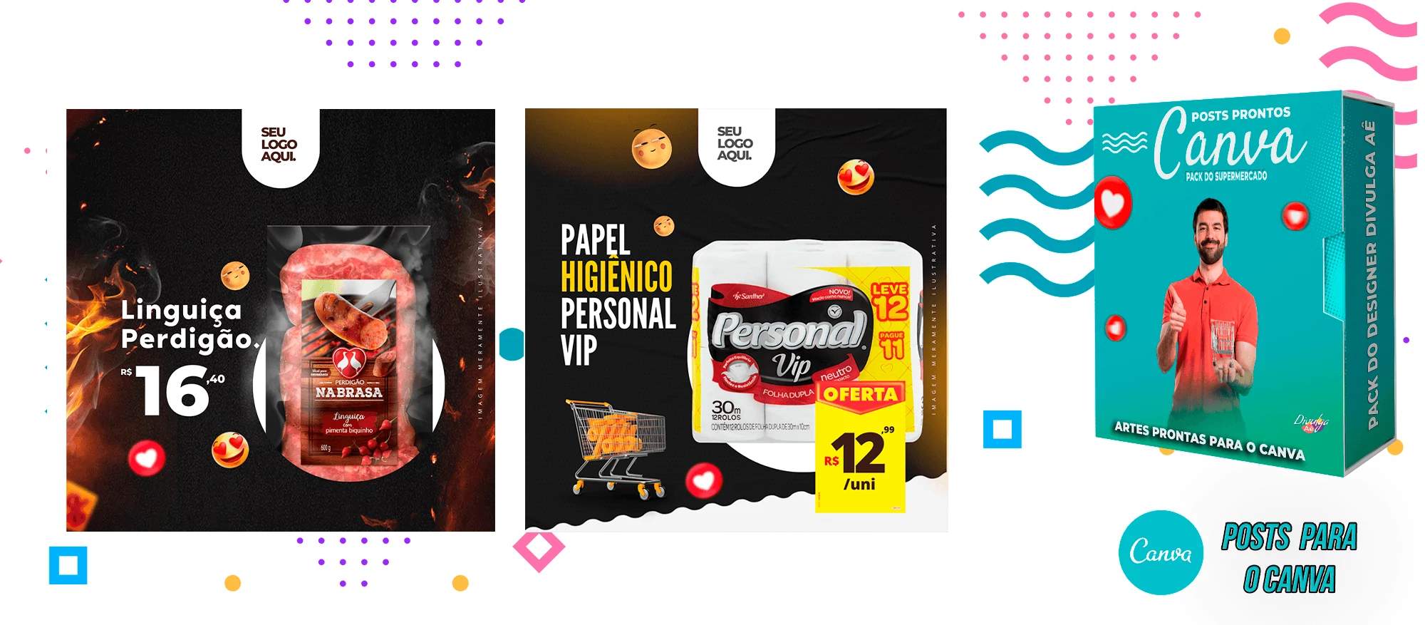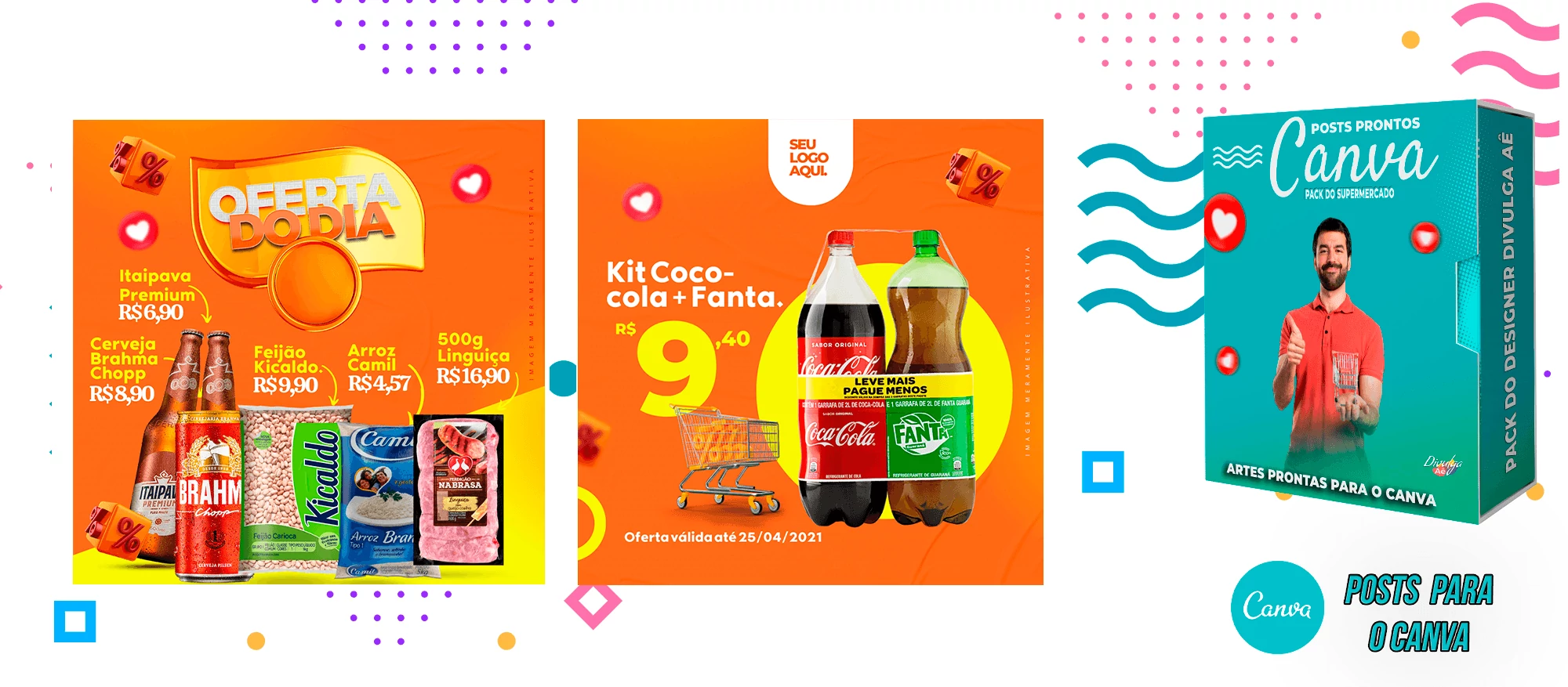 Pack de Posts Prontos para o Canva - Supermercado + Legendas Prontas