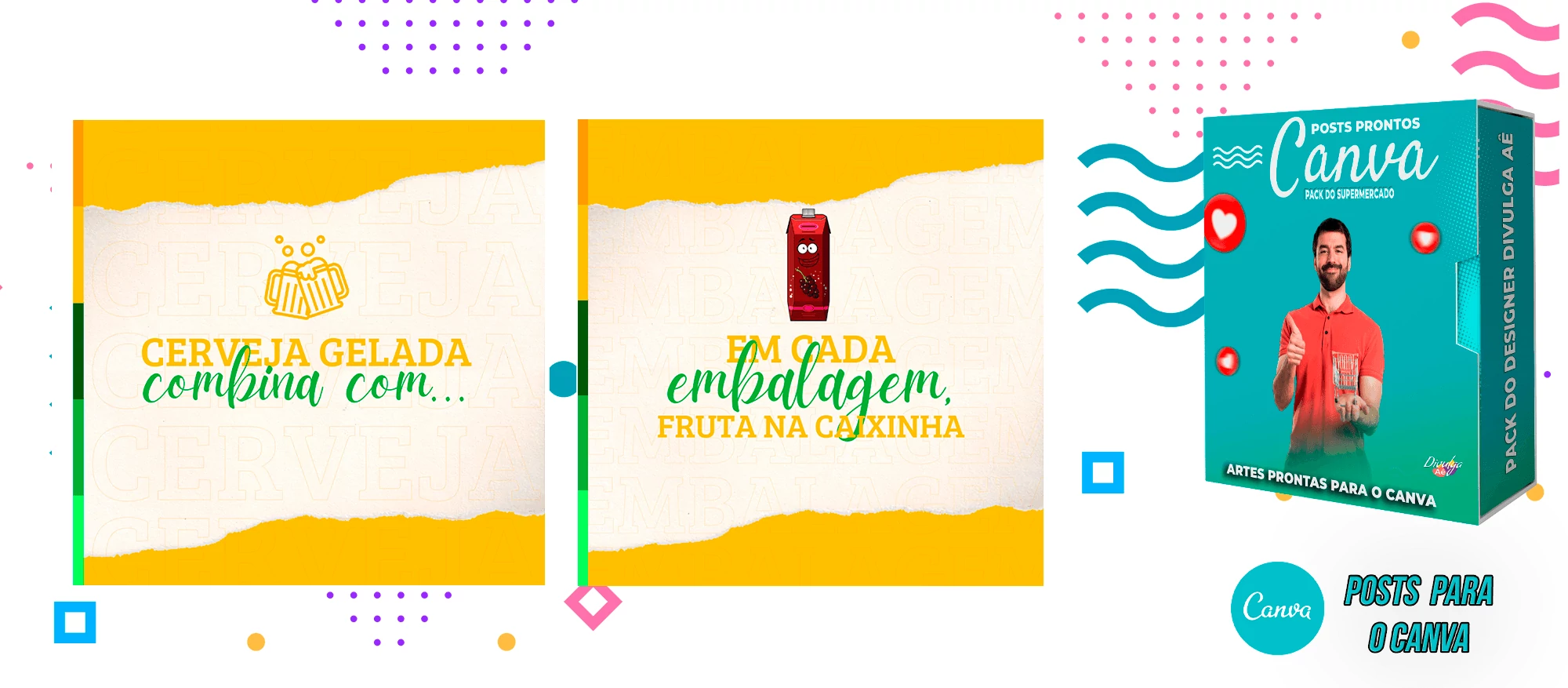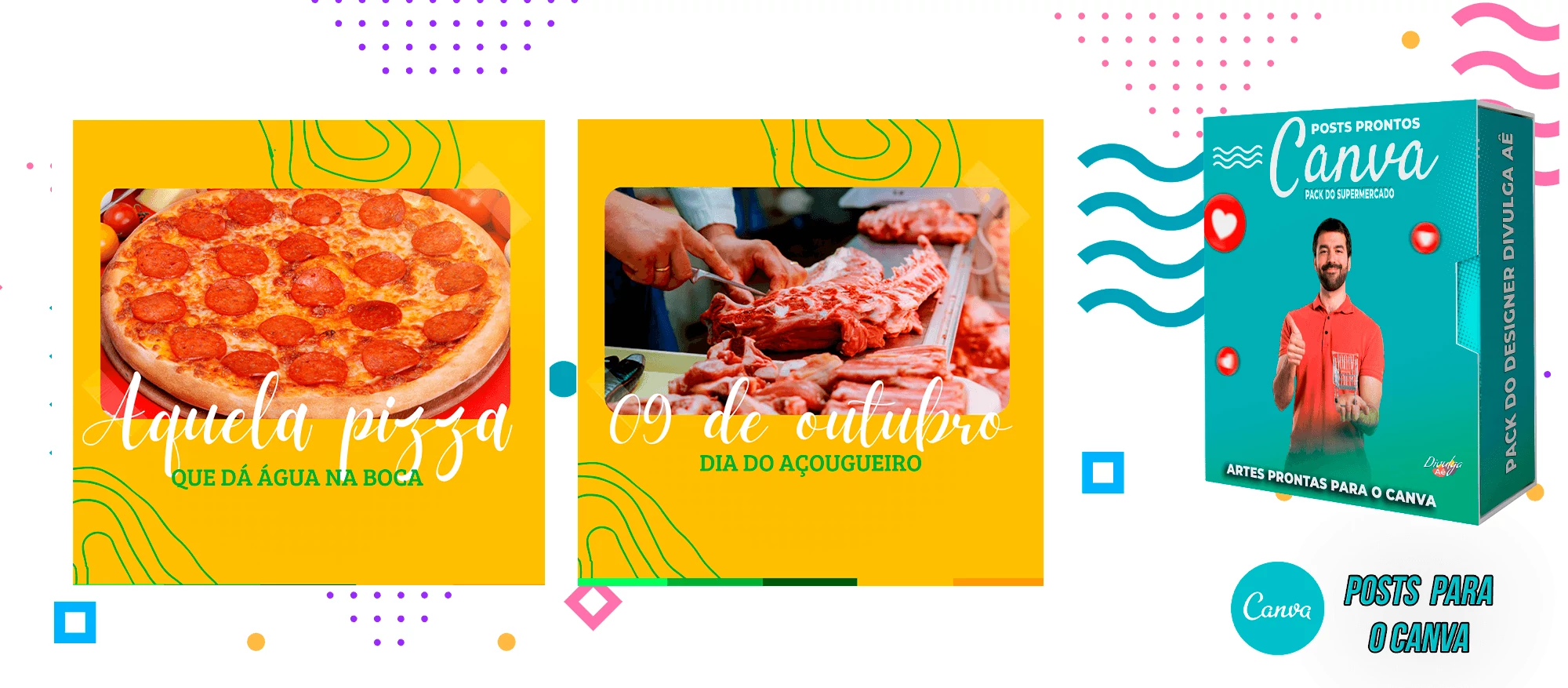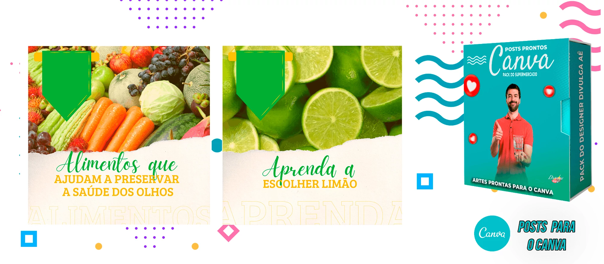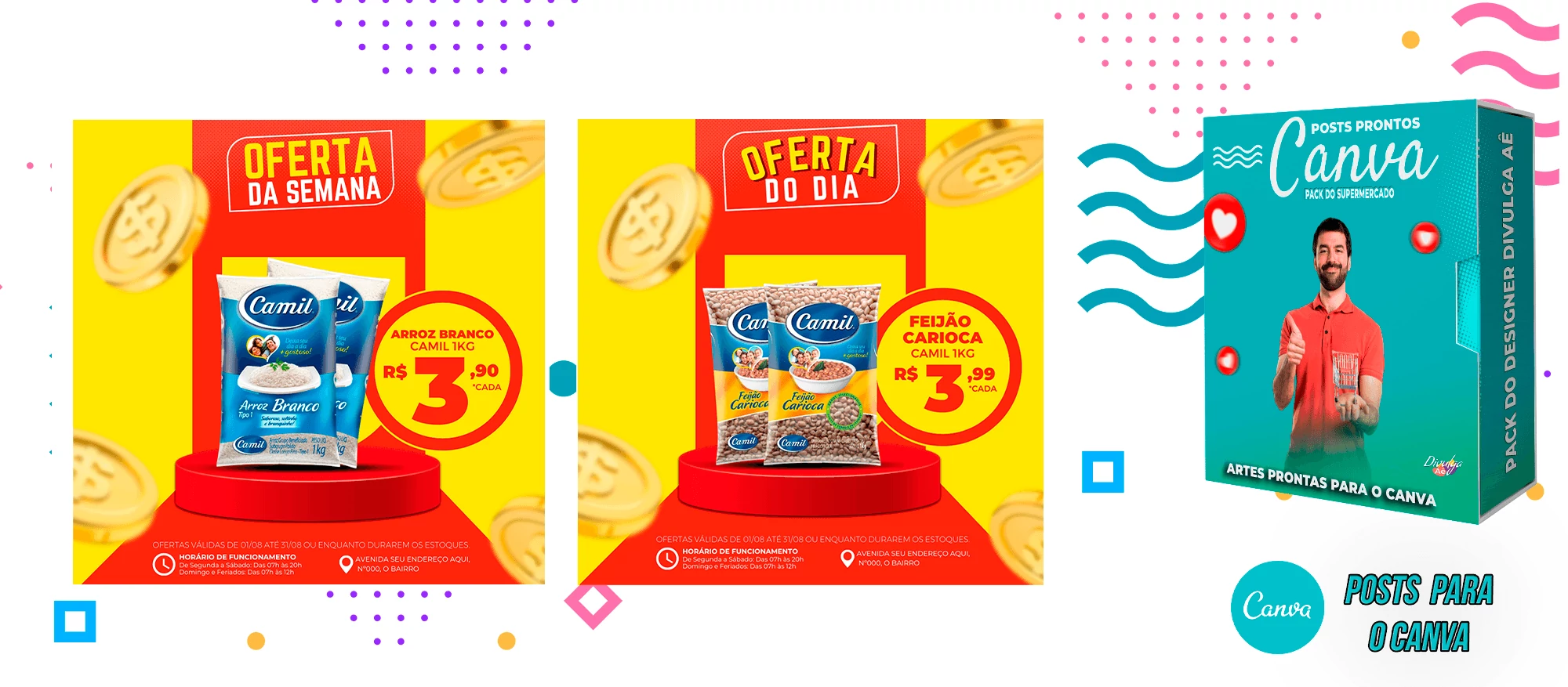 Pack de Posts Prontos para o Canva - Supermercado + Legendas Prontas