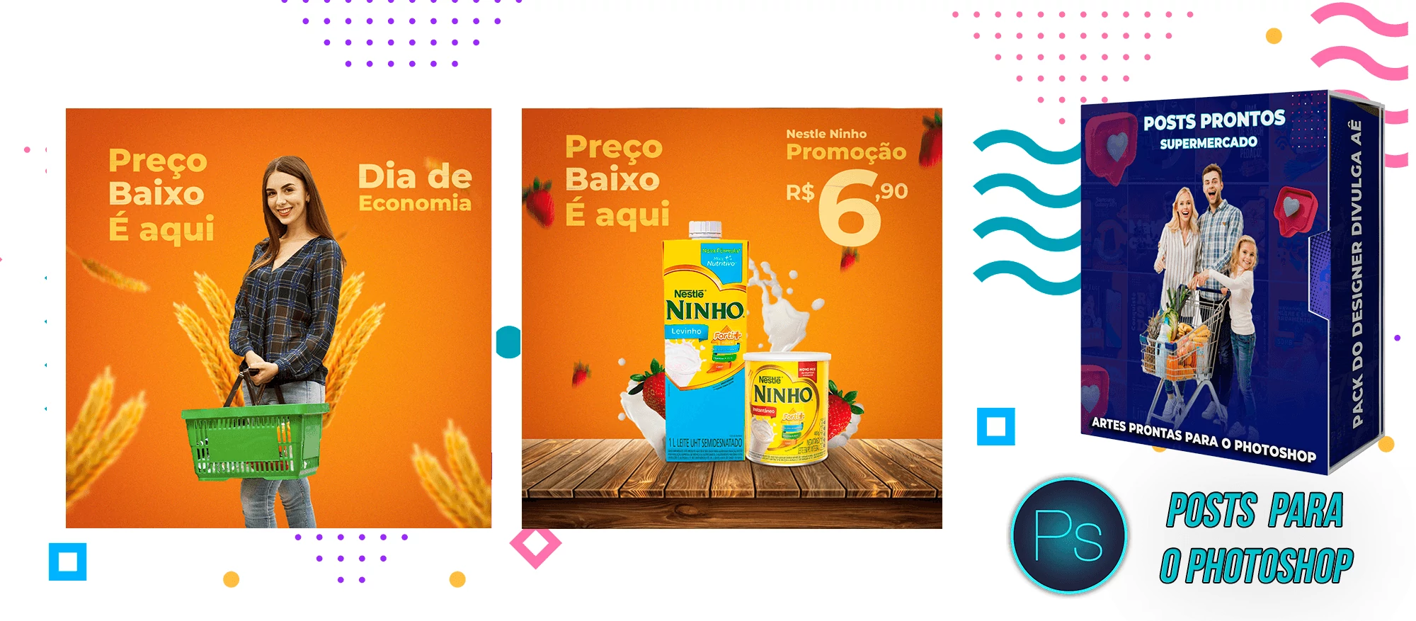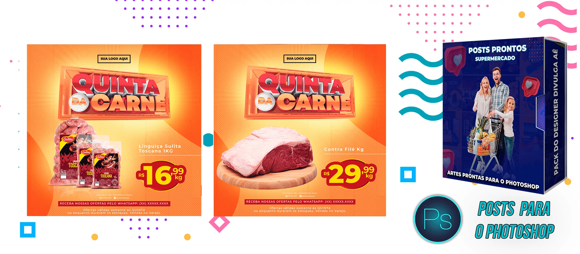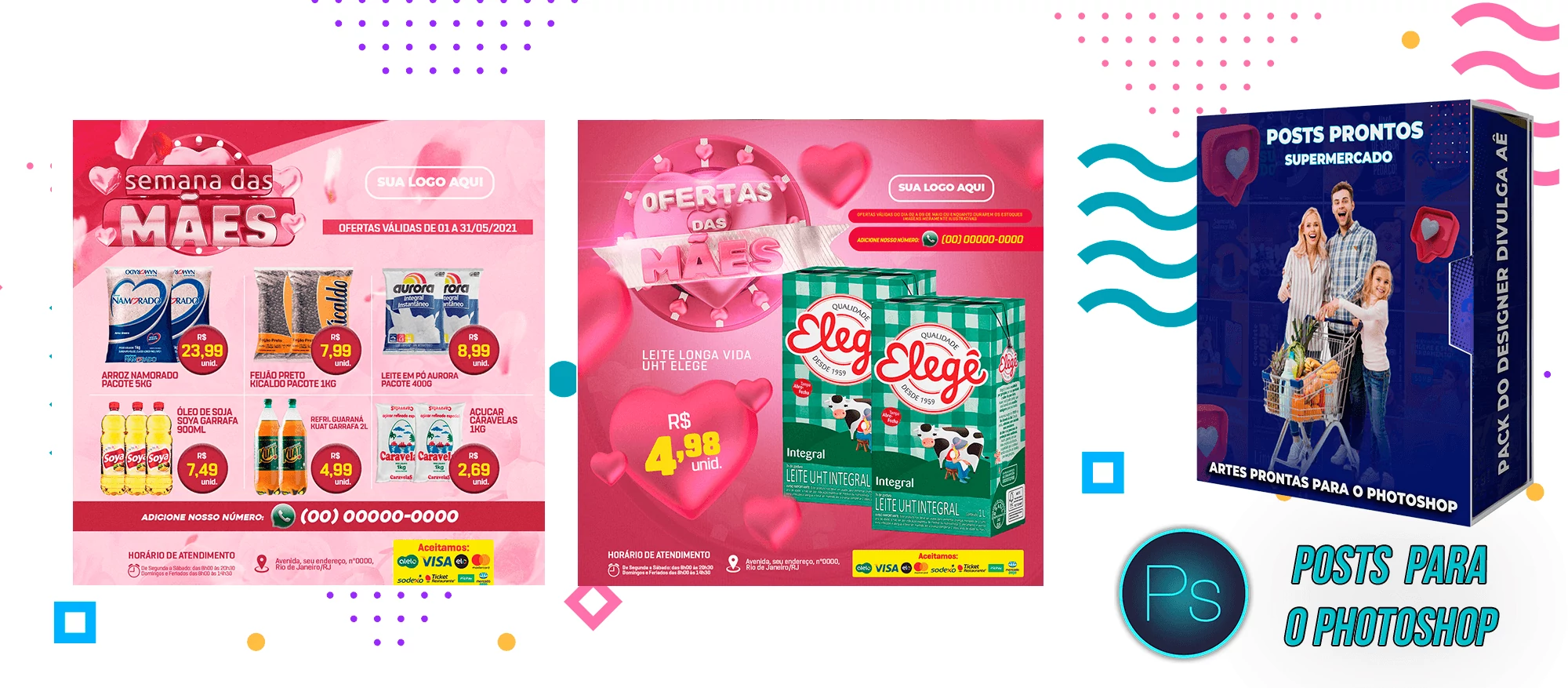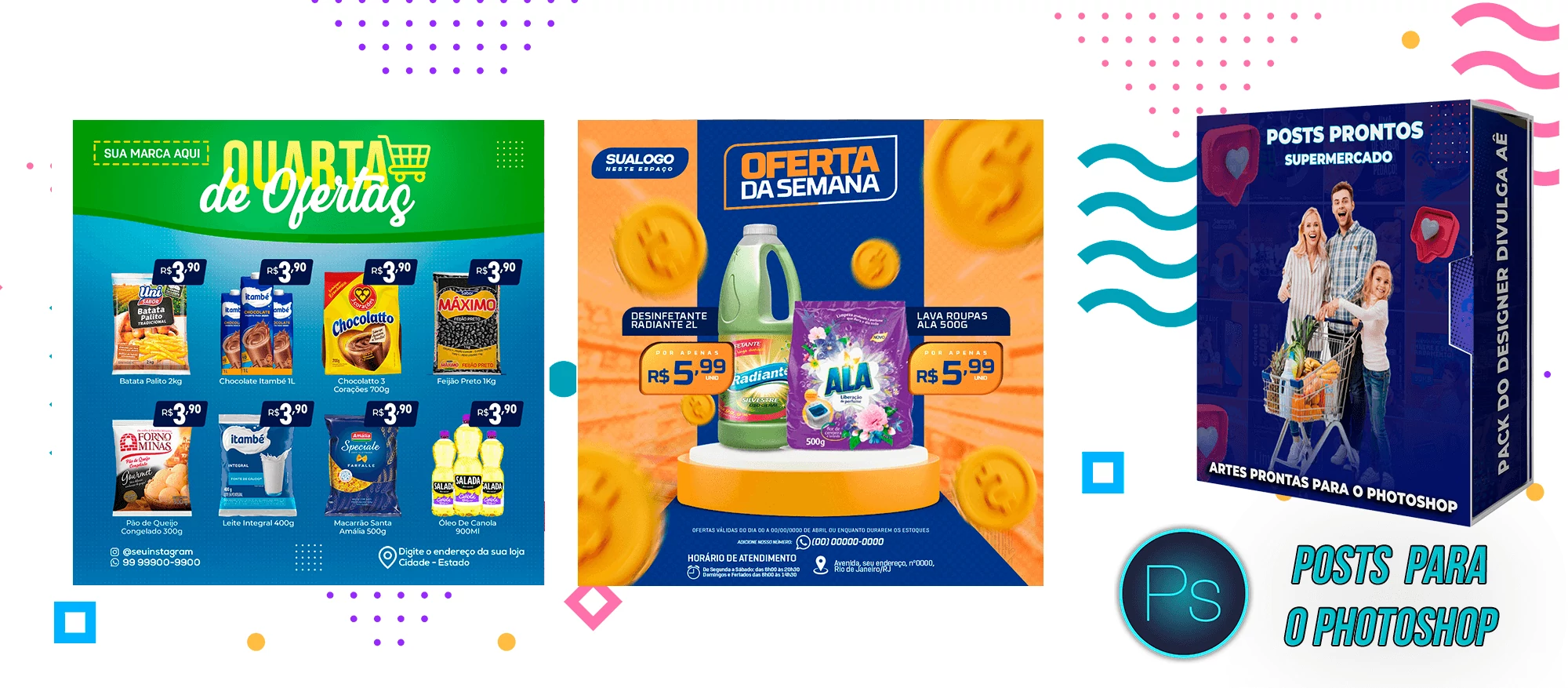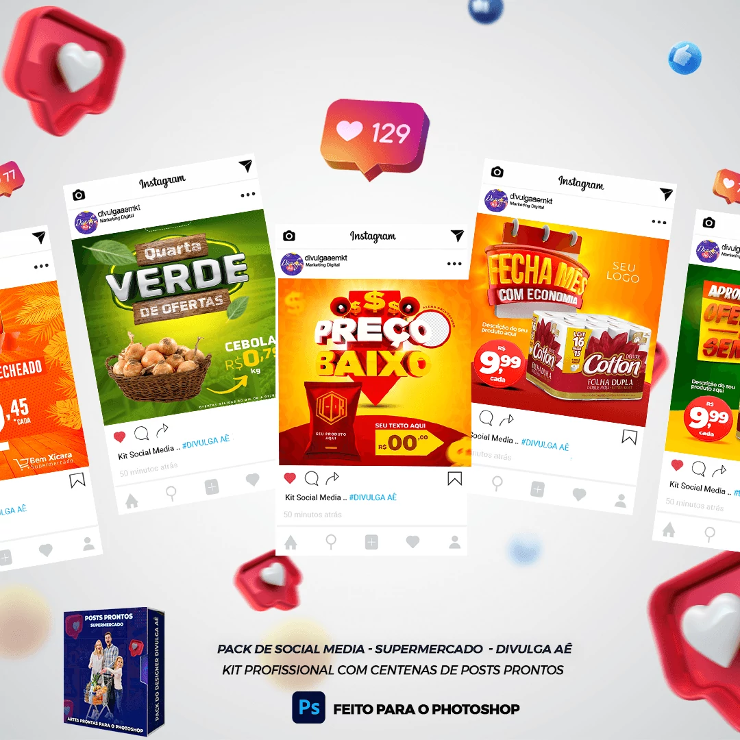 Mega Pack de Social Media – Supermercados no Photoshop