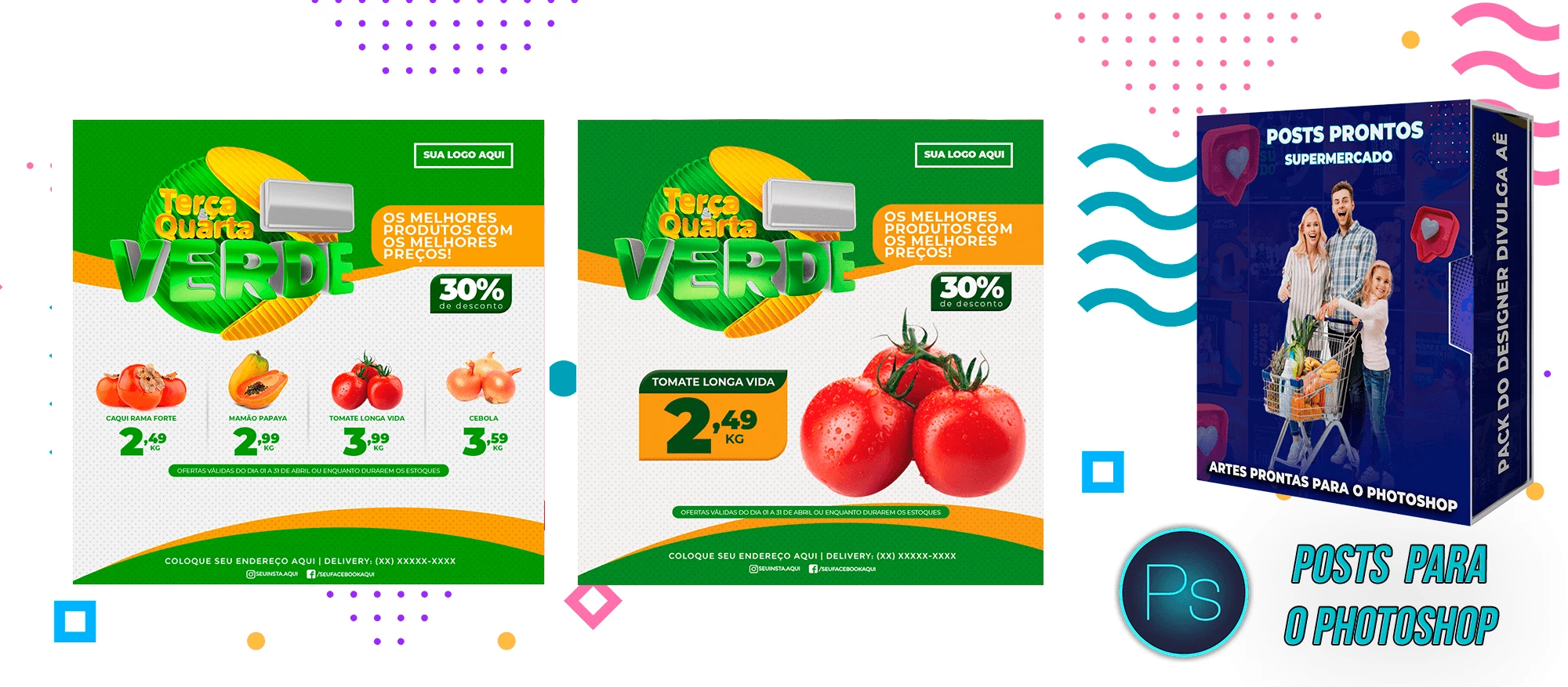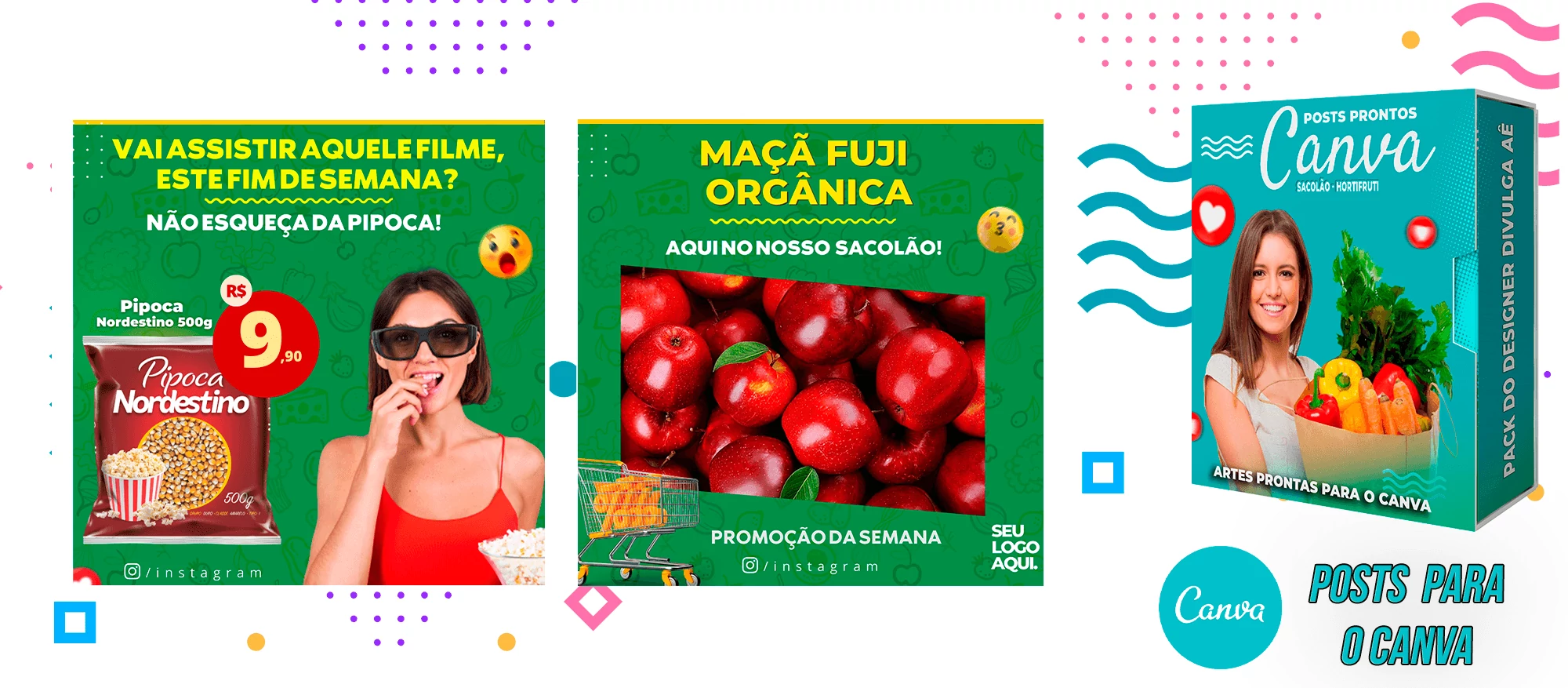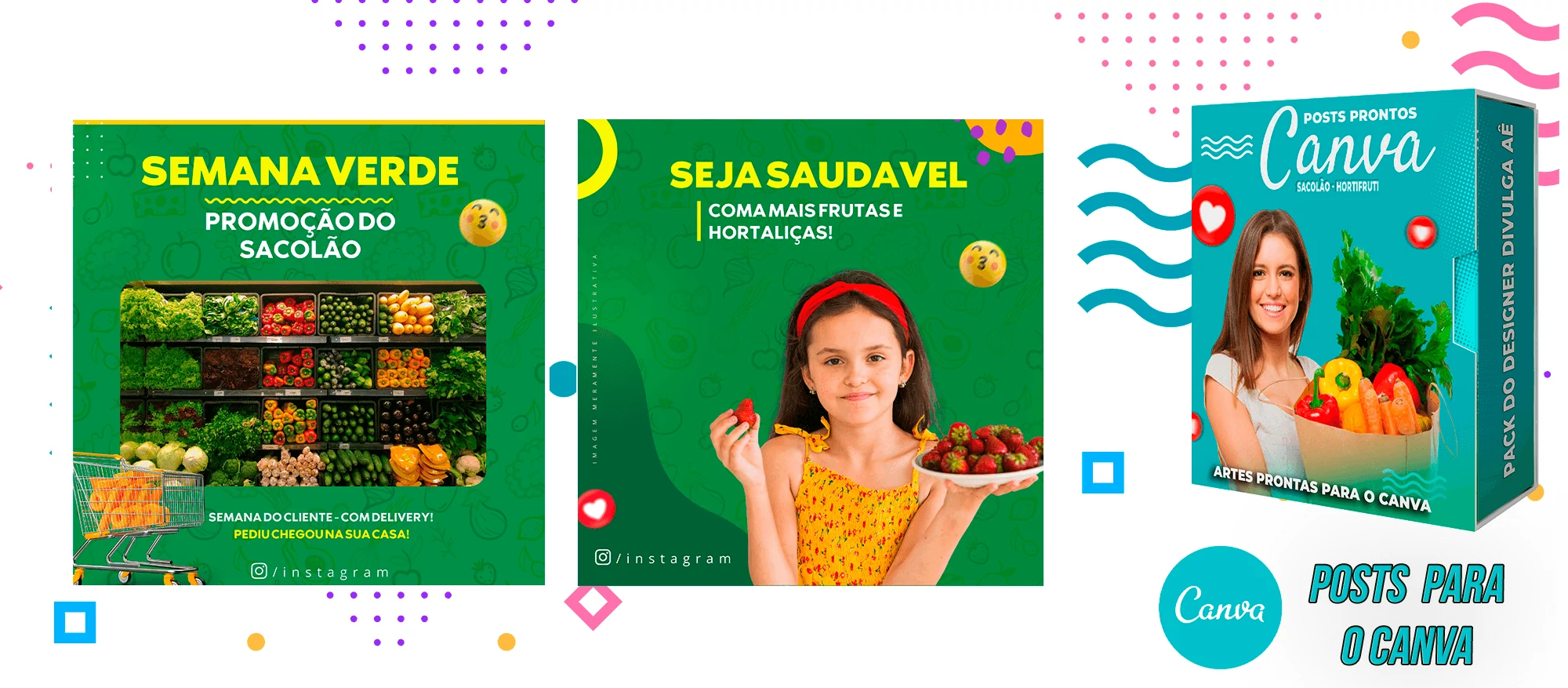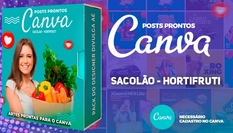 ✅   +70  Posts para o Canva – Supermercado – Sacolão.