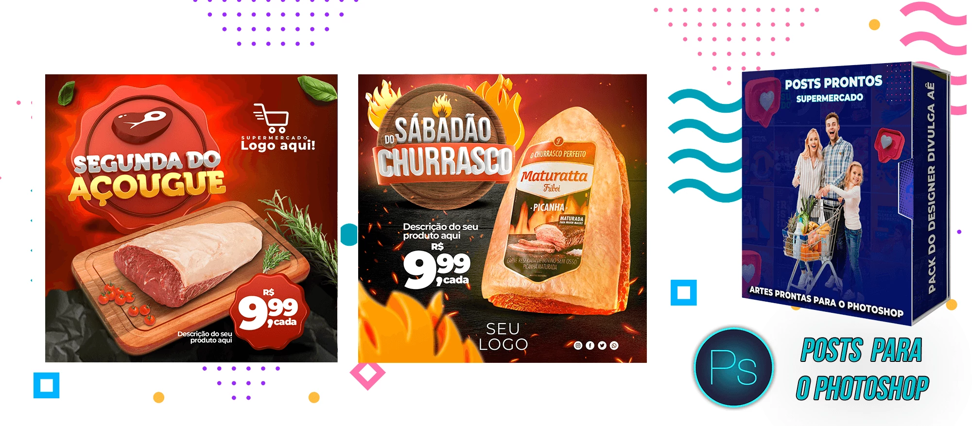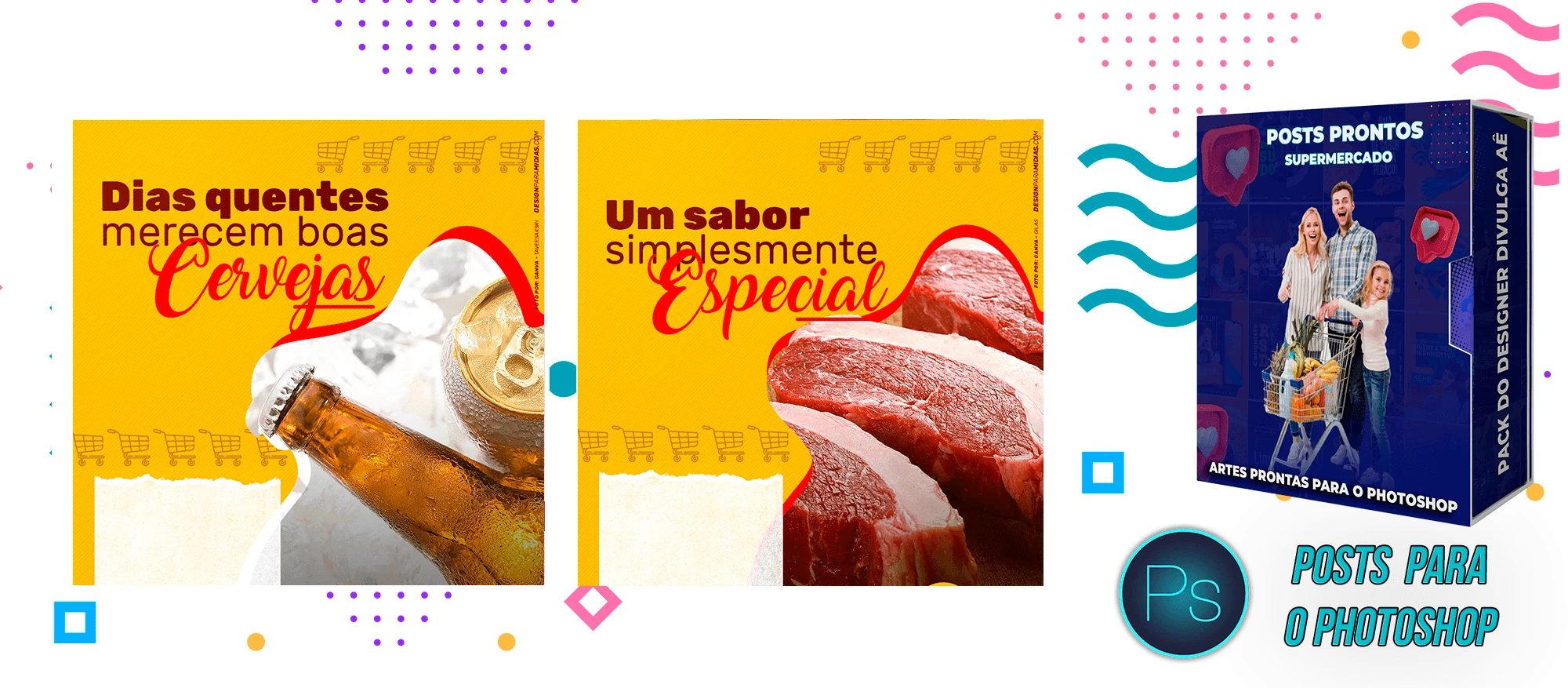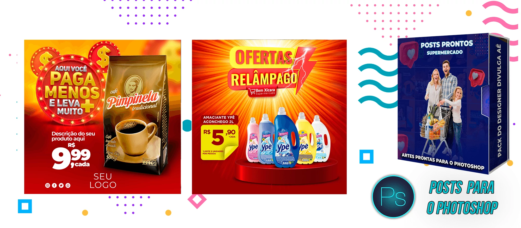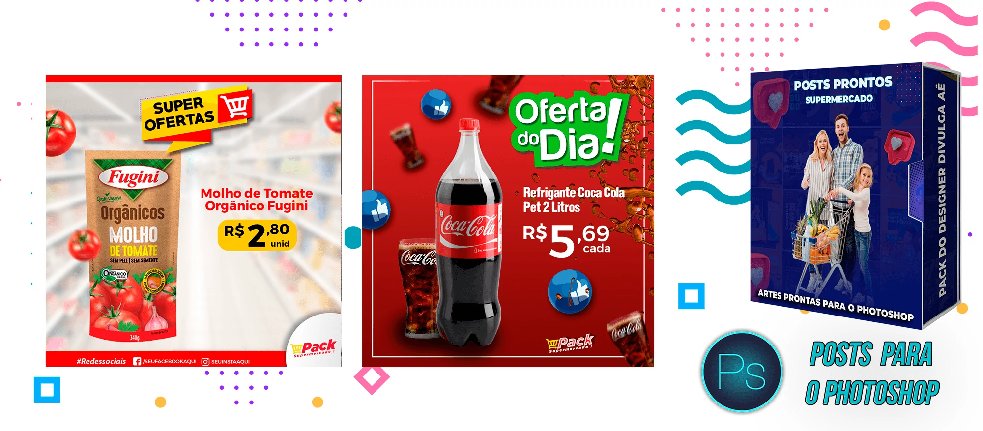 Mega Pack de Social Media - Supermercados no Photoshop