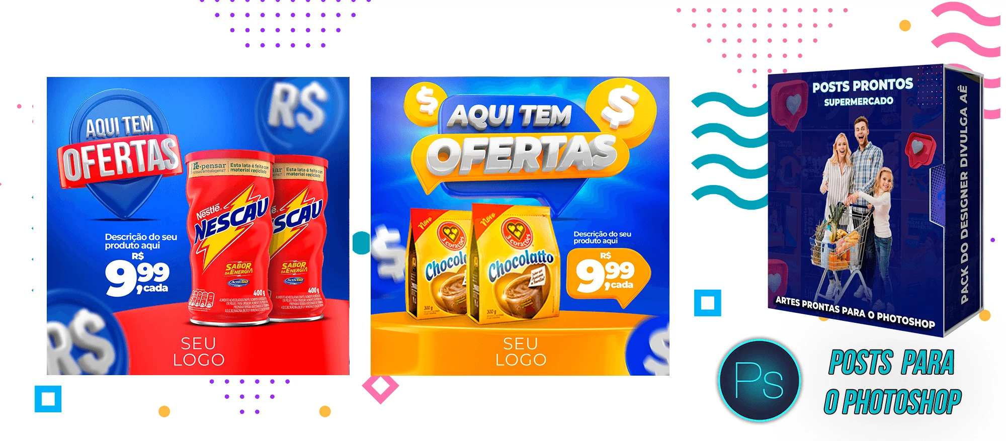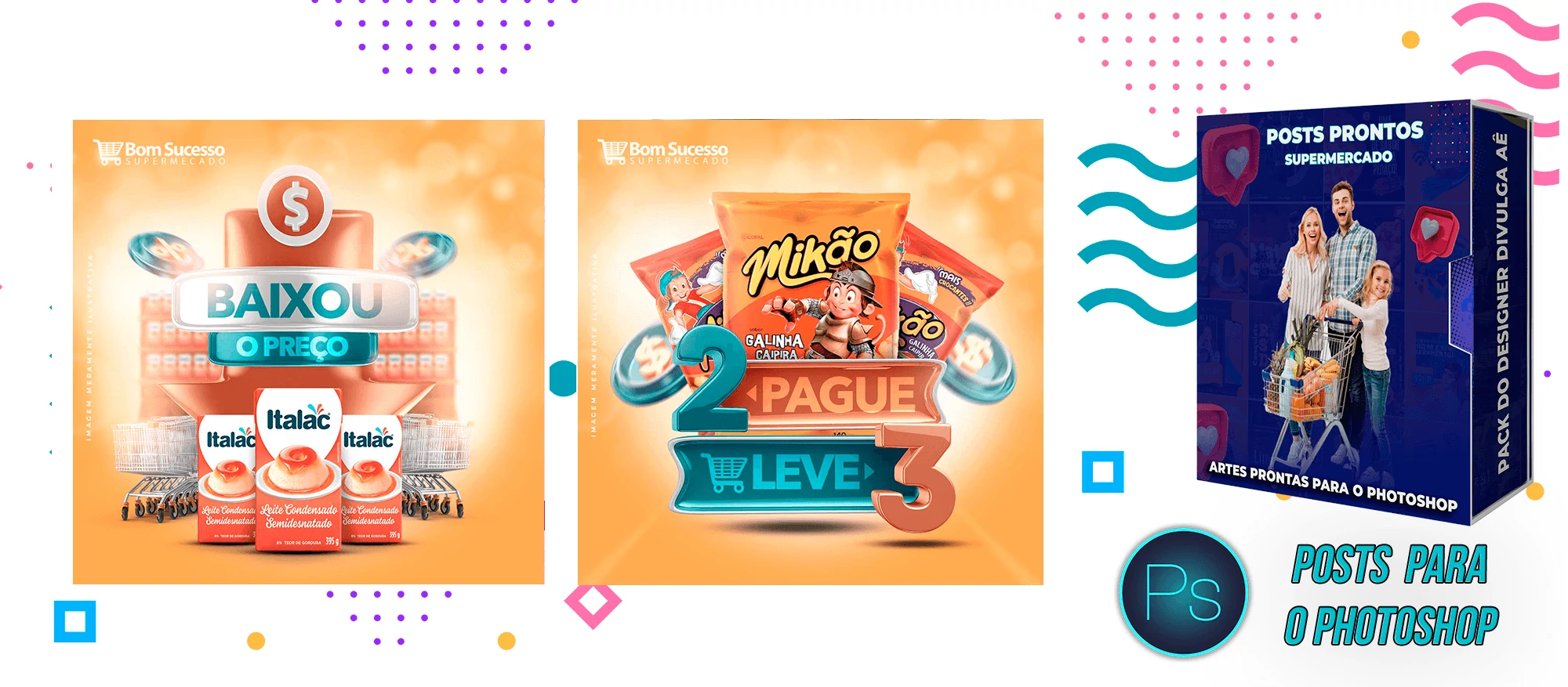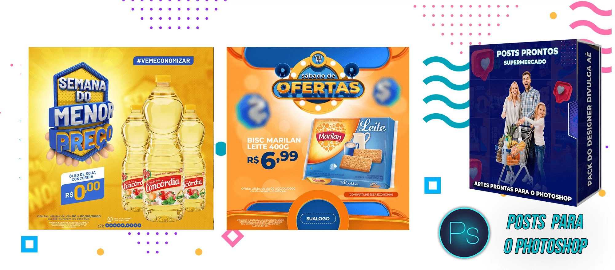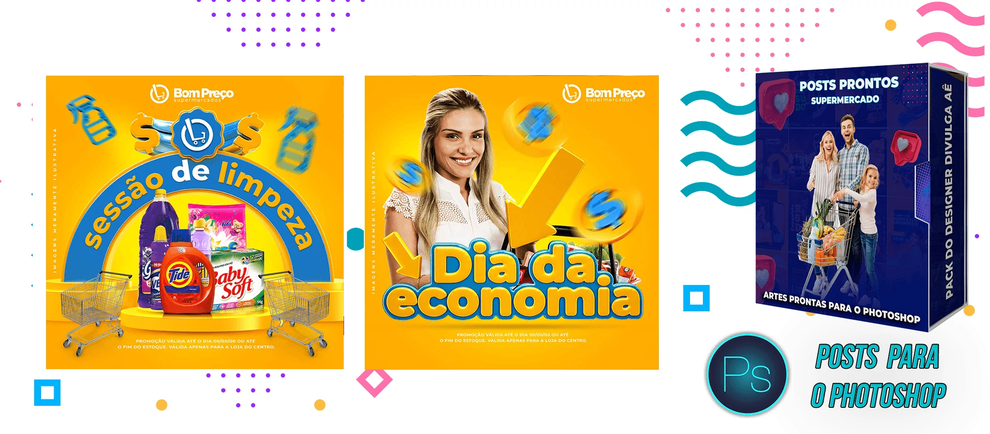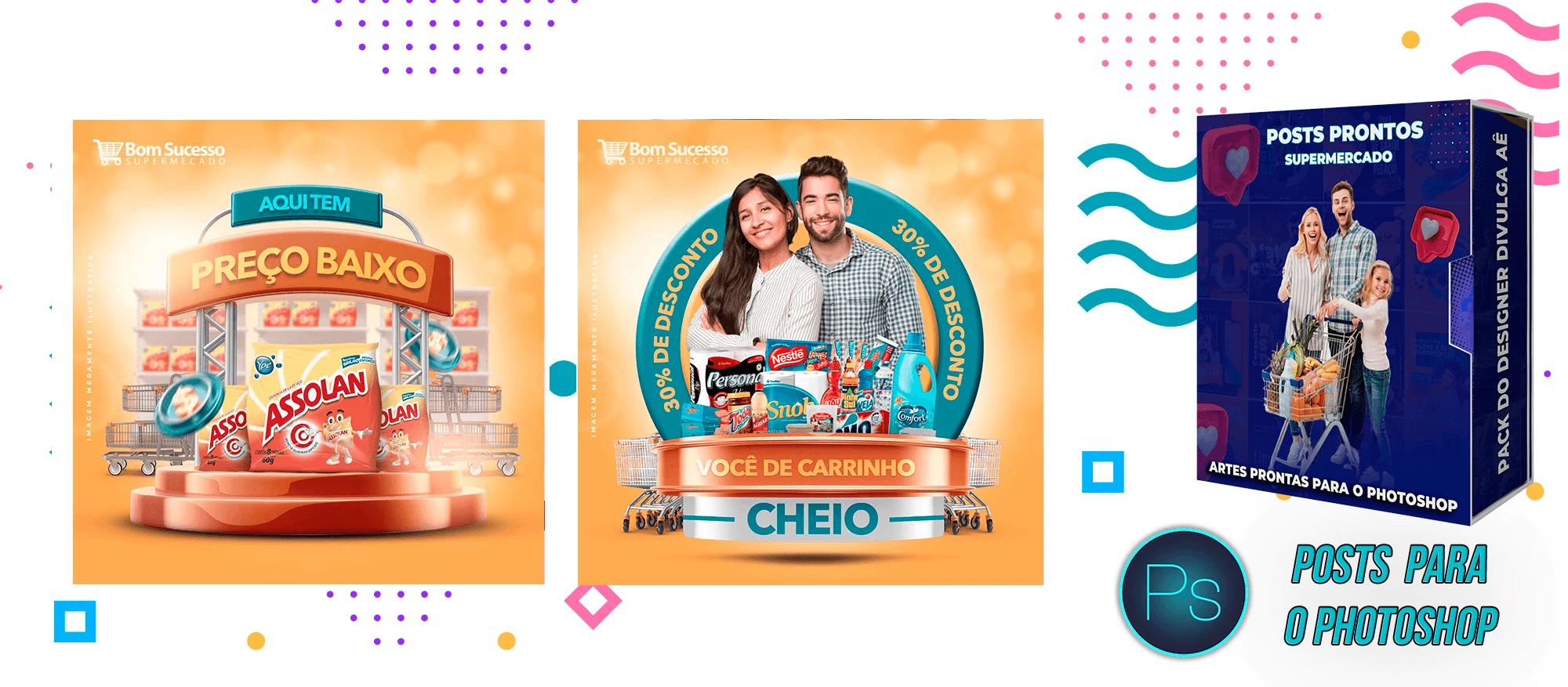 Mega Pack de Social Media - Supermercados no Photoshop