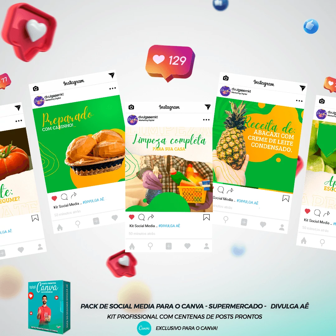 Pack de Posts Prontos para o Canva – Supermercado + Legendas Prontas