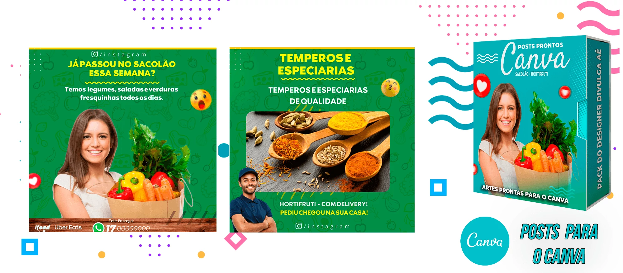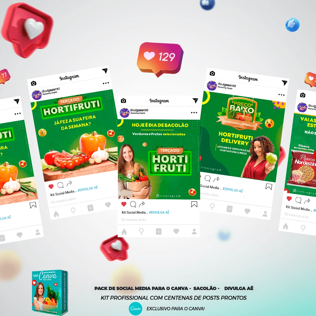 Mega Pack De Posts Prontos para o Canva – Sacolão – Hortifruti – Agricultura Orgânica