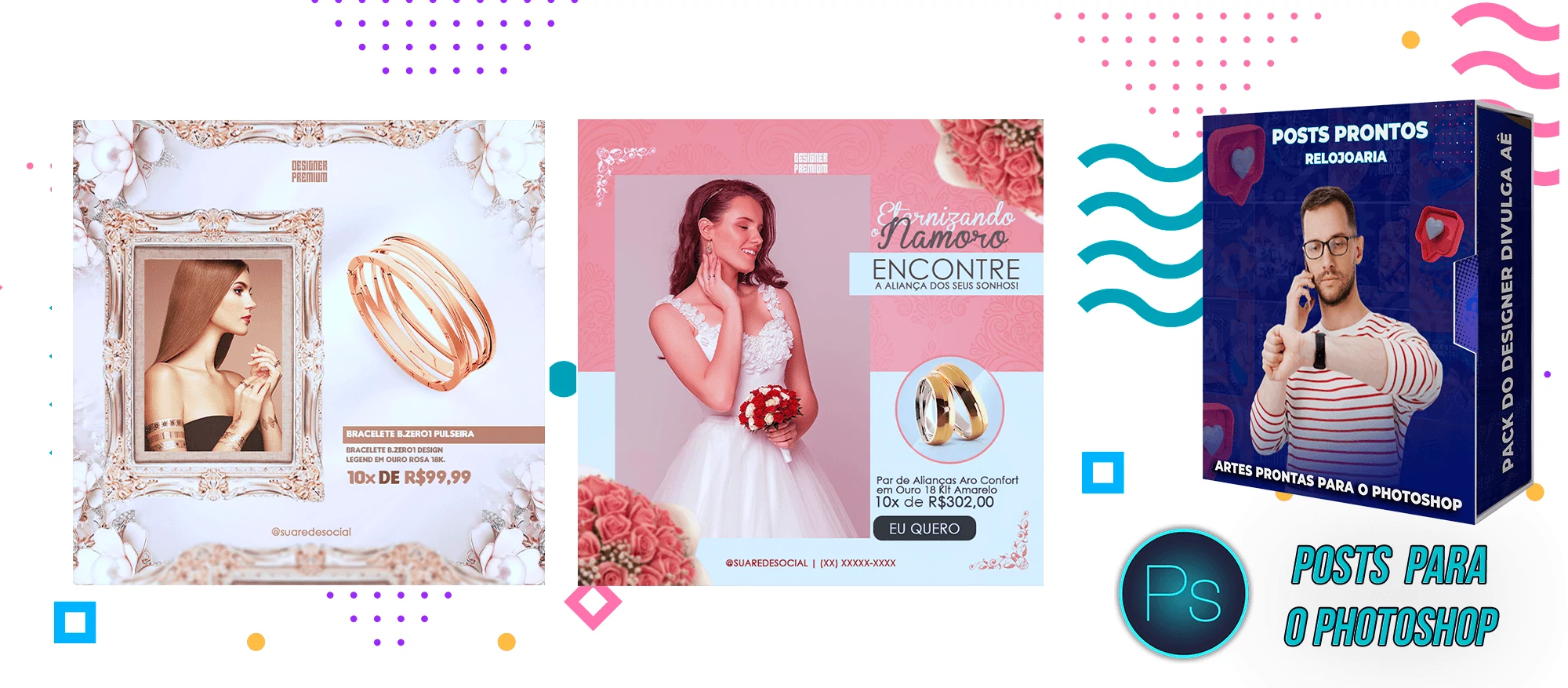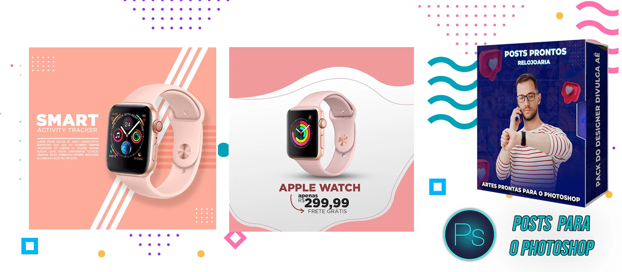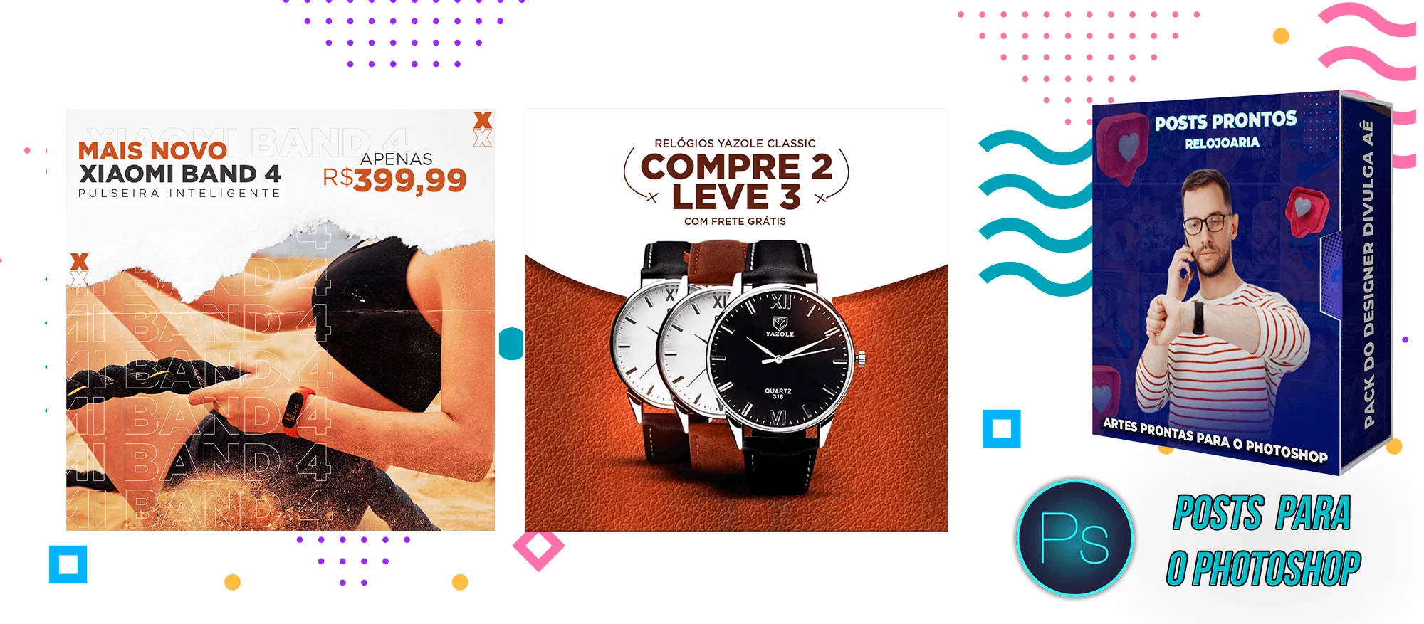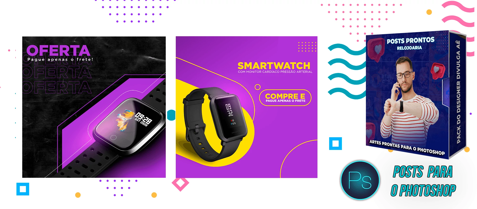 Pack elaborado sob demanda diversas artes para Relojoarias e Acessórios que precisa elaborar posts de forma rápida e prática, bastando apenas possuir o Photoshop editar os arquivos e colocar a marca da empresa, alterar o nome, e adicionar o WhatsApp, tudo em poucos segundos!