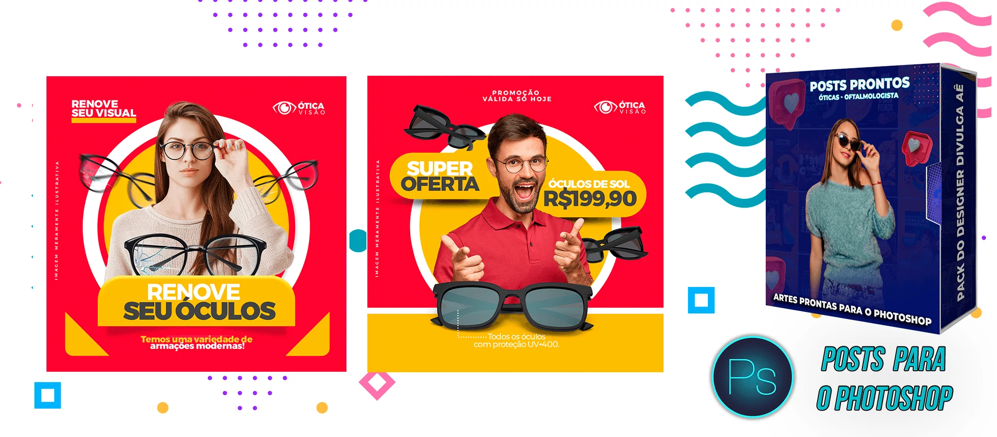 Brinde – Pack de Artes com mais de 100 Posts Prontos para Venda de Óculos e para Ótica