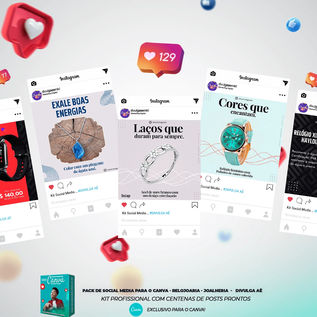 ✅ O pacote possui posts para Vendas de Joias, Bijuterias e Relógios totalmente personalizável.