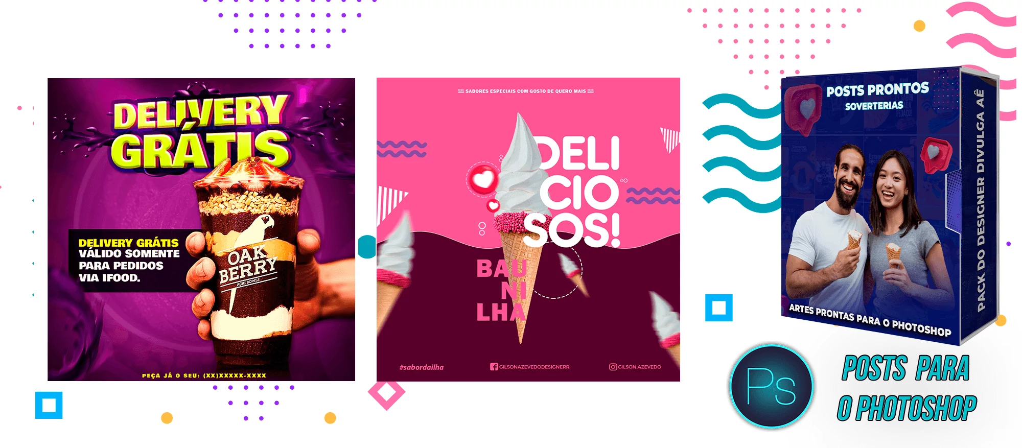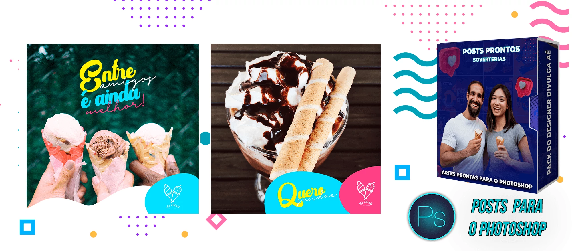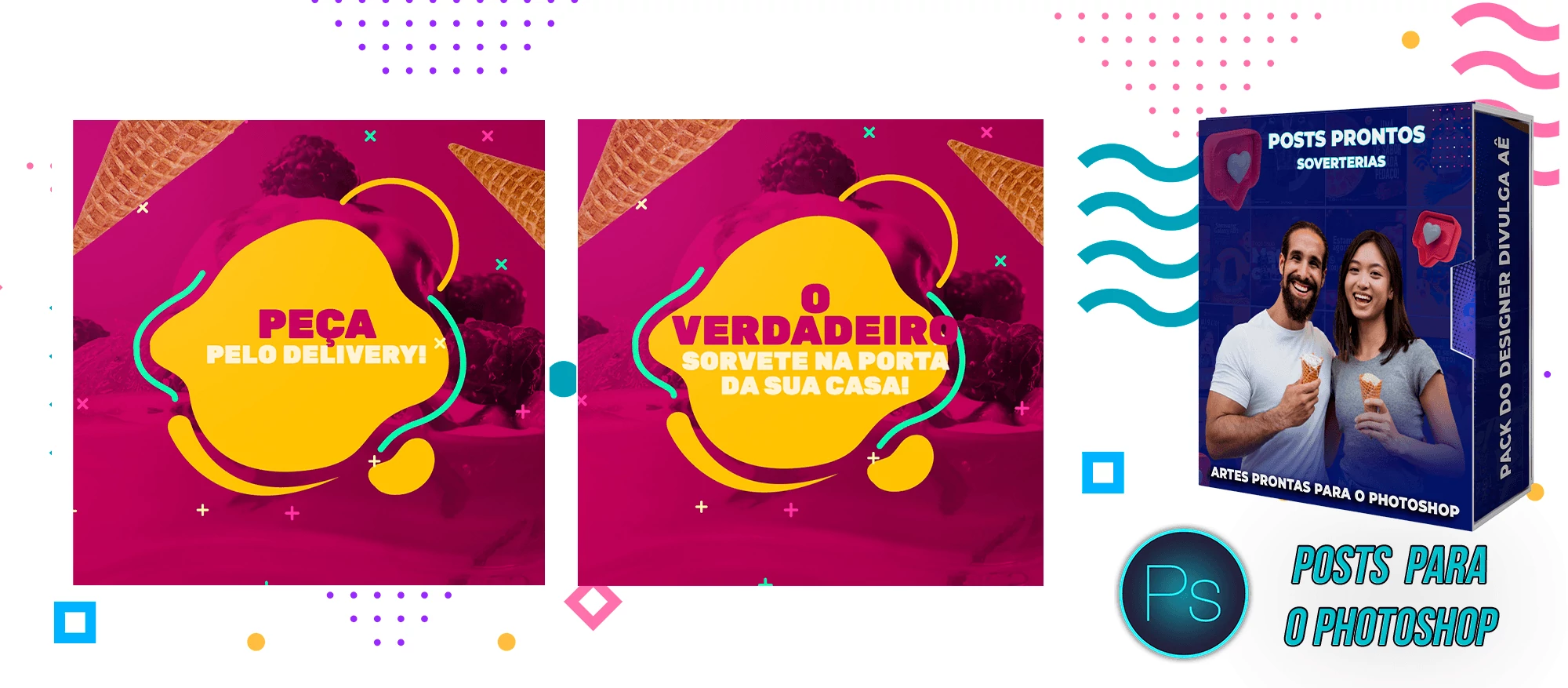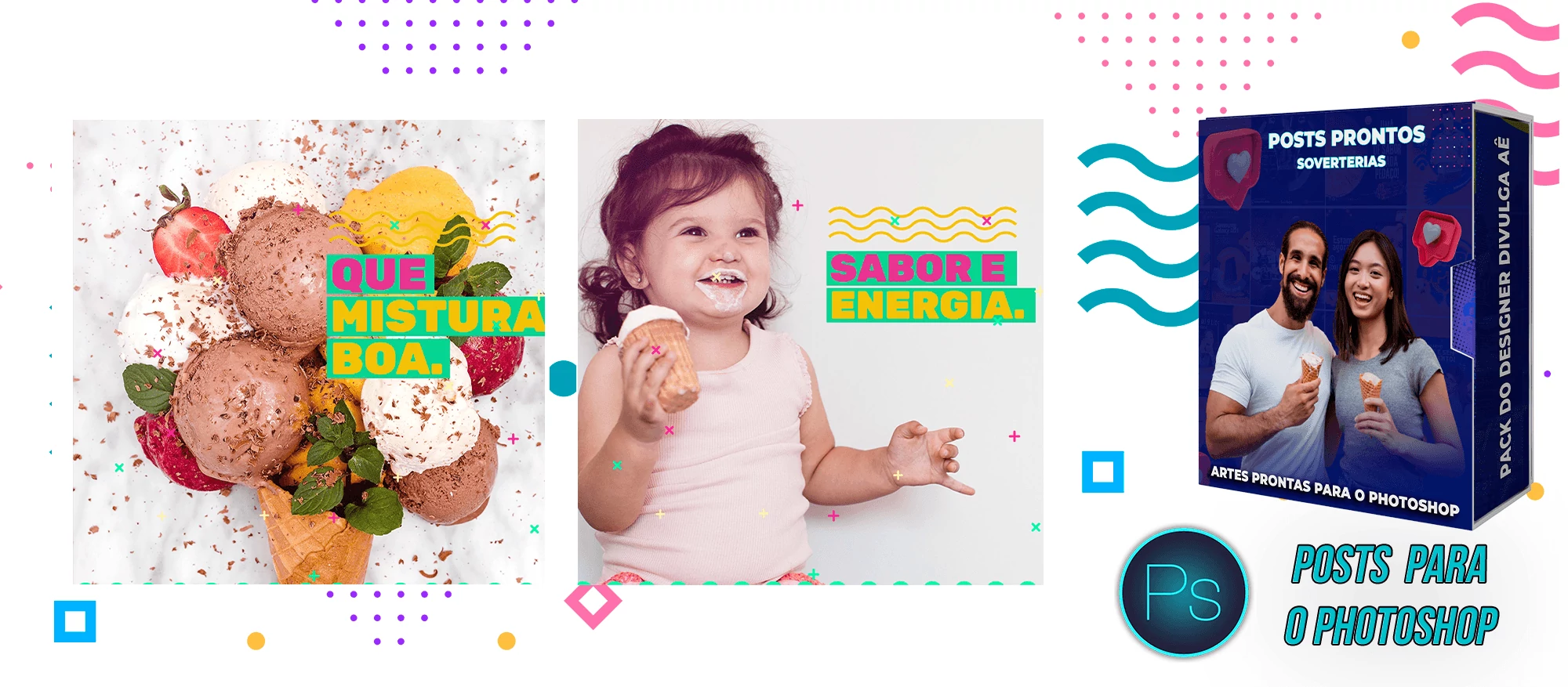 Pack elaborado sob demanda com 200 artes para Sorveterias que precisa elaborar posts de forma rápida e prática, bastando apenas possuir o Photoshop editar os arquivos e colocar a marca da empresa, alterar o nome, e adicionar o WhatsApp, tudo em poucos segundos!