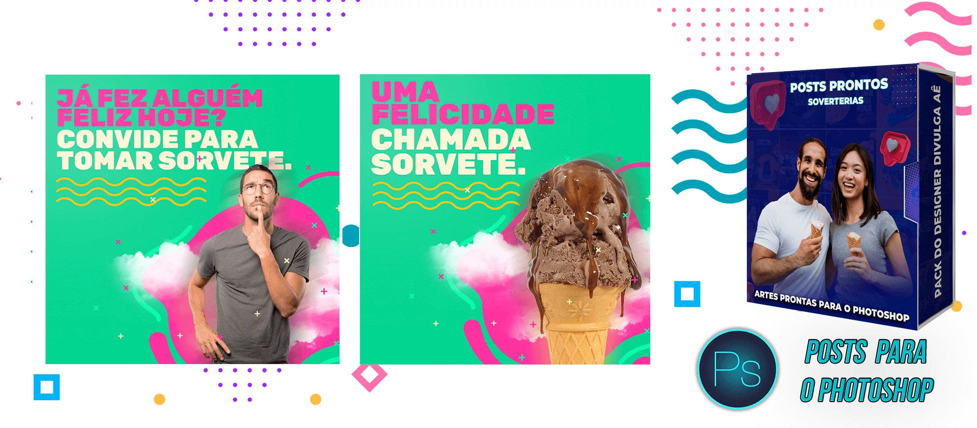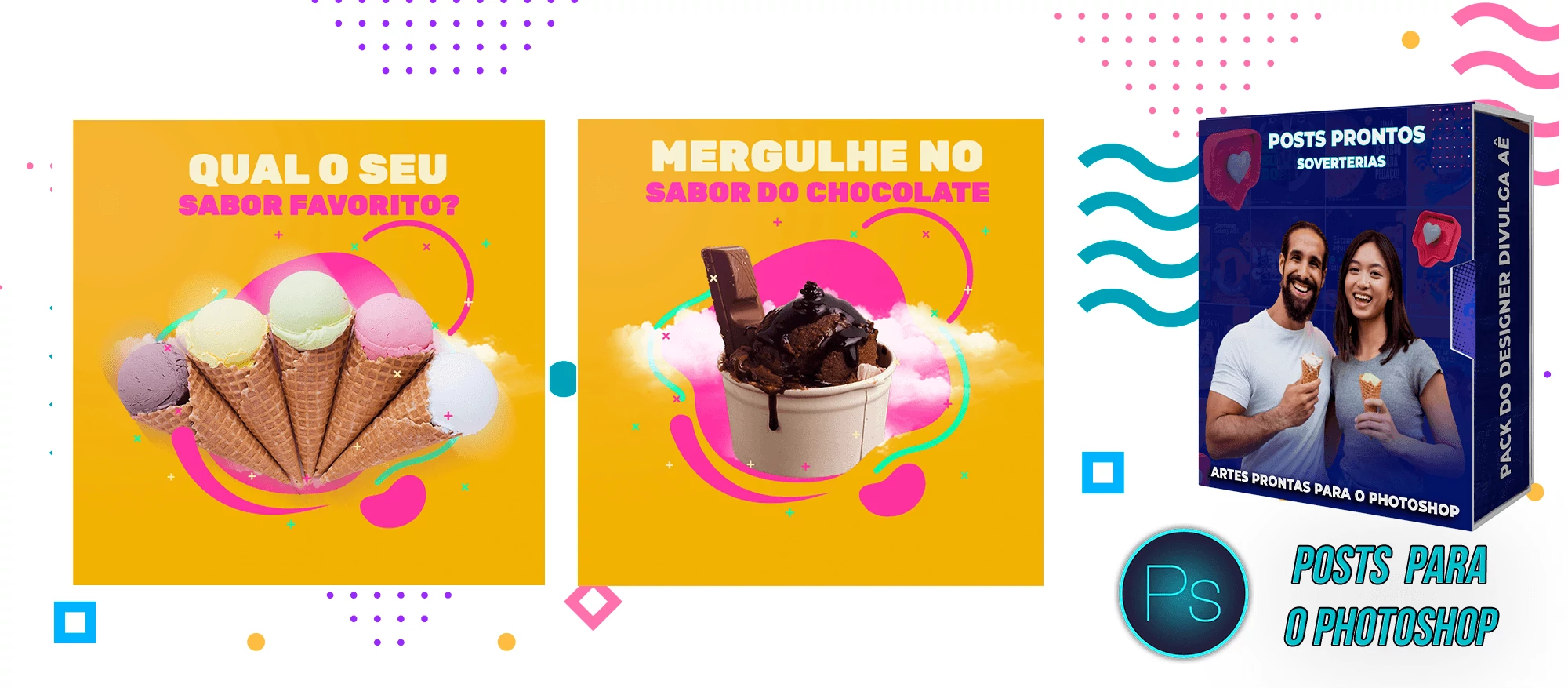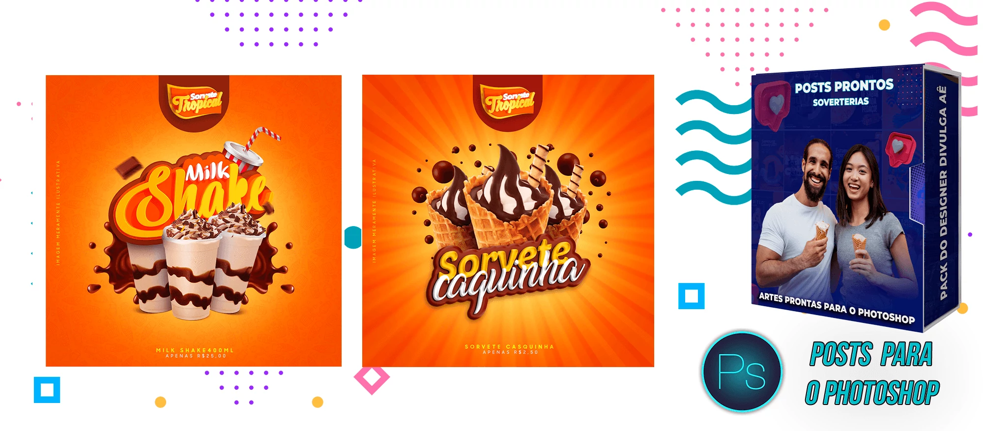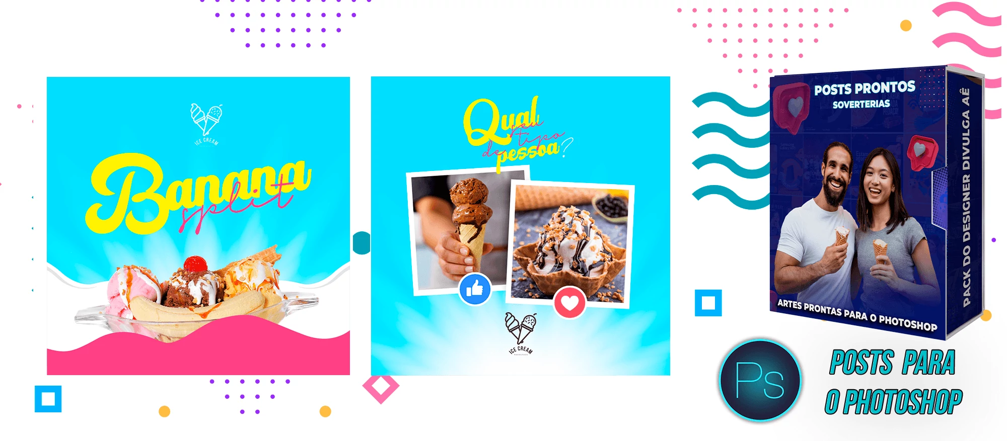 Pack elaborado sob demanda com 200 artes para Sorveterias que precisa elaborar posts de forma rápida e prática, bastando apenas possuir o Photoshop editar os arquivos e colocar a marca da empresa, alterar o nome, e adicionar o WhatsApp, tudo em poucos segundos!