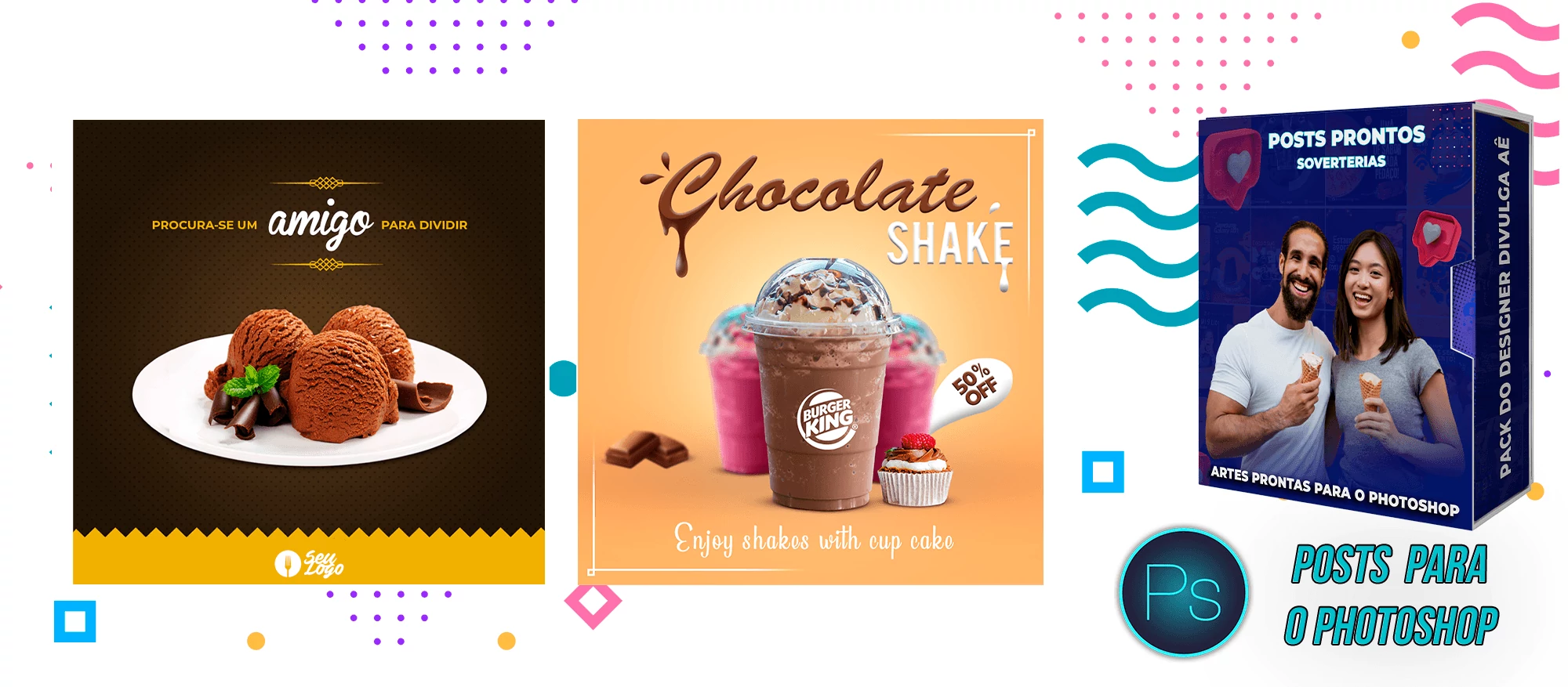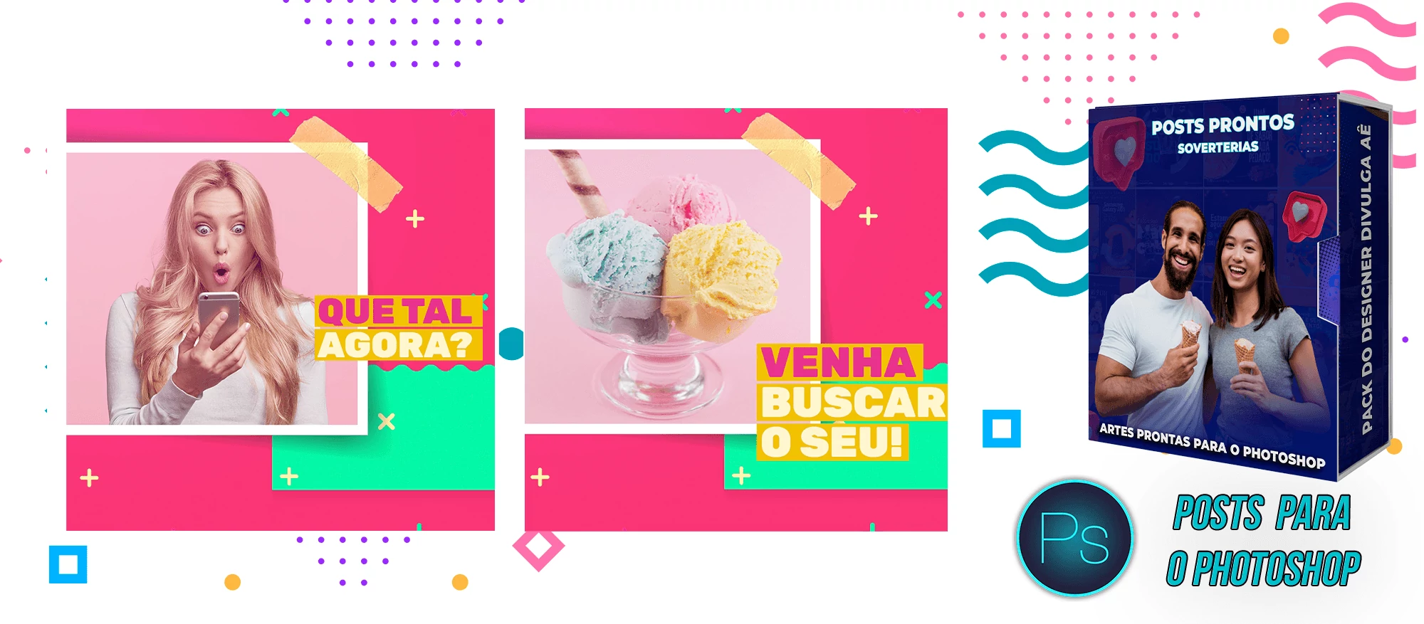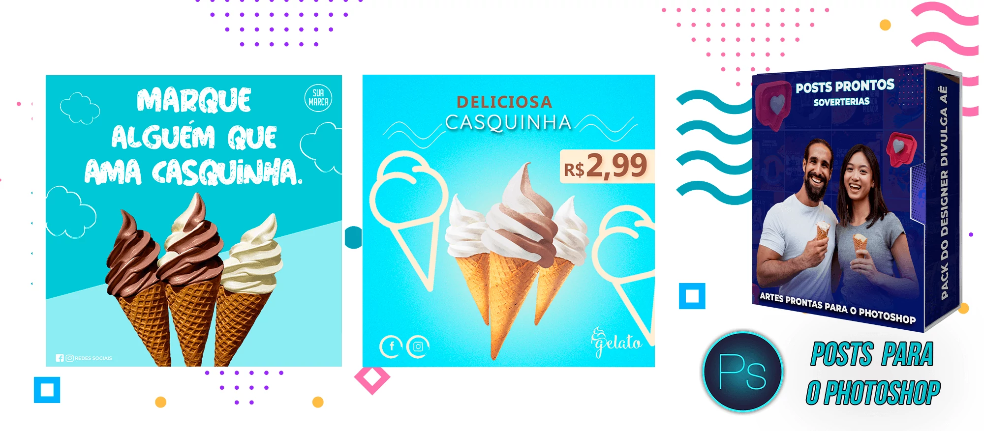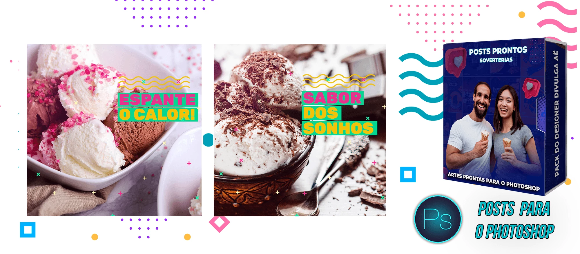 Pack elaborado sob demanda com 200 artes para Sorveterias que precisa elaborar posts de forma rápida e prática, bastando apenas possuir o Photoshop editar os arquivos e colocar a marca da empresa, alterar o nome, e adicionar o WhatsApp, tudo em poucos segundos!