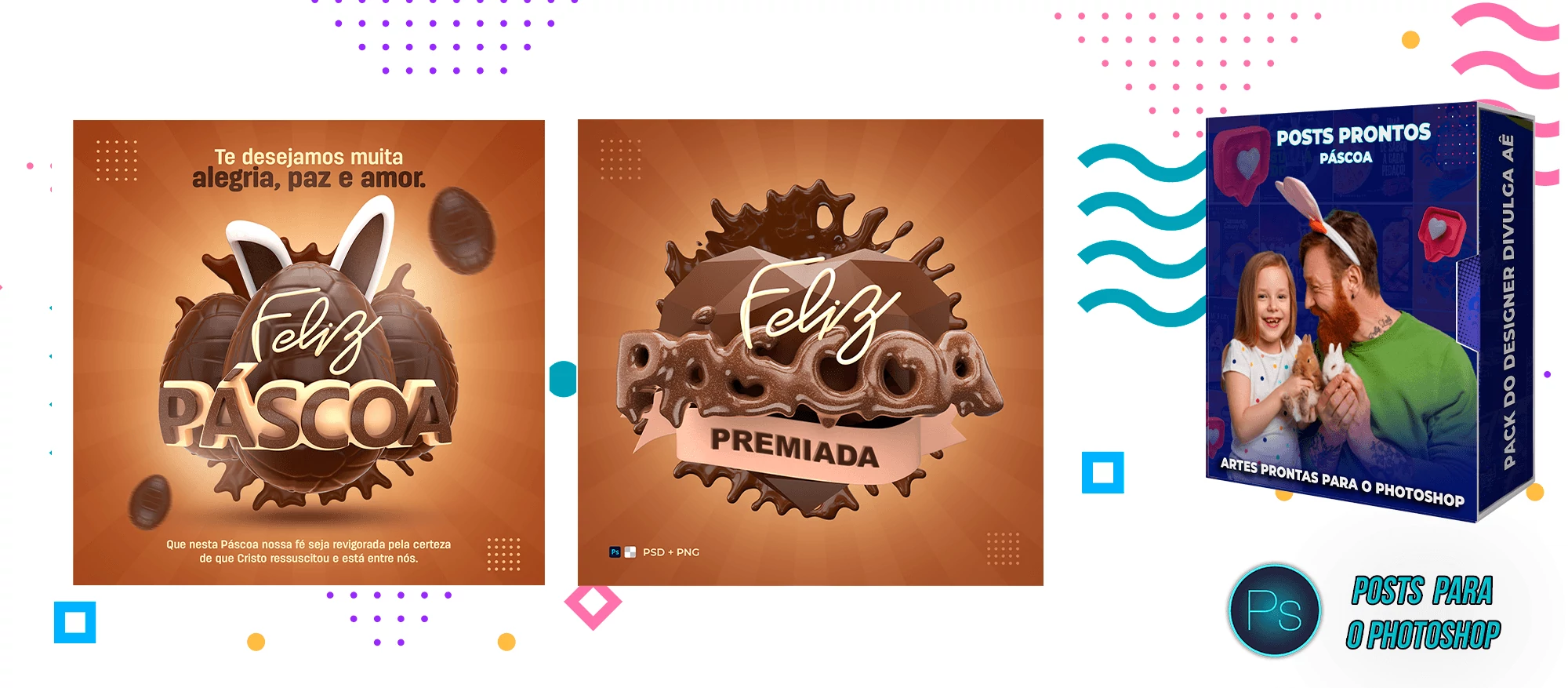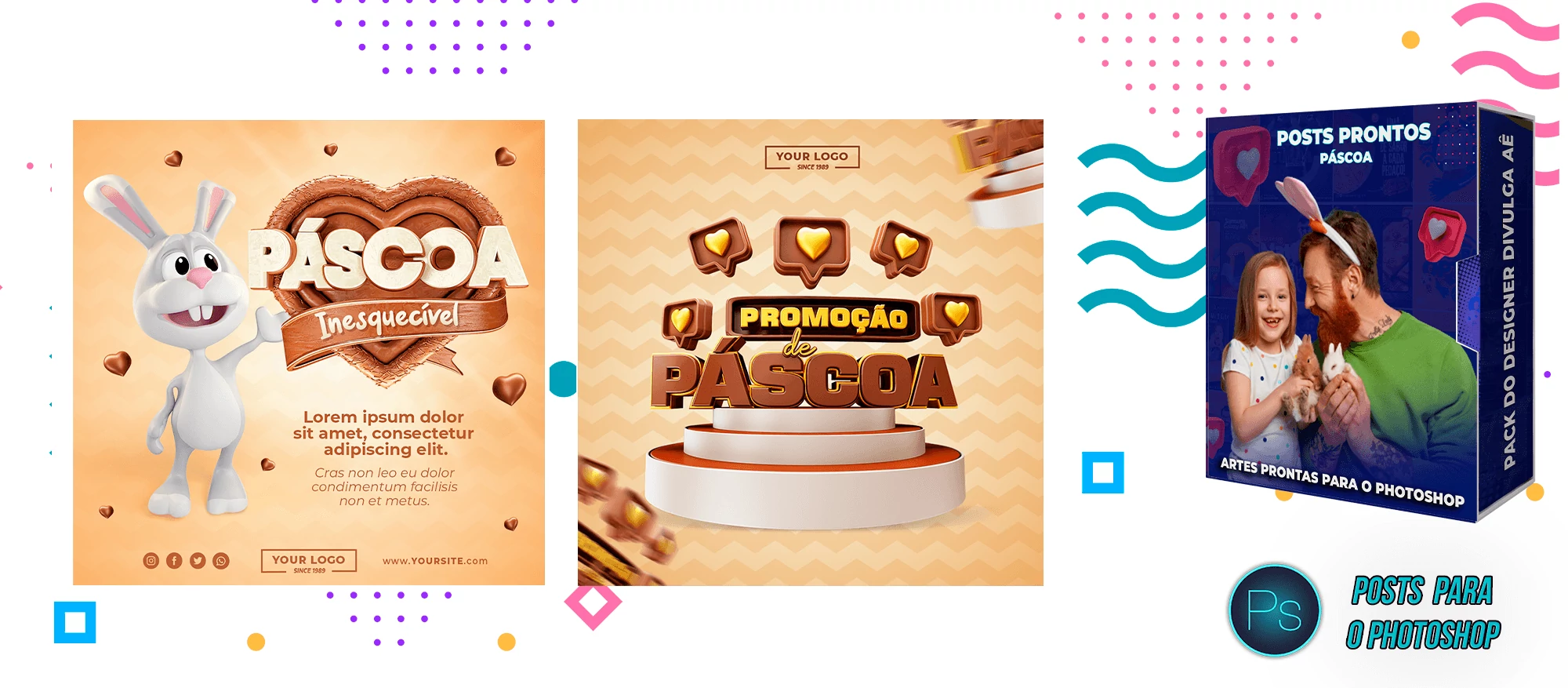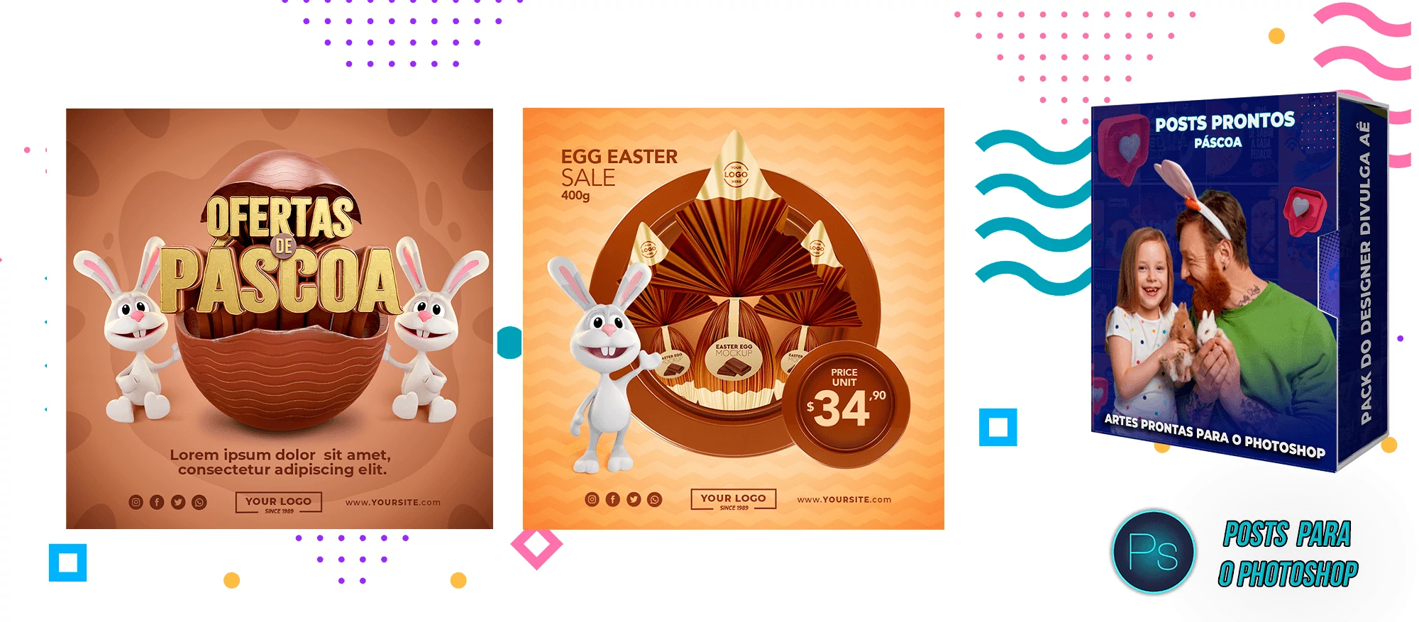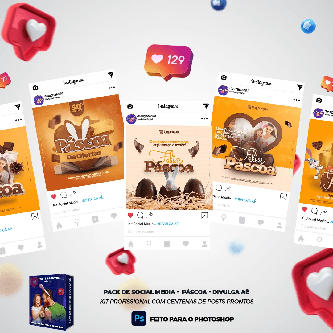✅ Pack com 150 Posts sobre a Páscoa para Editar no Photoshop e Photopea