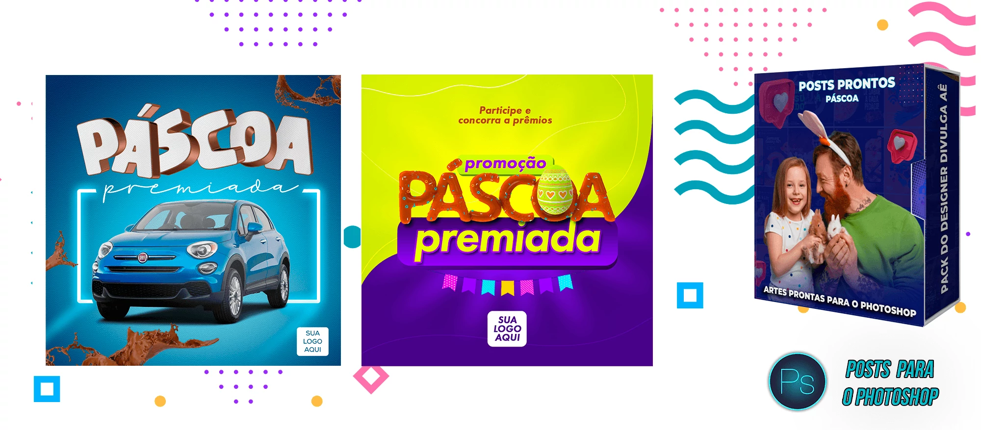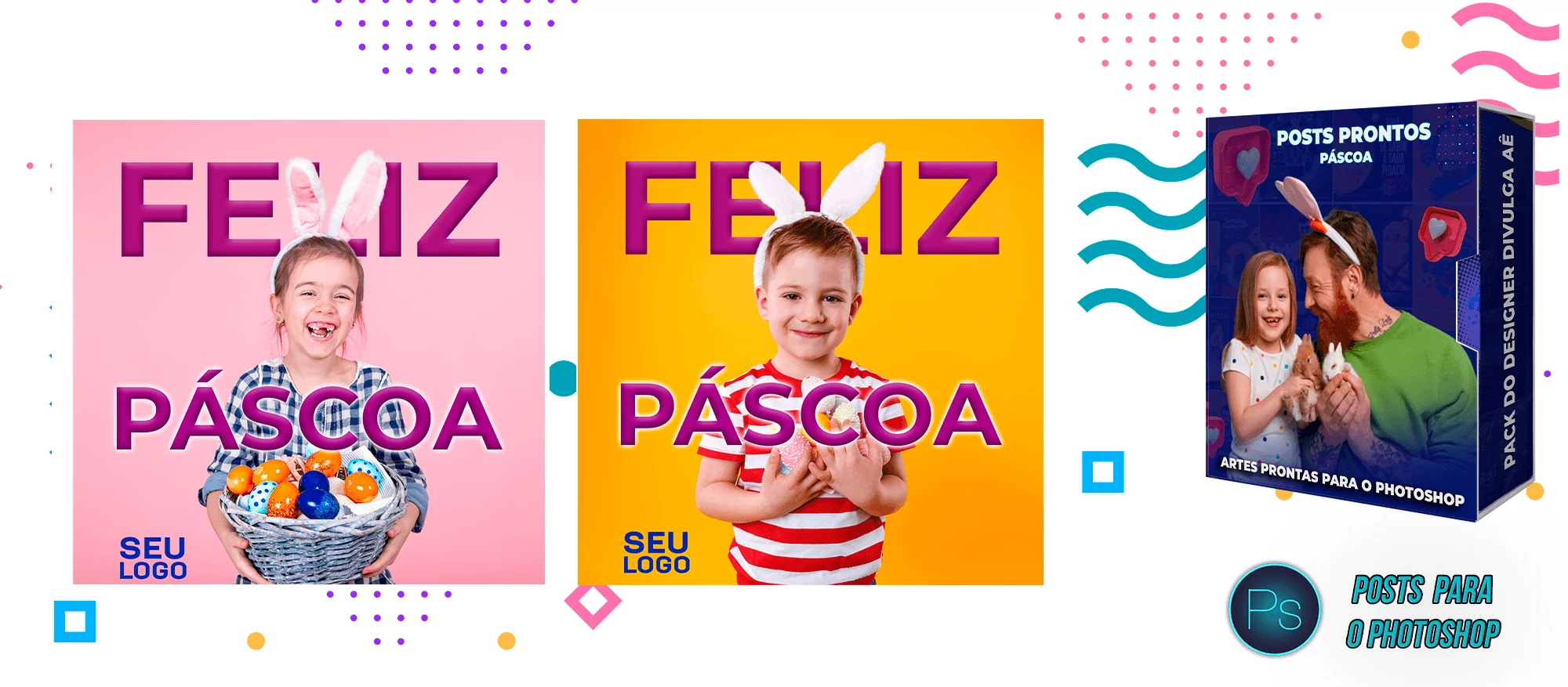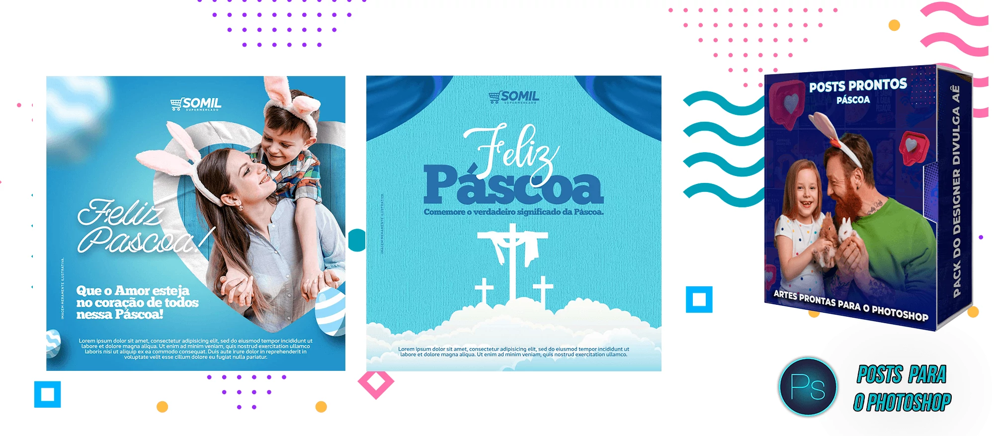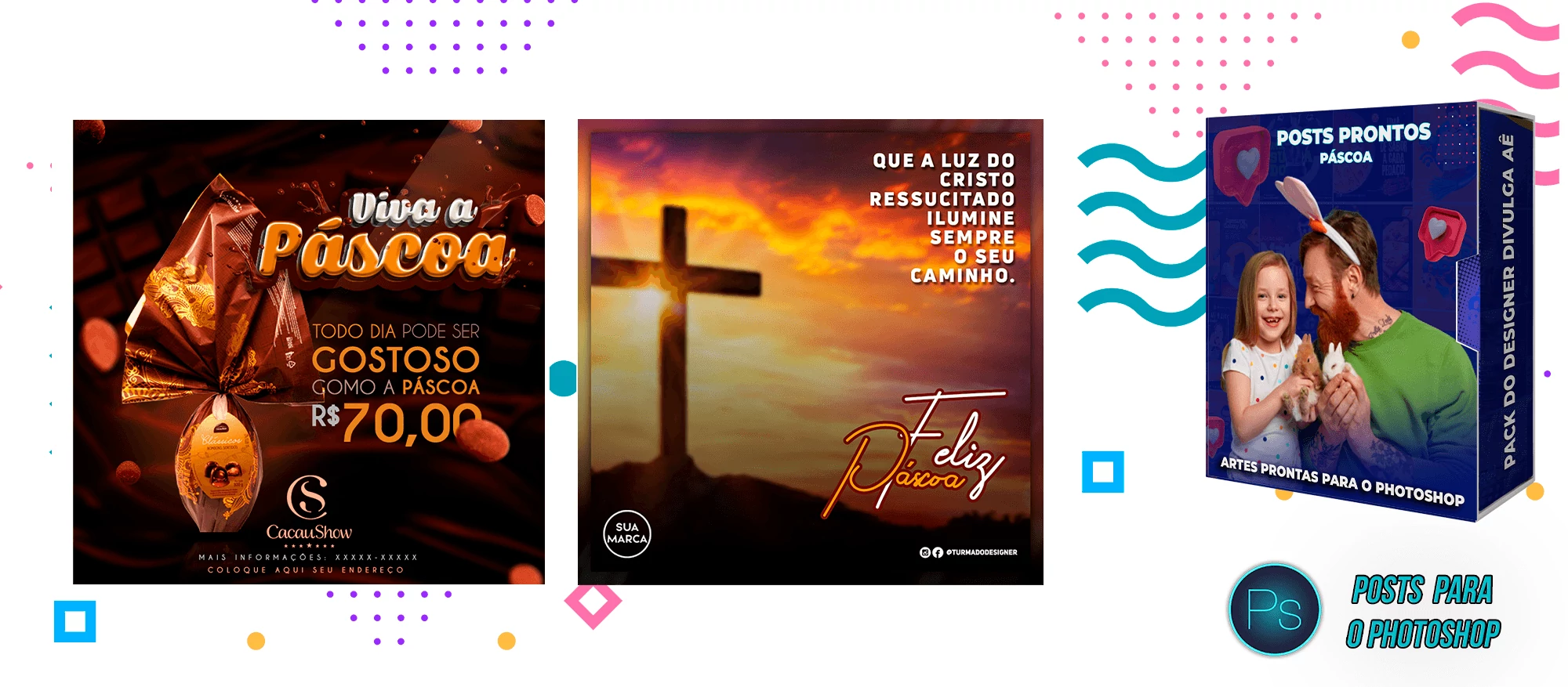 ✅ Pack com 150 Posts sobre a Páscoa para Editar no Photoshop e Photopea
