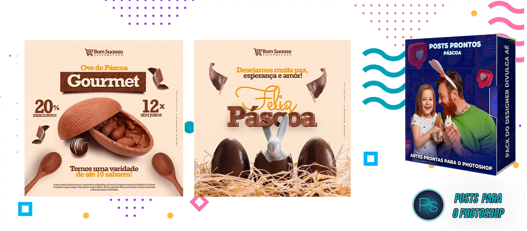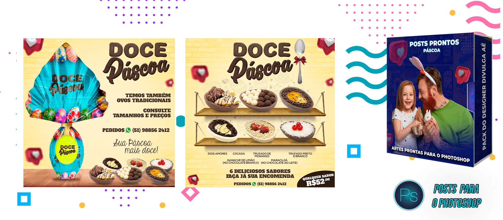 Pack de Posts Prontos para Confetaria e Pascoa – Photoshop