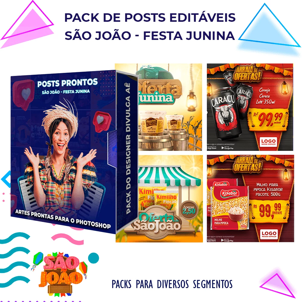 Pack Posts Prontos São João – Festa Junina – Photoshop e Canva